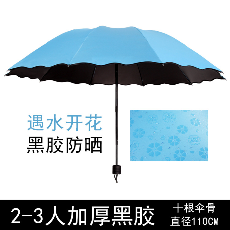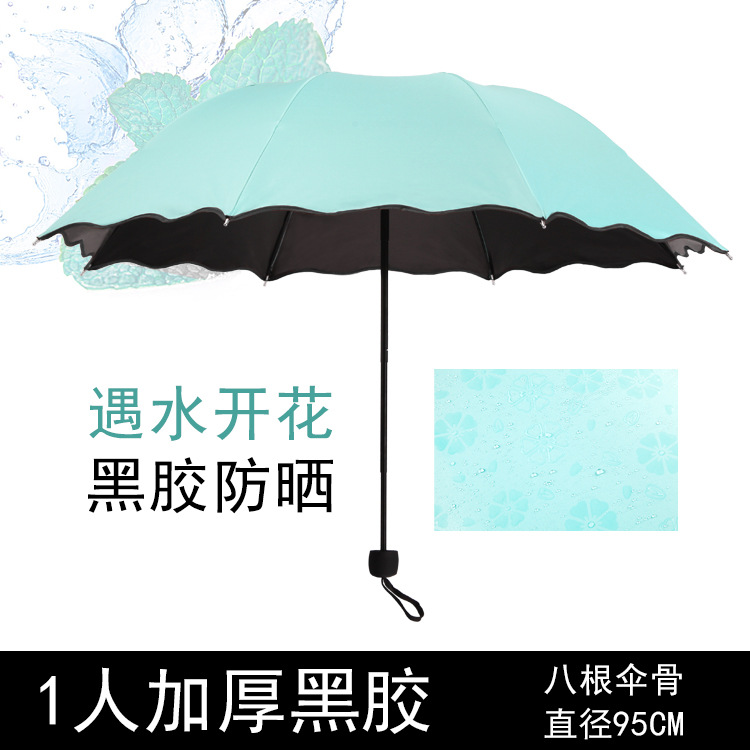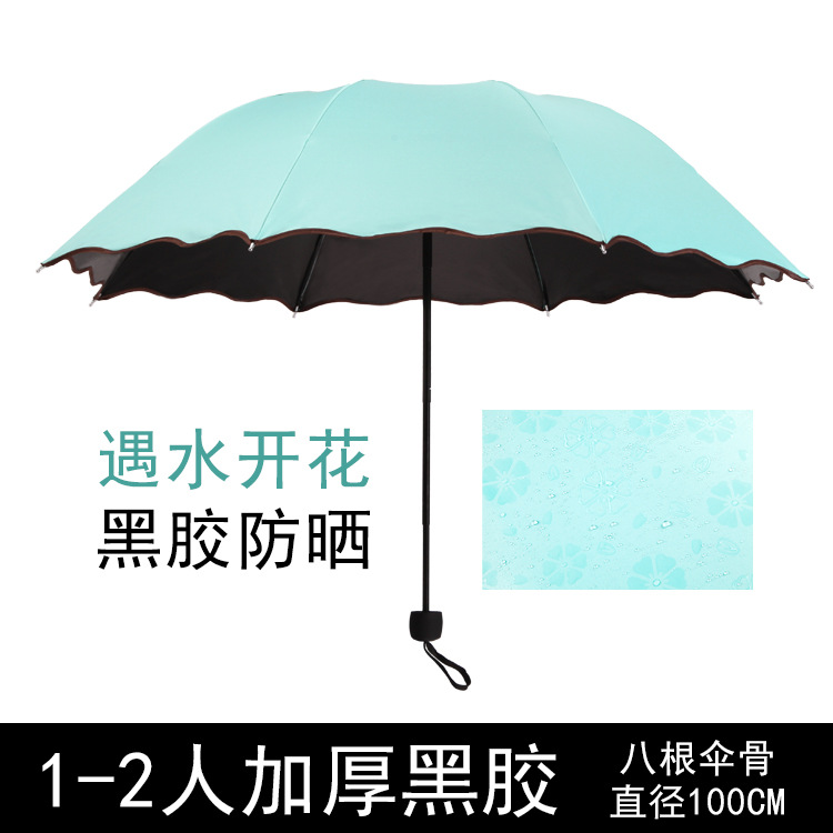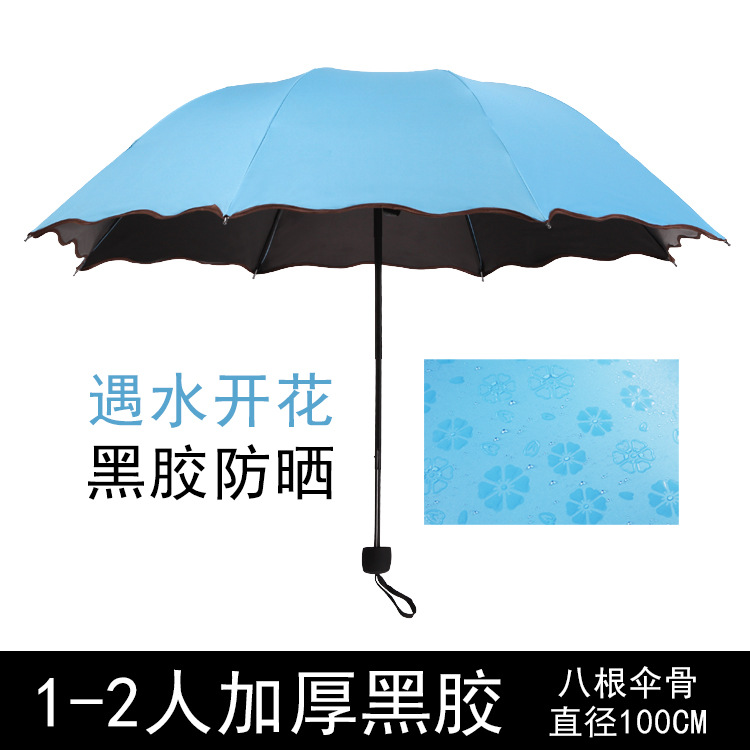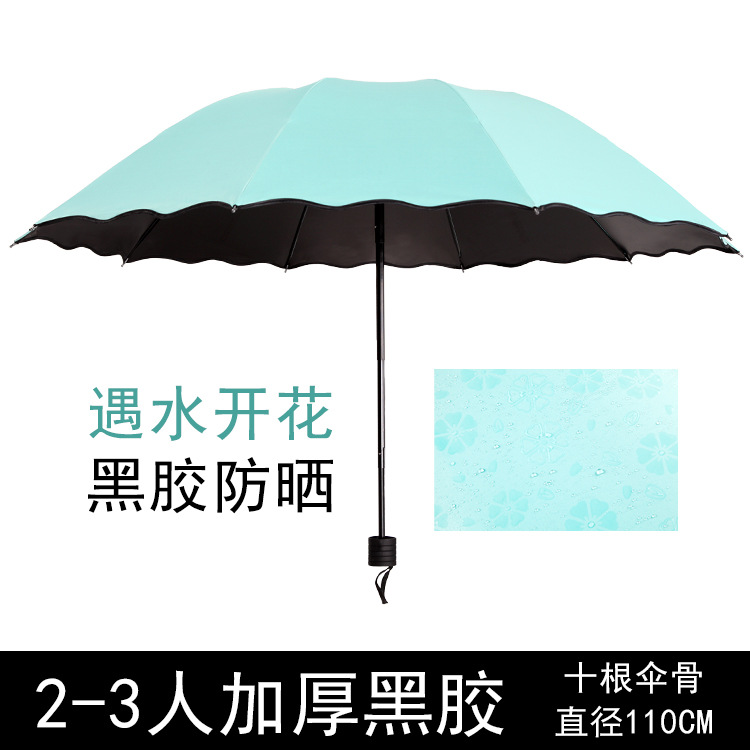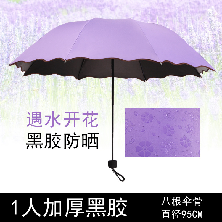 물 꽃 우산 블랙 접착제 맑은 우산 자외선 차단제 차양 태양 우산 접는 도매 광고 우산 로고 인쇄스토어 가기