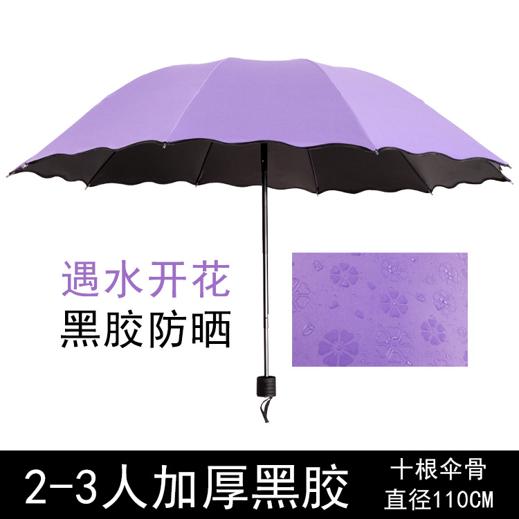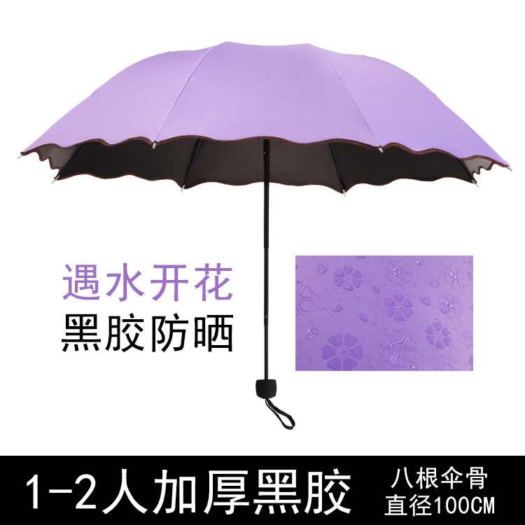 물 꽃 우산 블랙 접착제 맑은 우산 자외선 차단제 차양 태양 우산 접는 도매 광고 우산 로고 인쇄