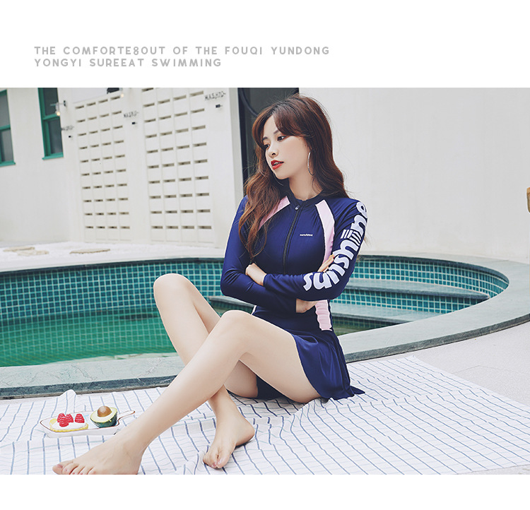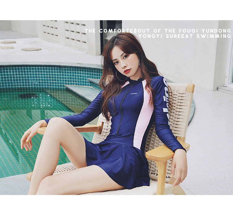 2023 새로운 스포츠 수영복 여성 원피스 스커트 수영복 학생 보수적 인 패션 슬리밍 해변 온천 플러스 사이즈 수영복