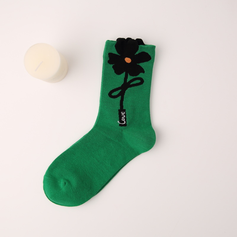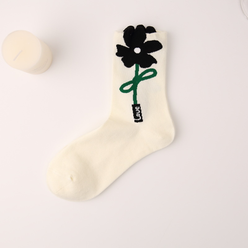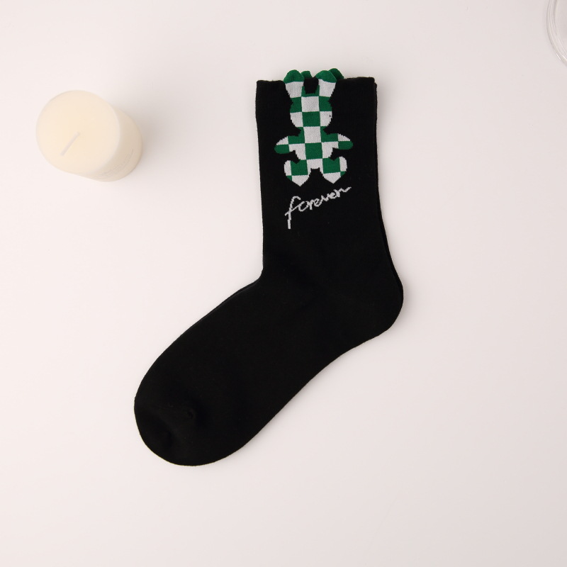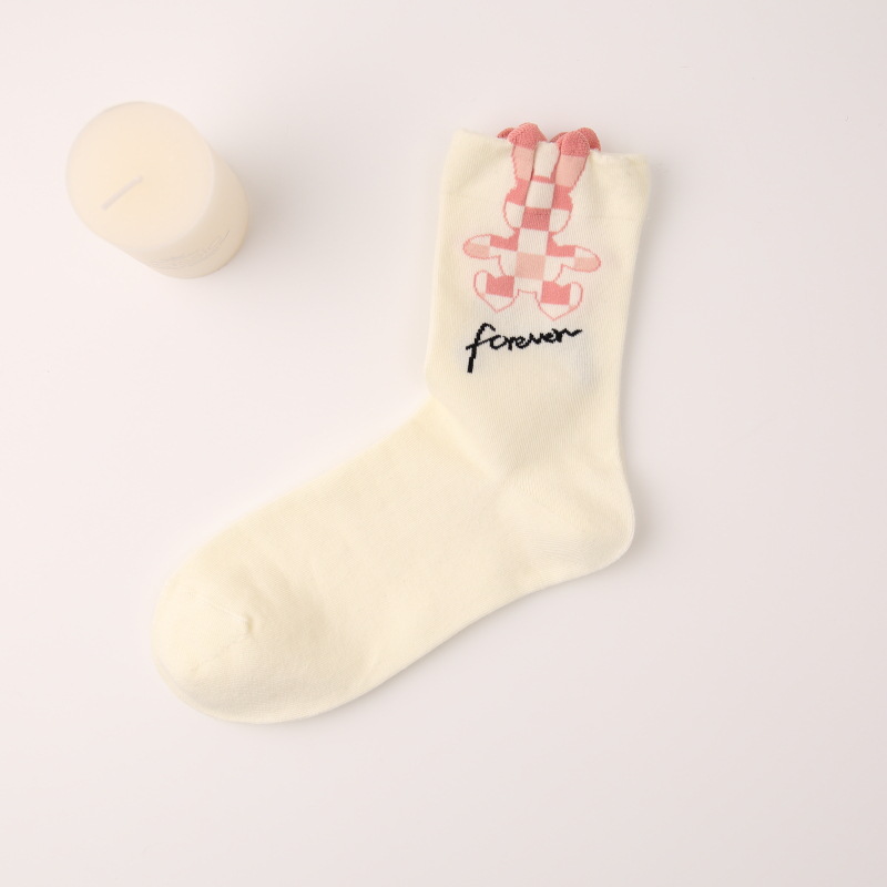 봄과 가을 양말 여성 양말 오리지널 트렌드 튜브 양말 나비 매듭 입체 꽃면 양말 체커보드 토끼