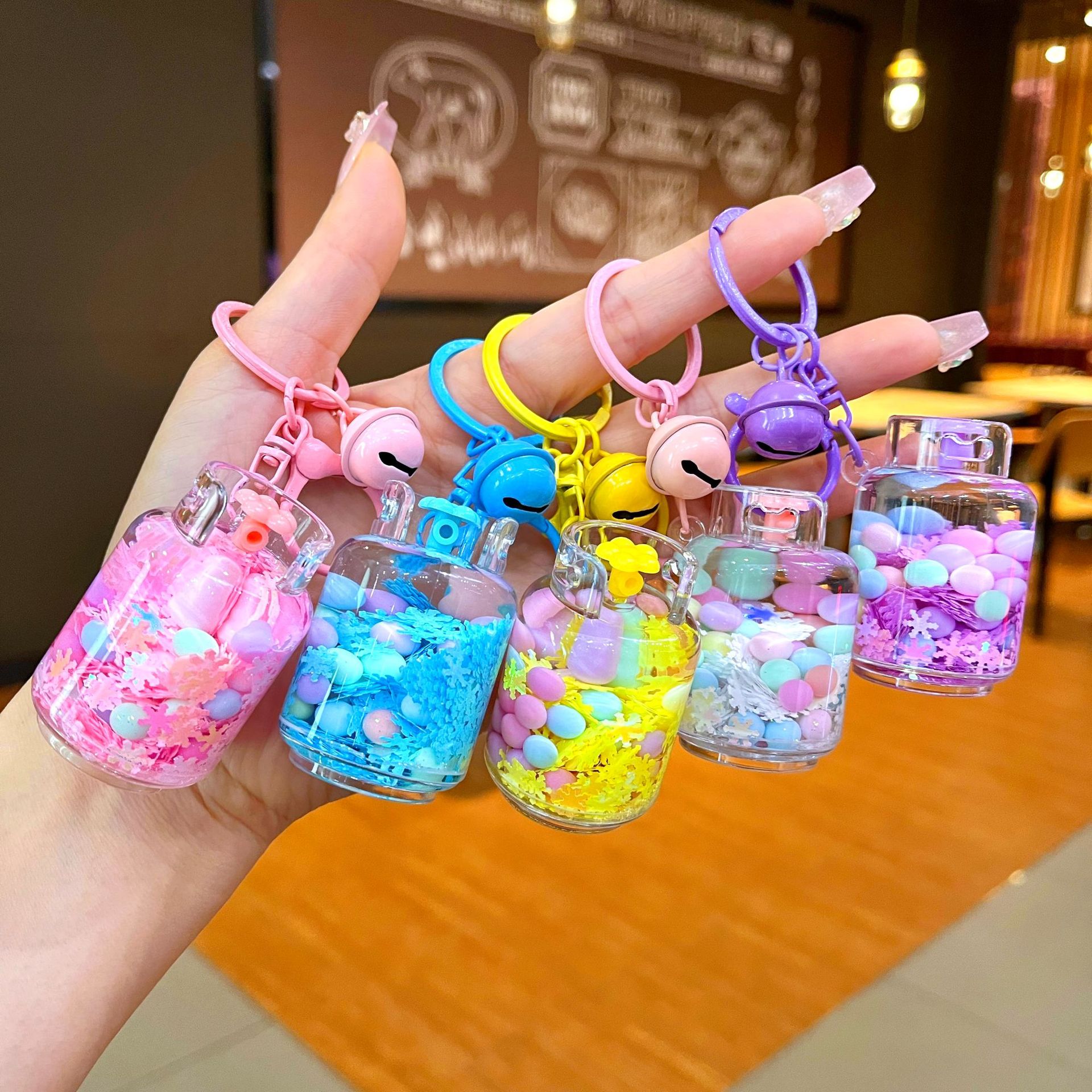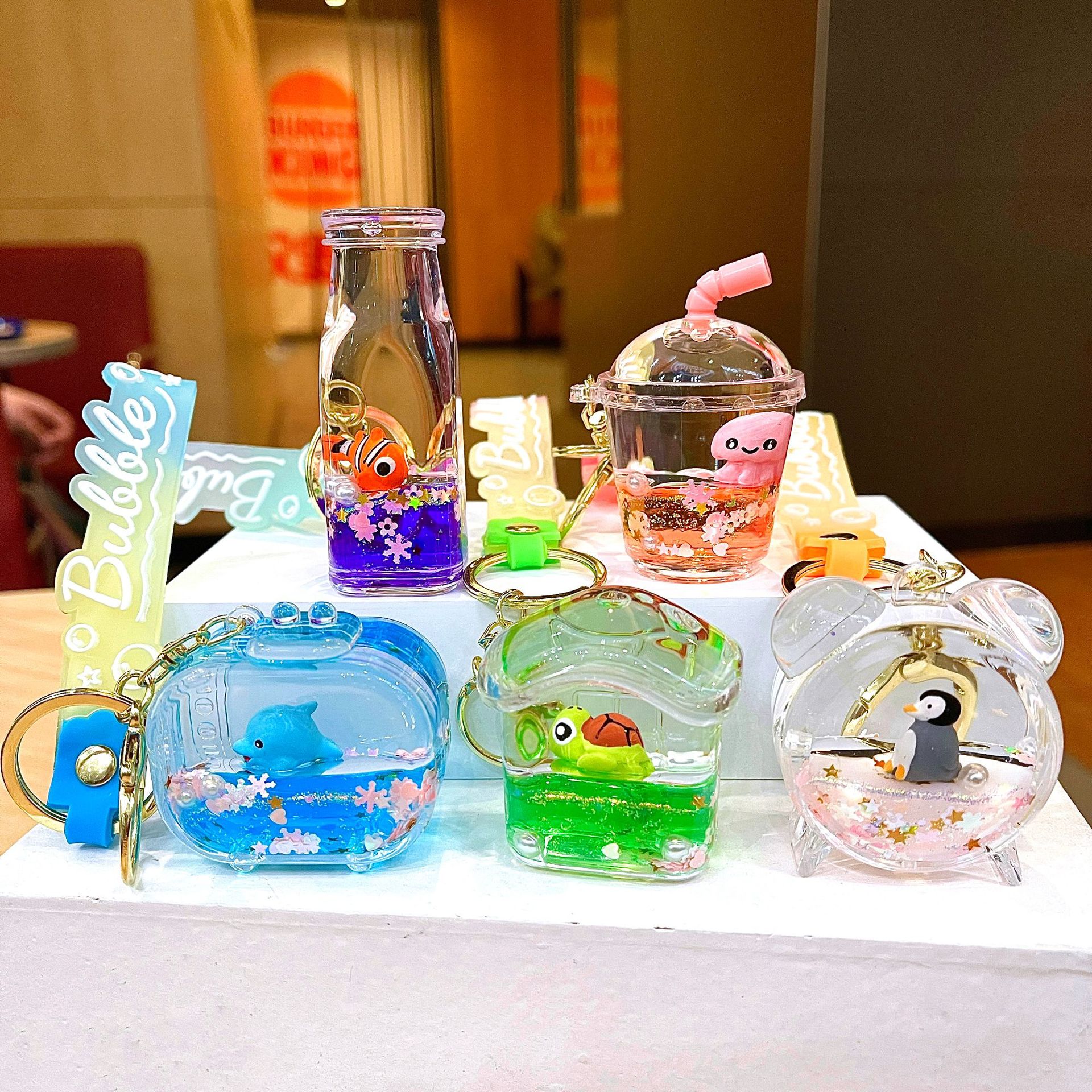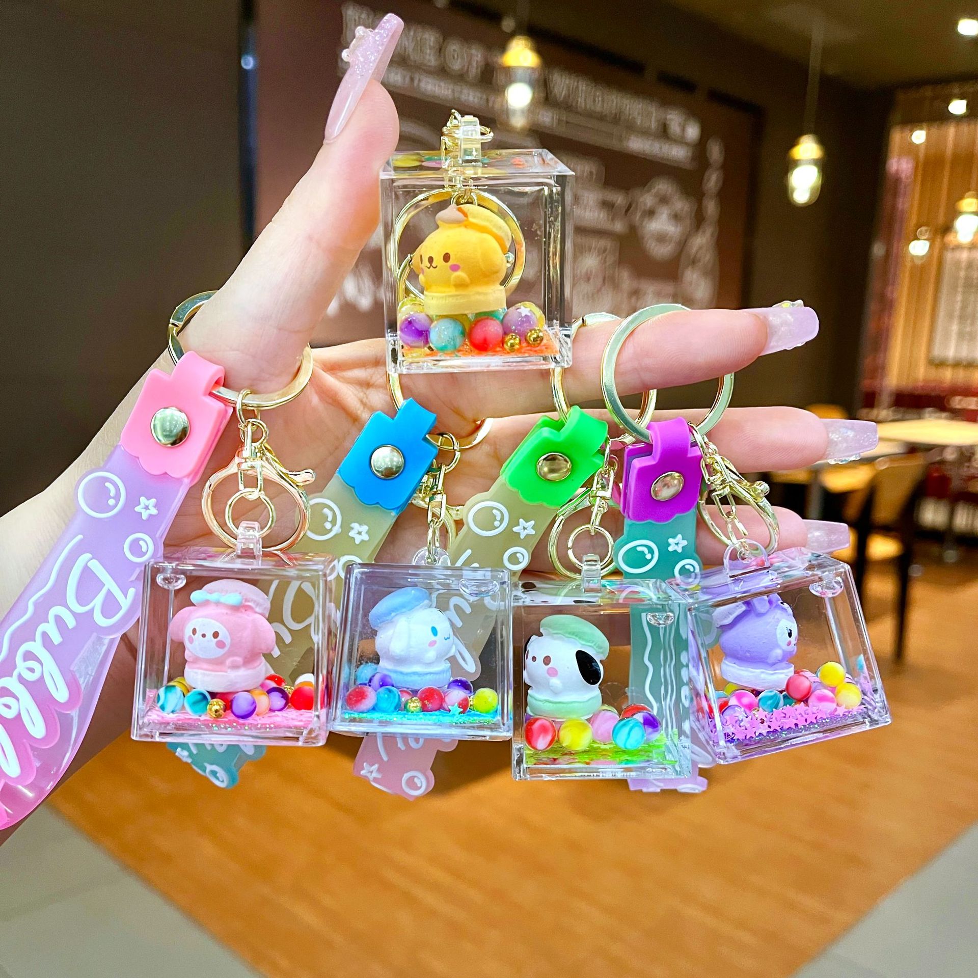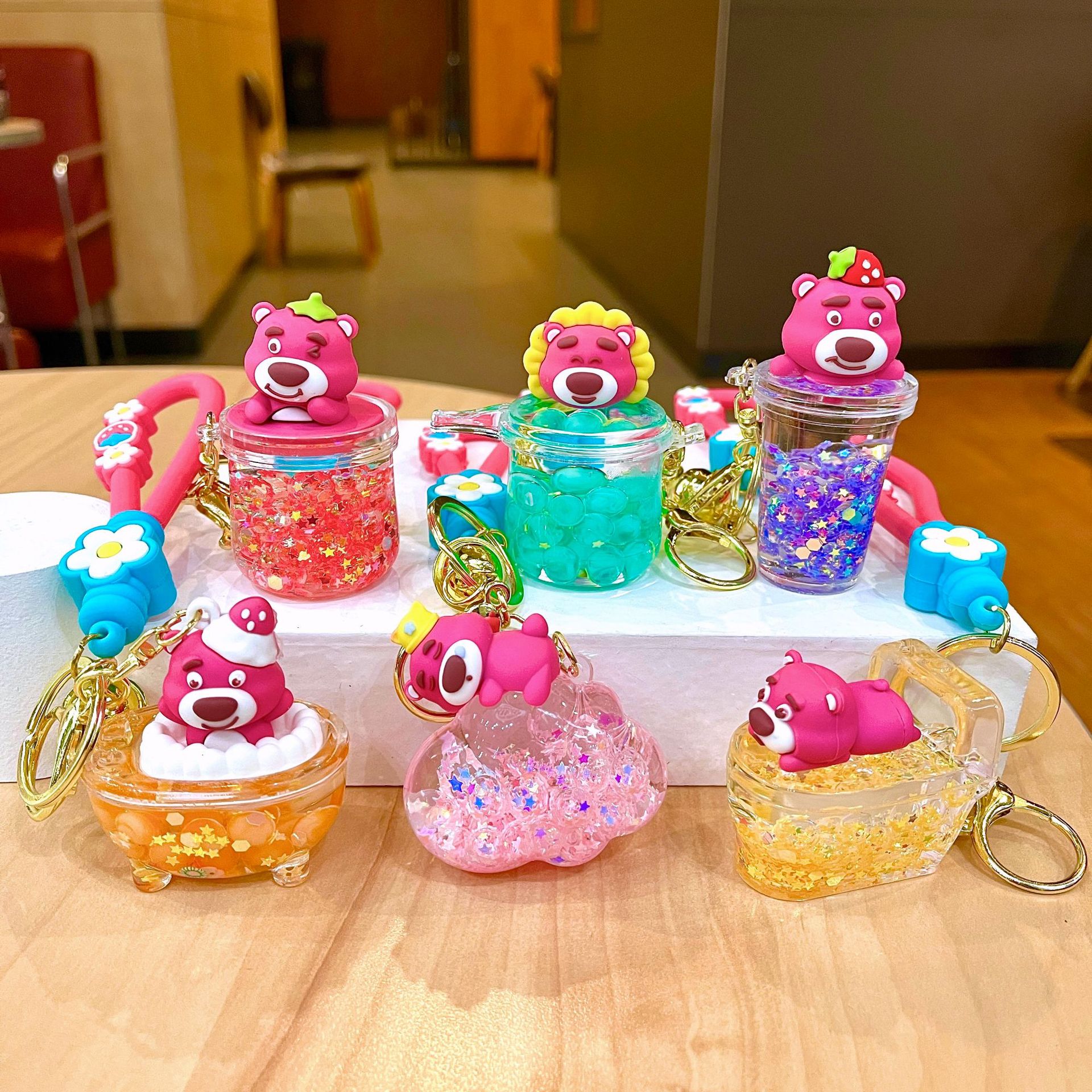 만화 기름 직소 병 아크릴 열쇠 고리 자동차 열쇠 고리 펜던트 열쇠 고리 펜던트 도매 작은 선물스토어 가기