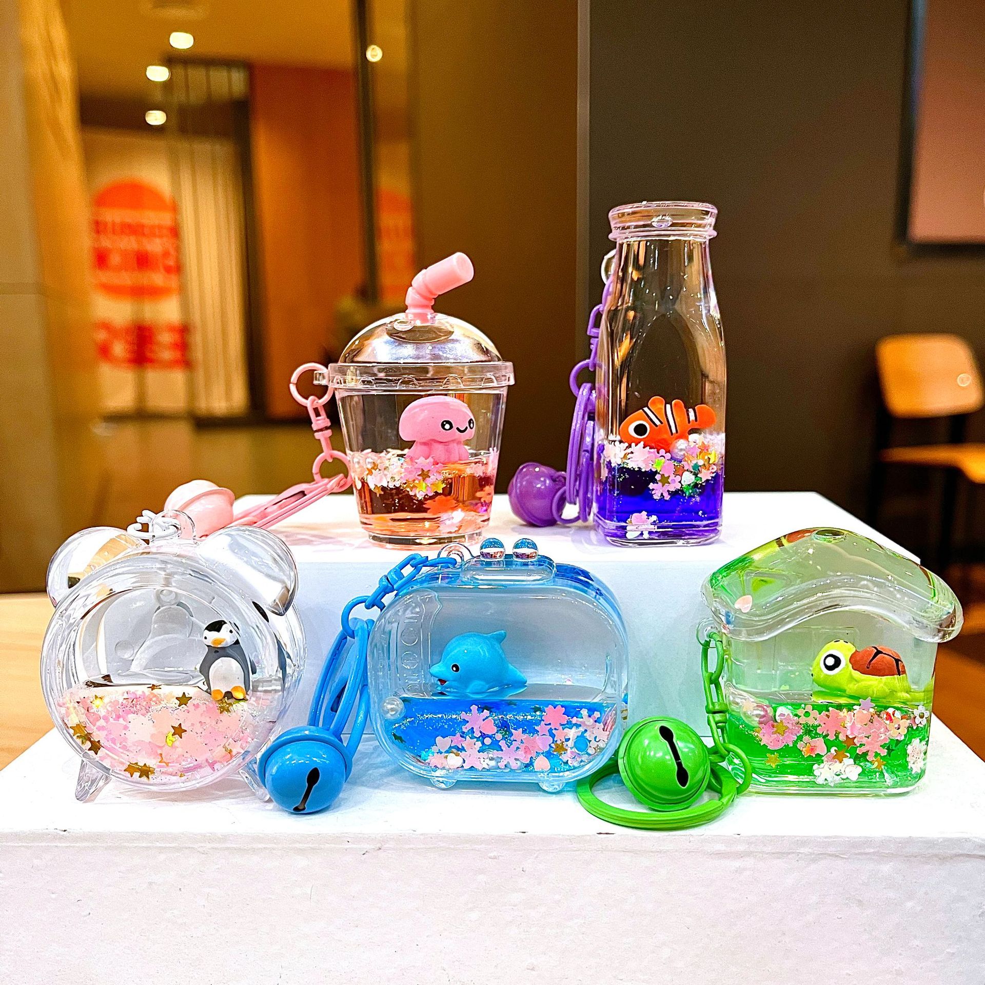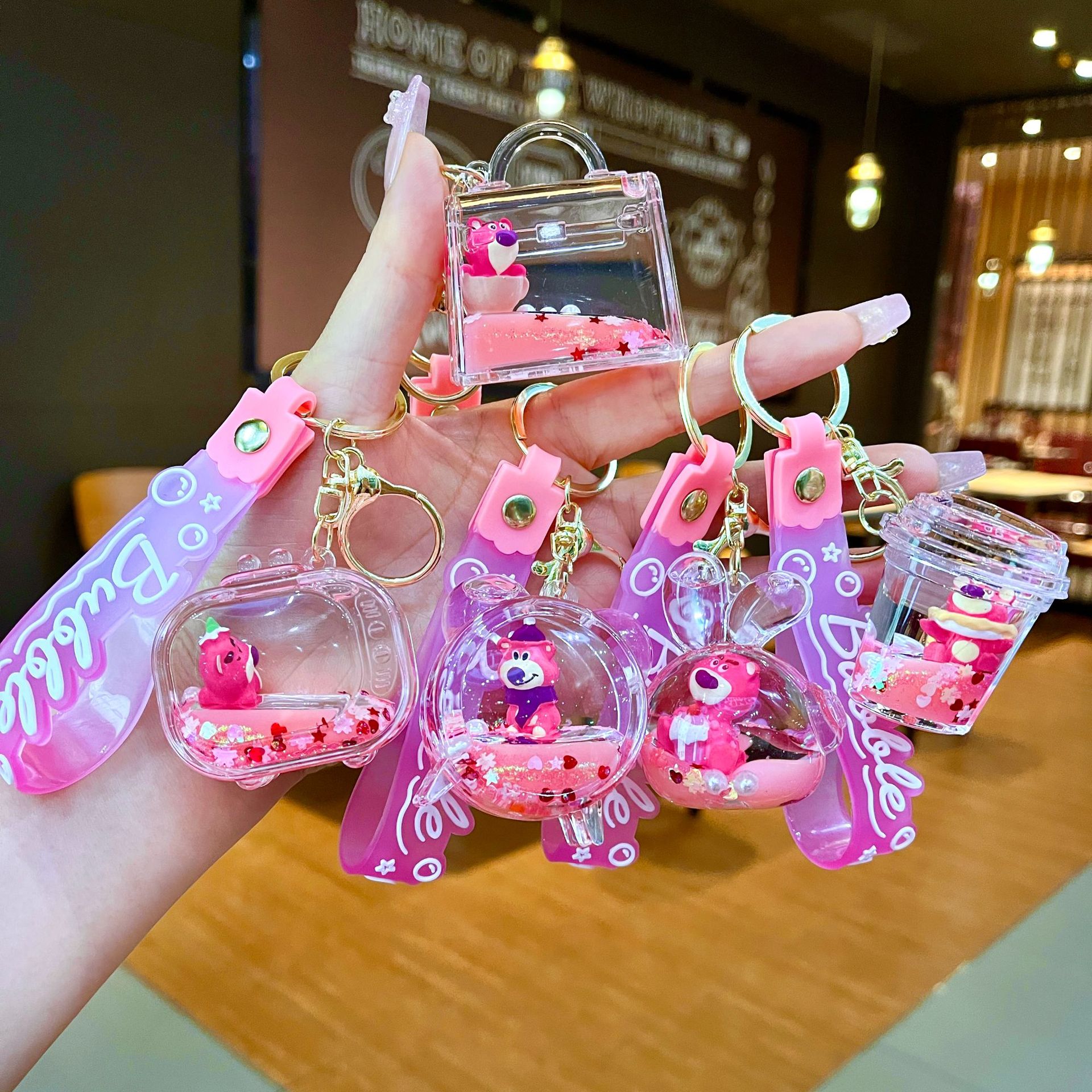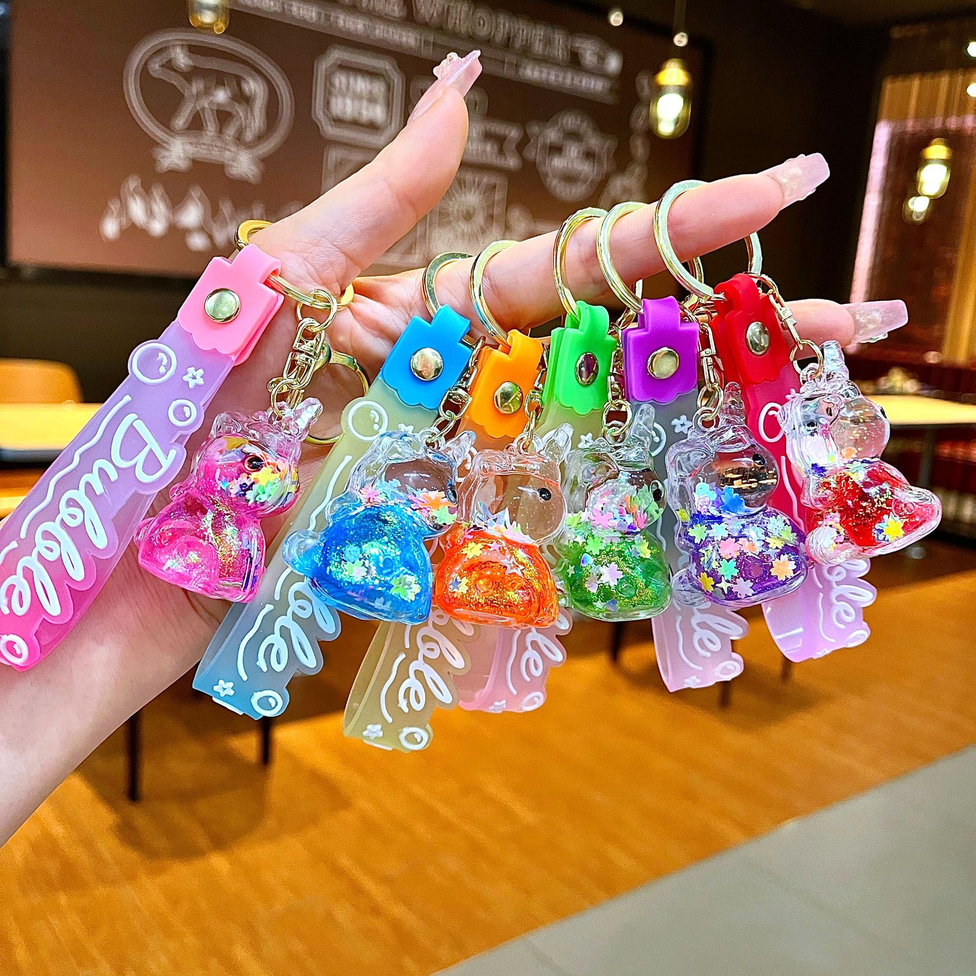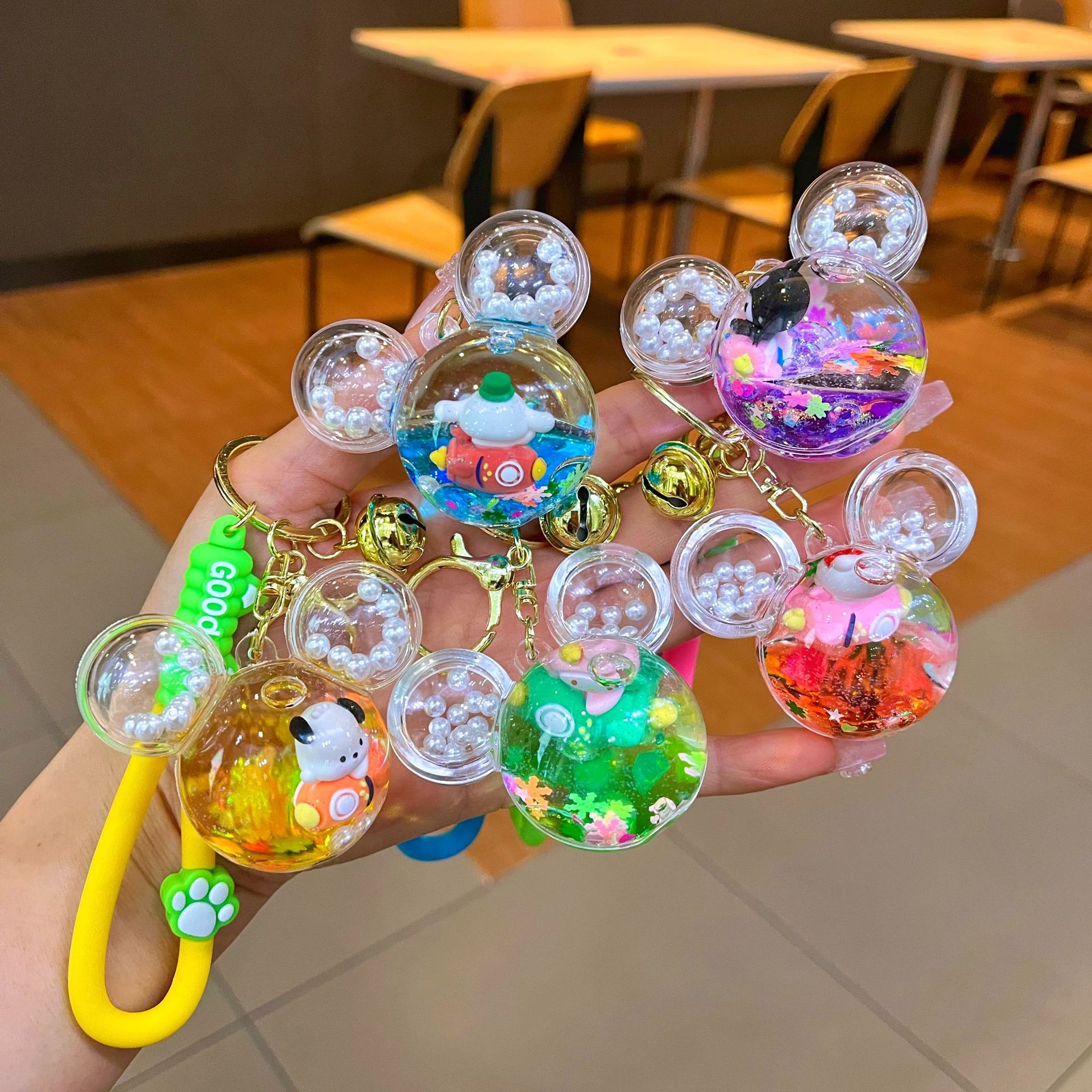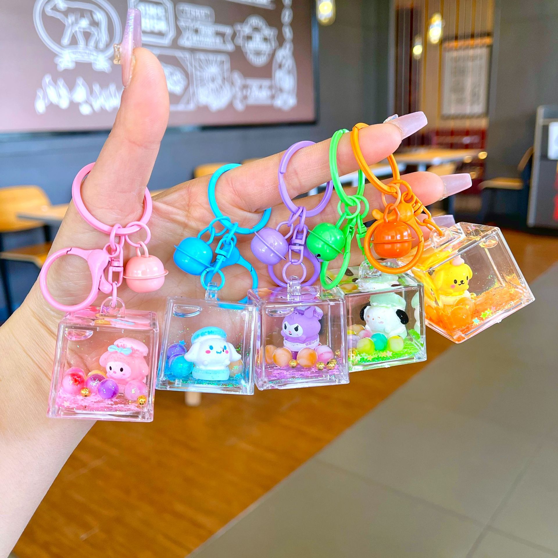 만화 기름 직소 병 아크릴 열쇠 고리 자동차 열쇠 고리 펜던트 열쇠 고리 펜던트 도매 작은 선물스토어 가기