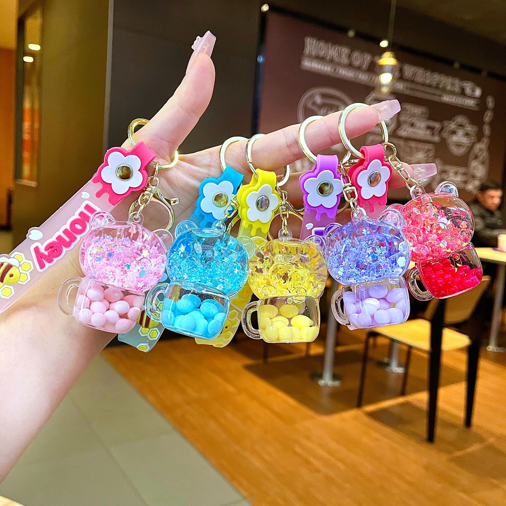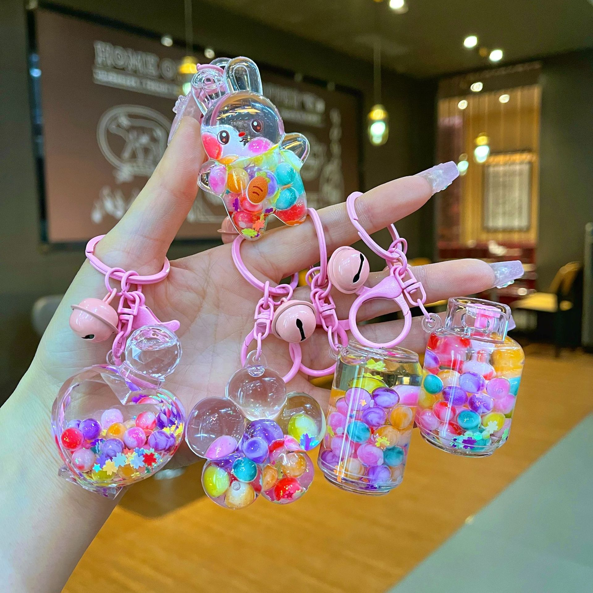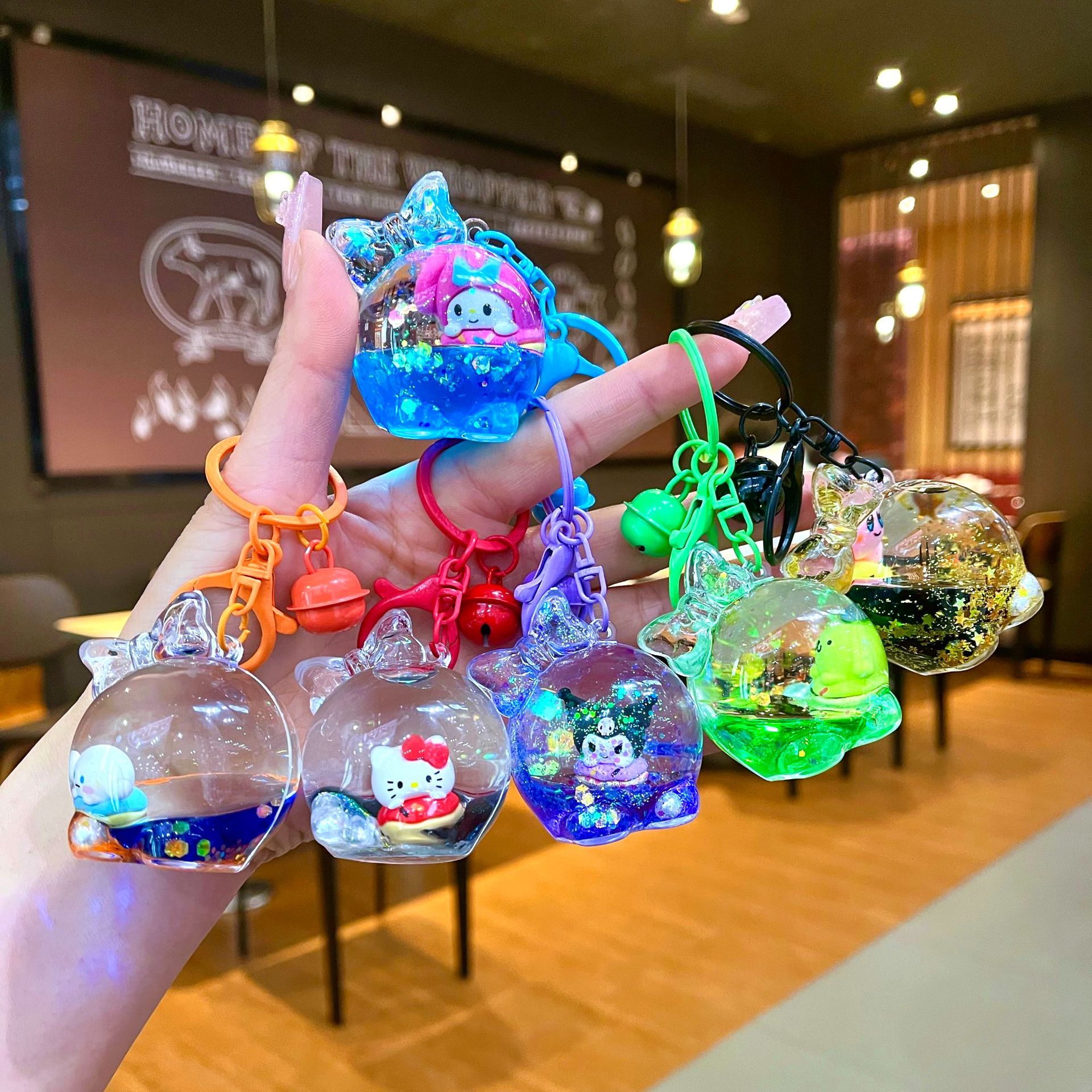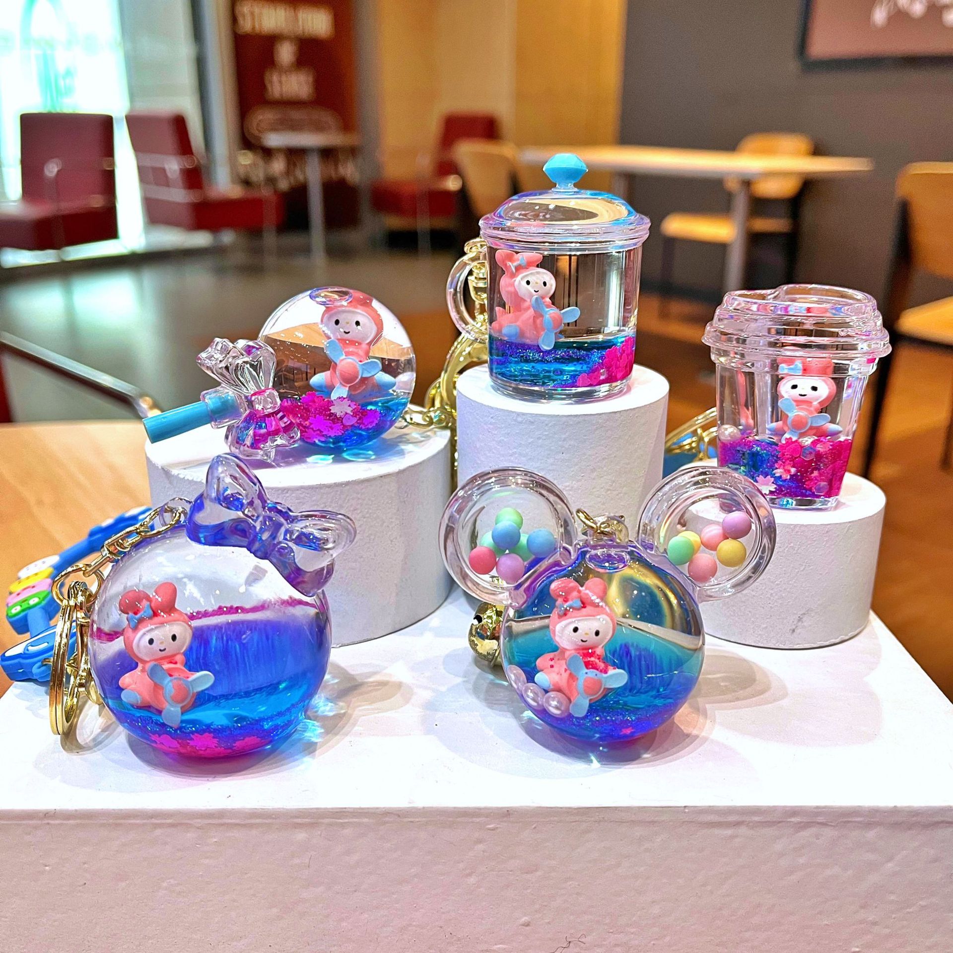 만화 기름 직소 병 아크릴 열쇠 고리 자동차 열쇠 고리 펜던트 열쇠 고리 펜던트 도매 작은 선물스토어 가기