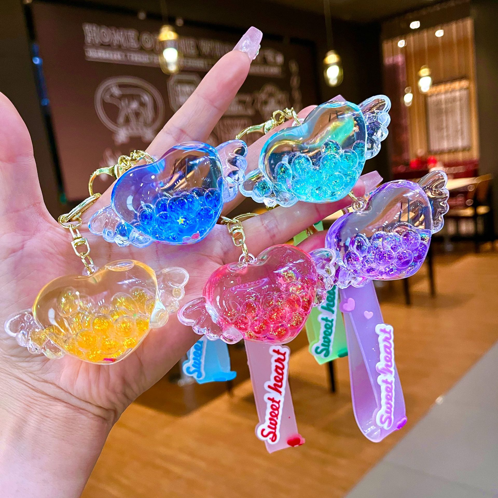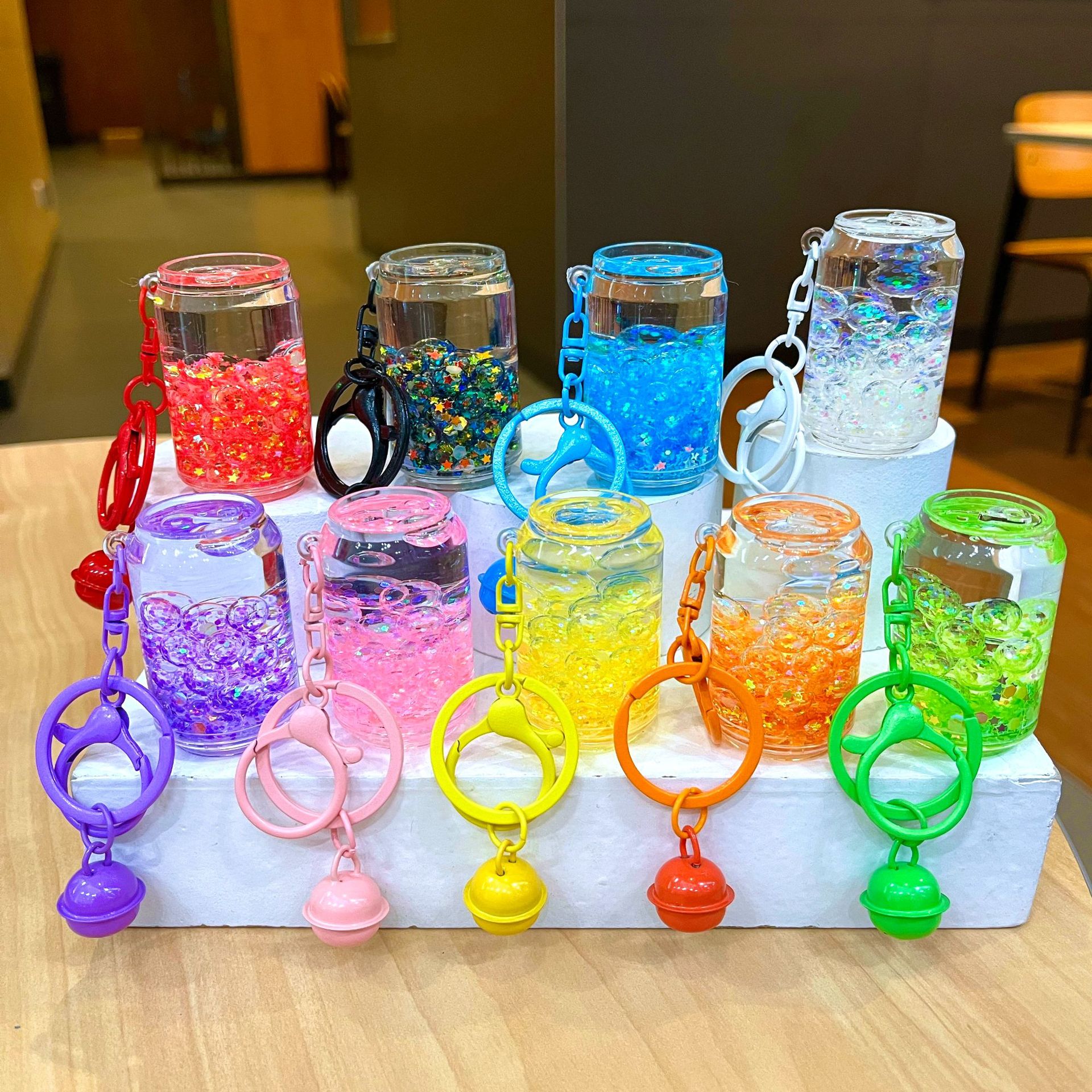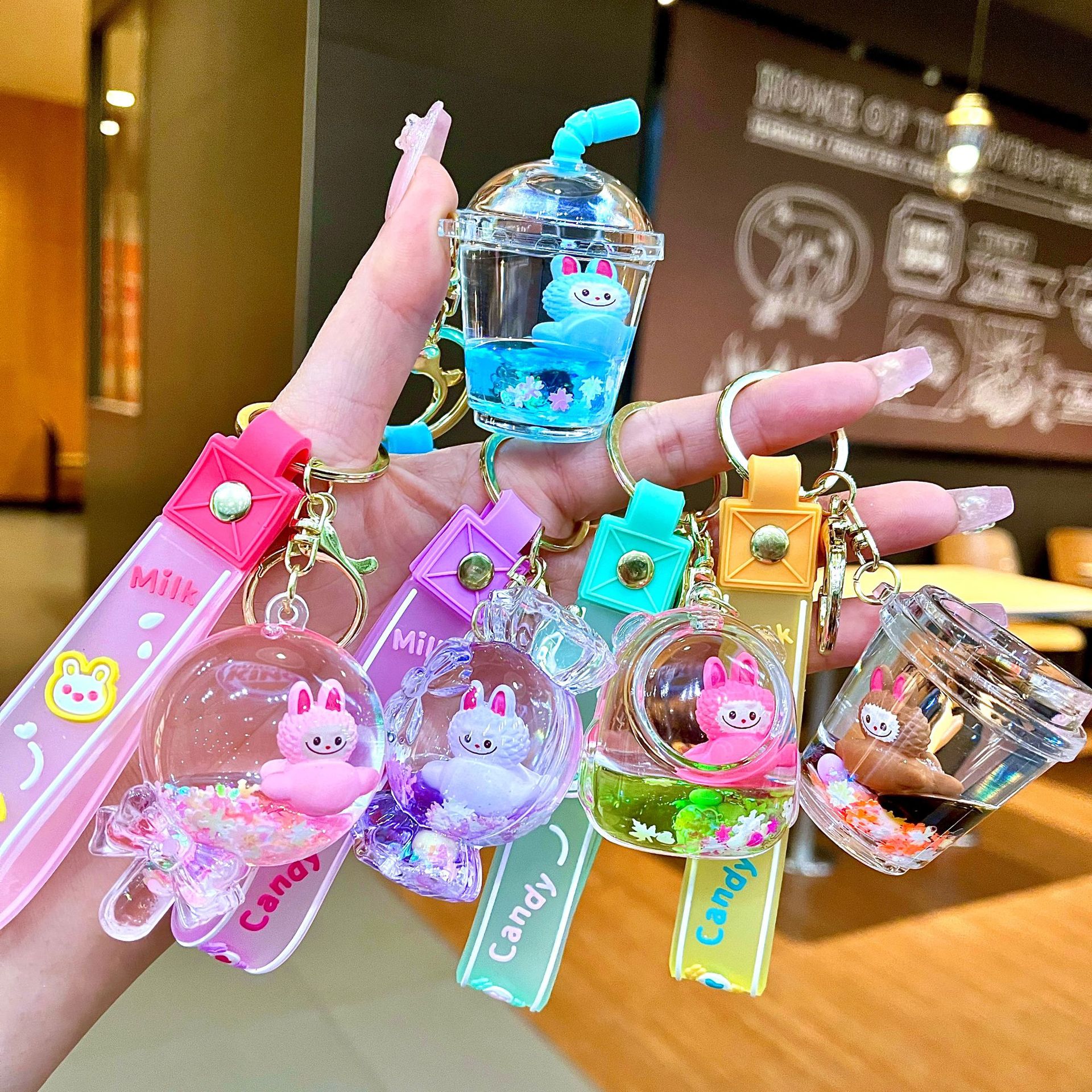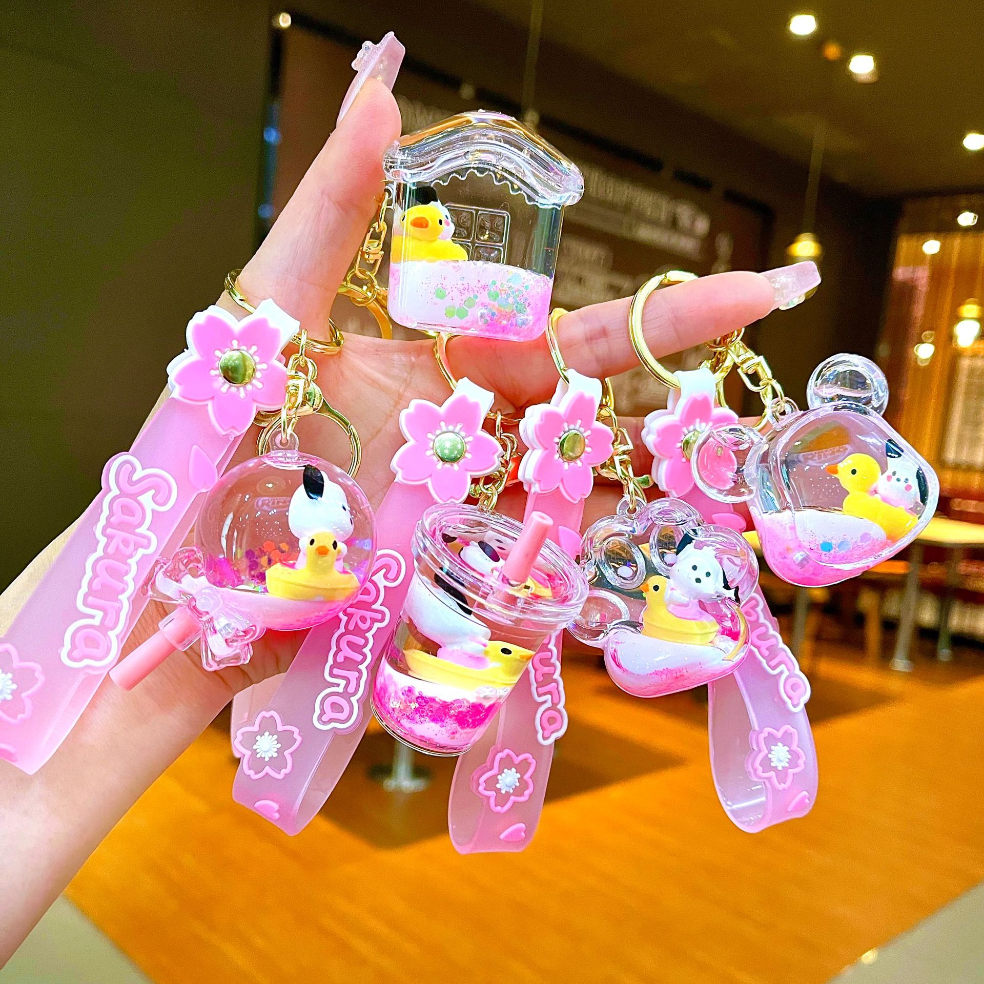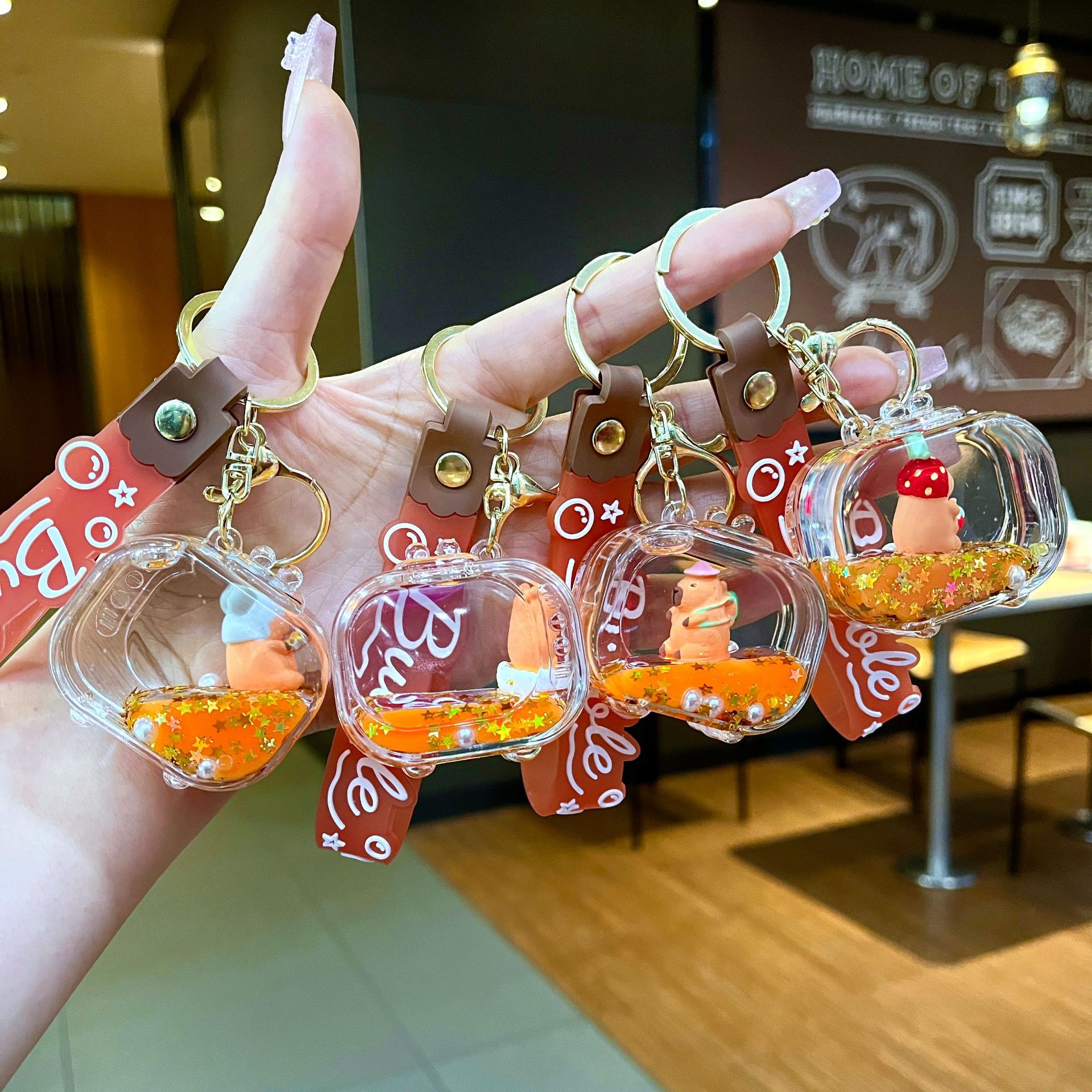 만화 기름 직소 병 아크릴 열쇠 고리 자동차 열쇠 고리 펜던트 열쇠 고리 펜던트 도매 작은 선물스토어 가기