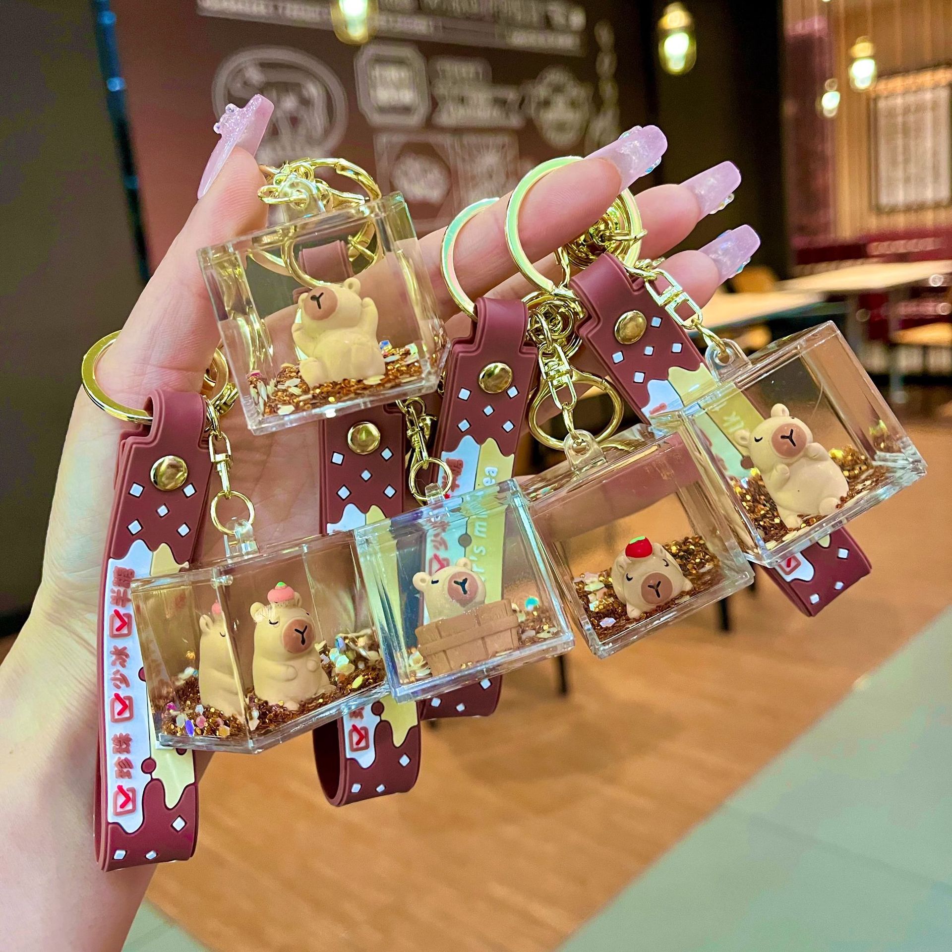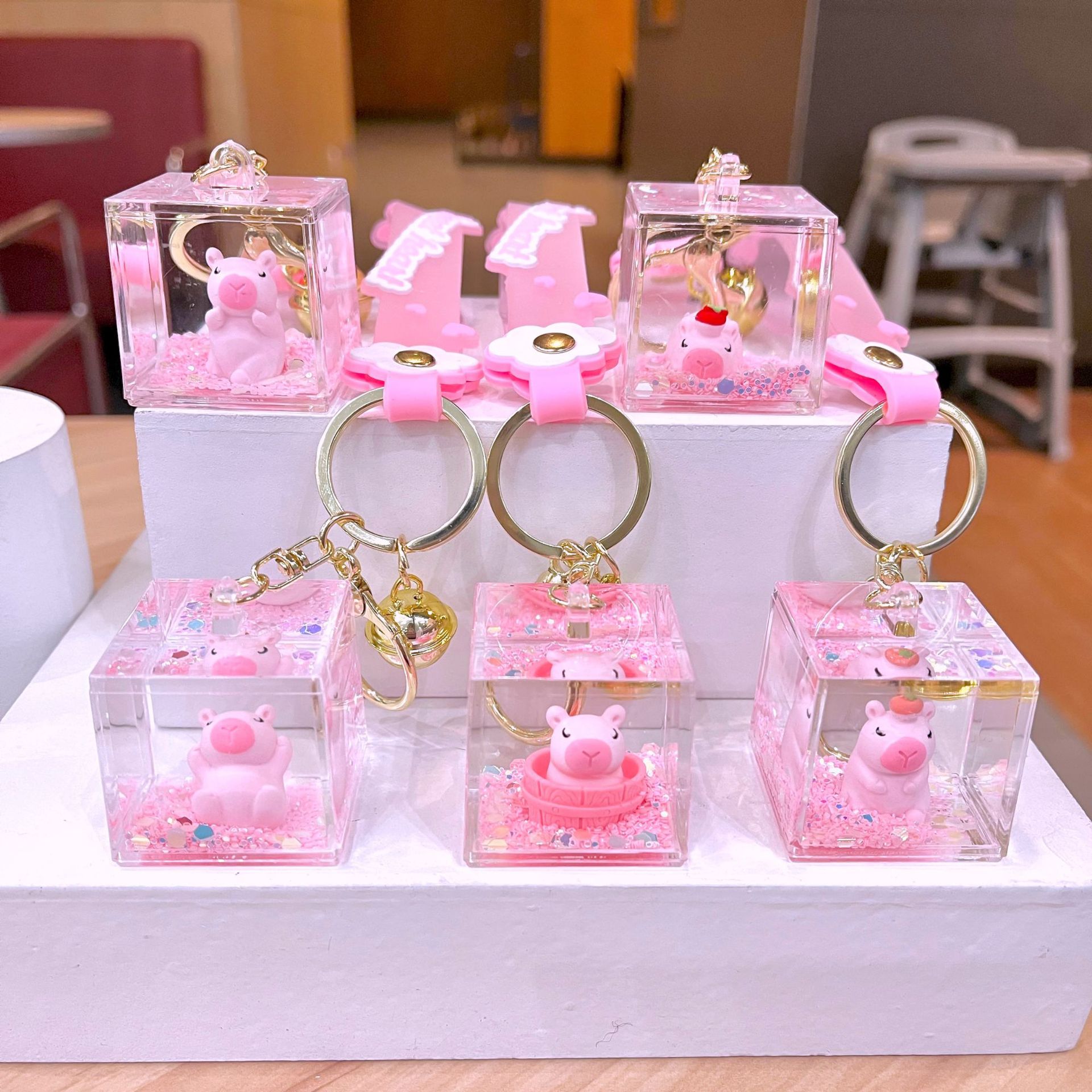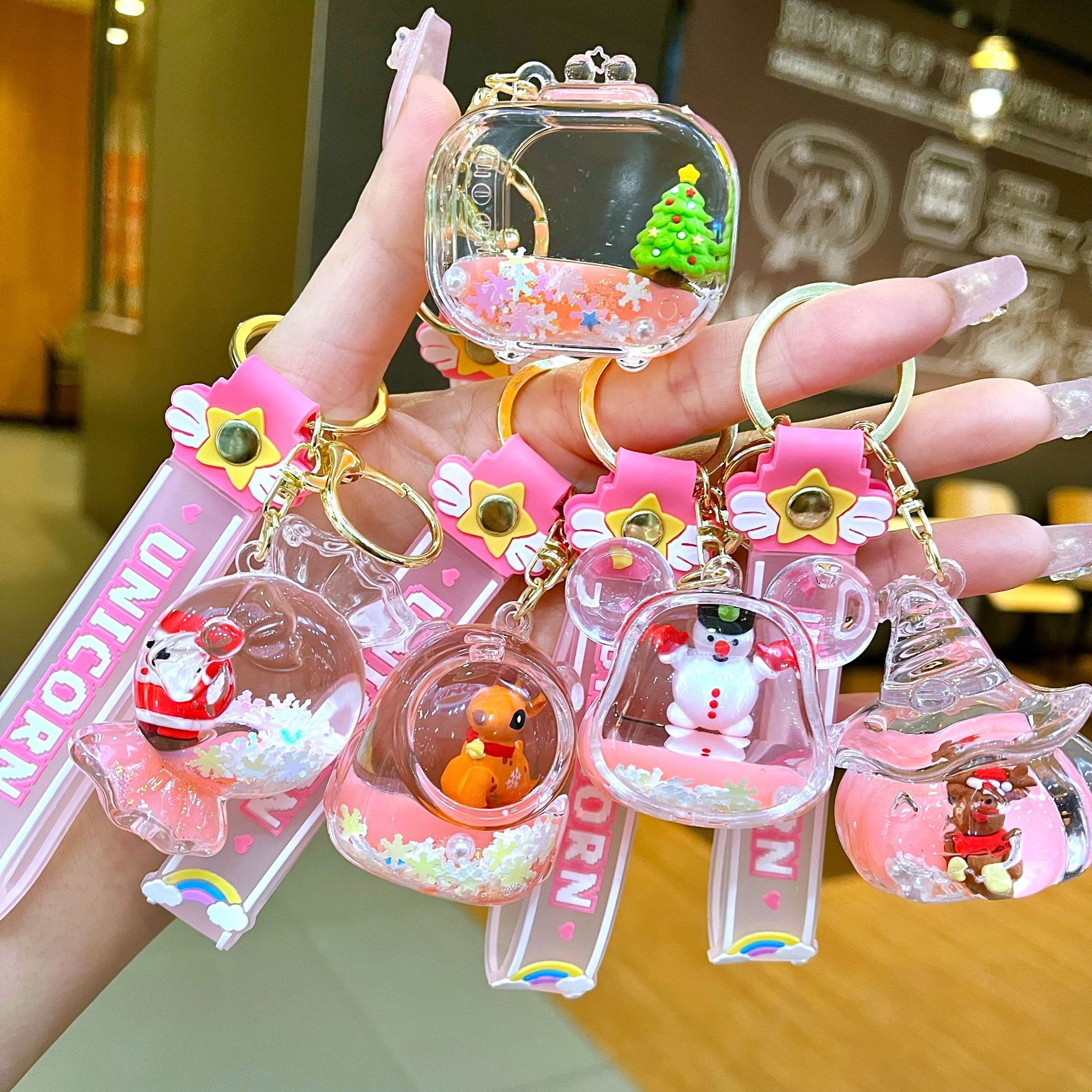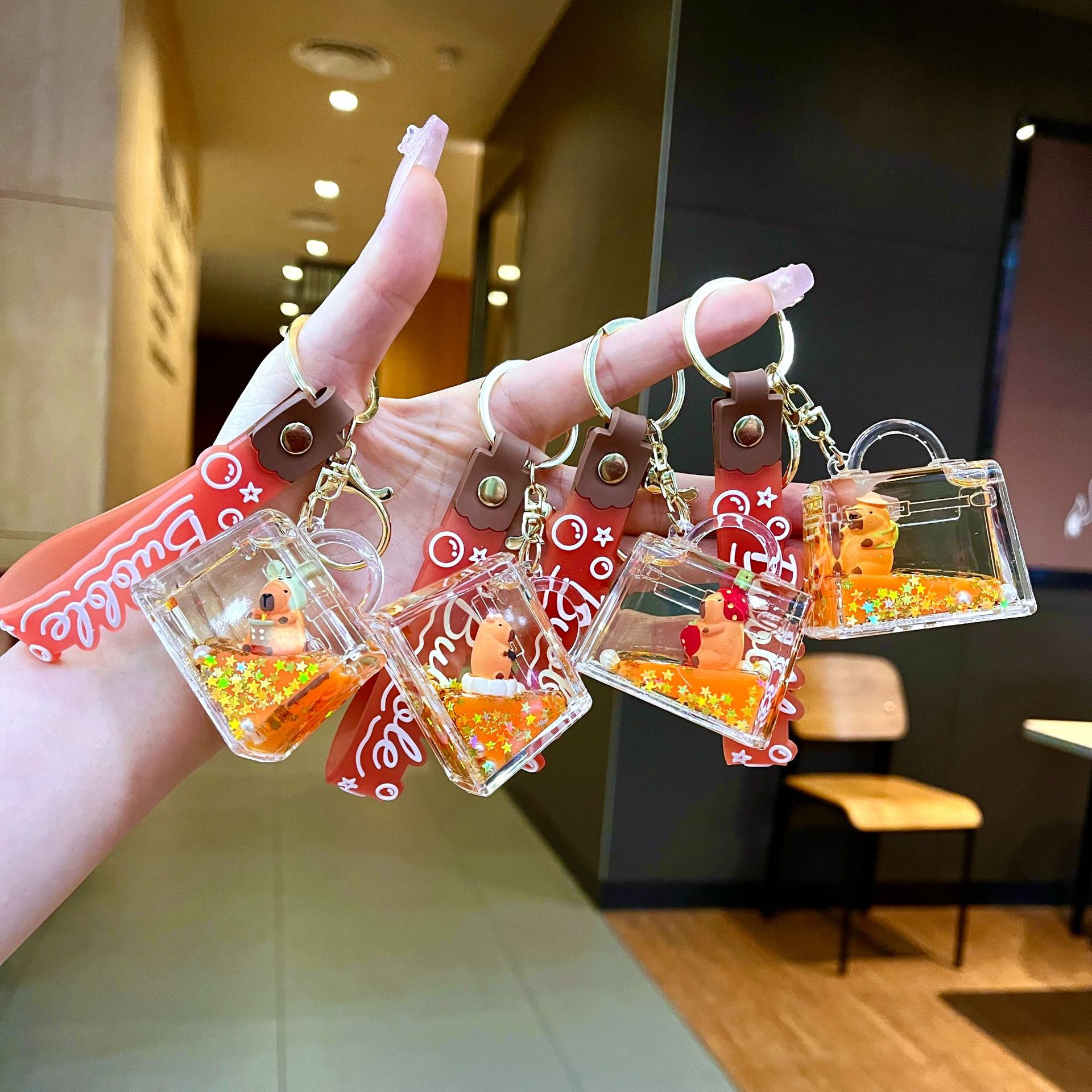 만화 기름 직소 병 아크릴 열쇠 고리 자동차 열쇠 고리 펜던트 열쇠 고리 펜던트 도매 작은 선물스토어 가기