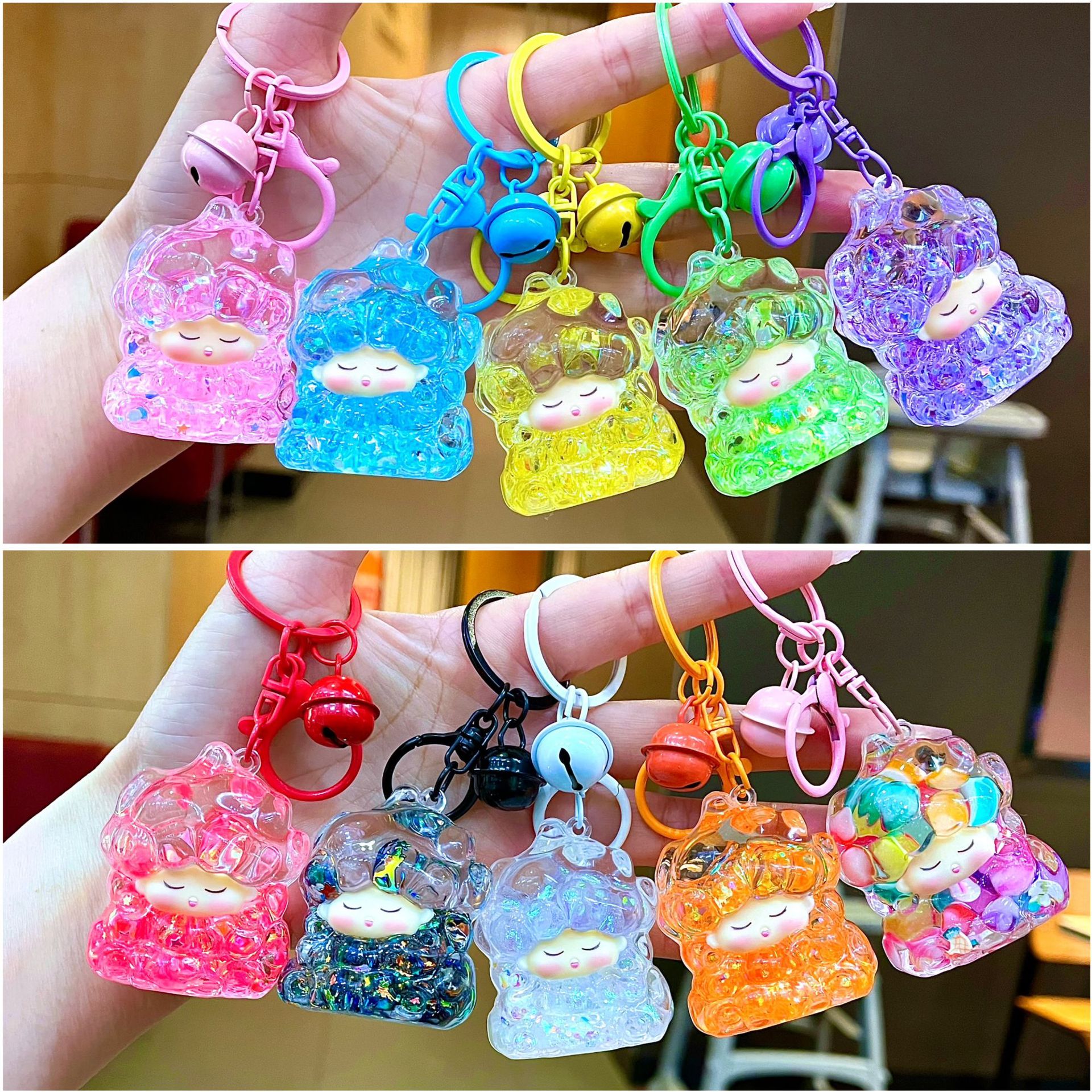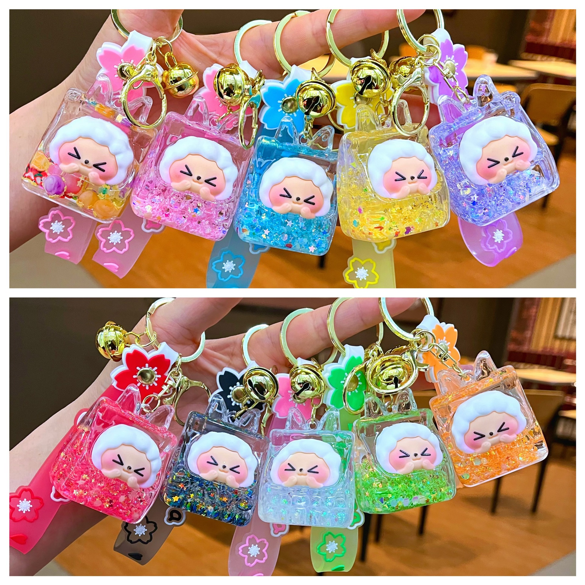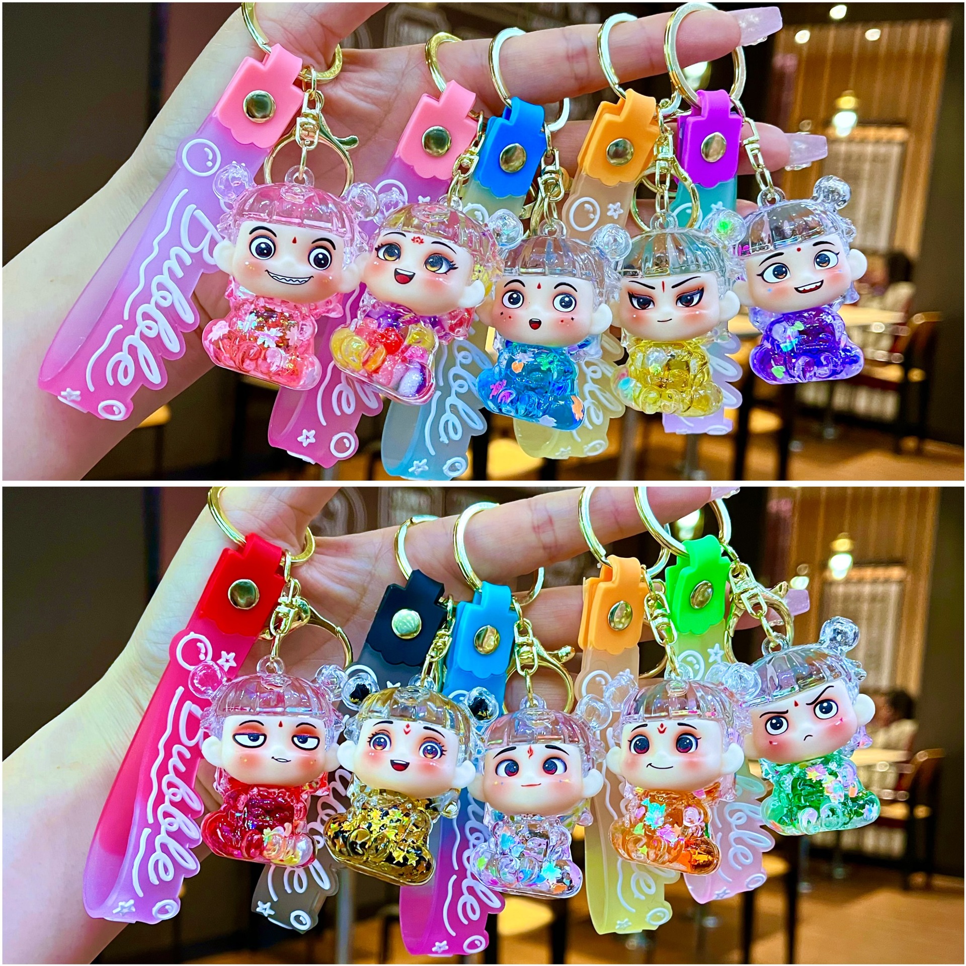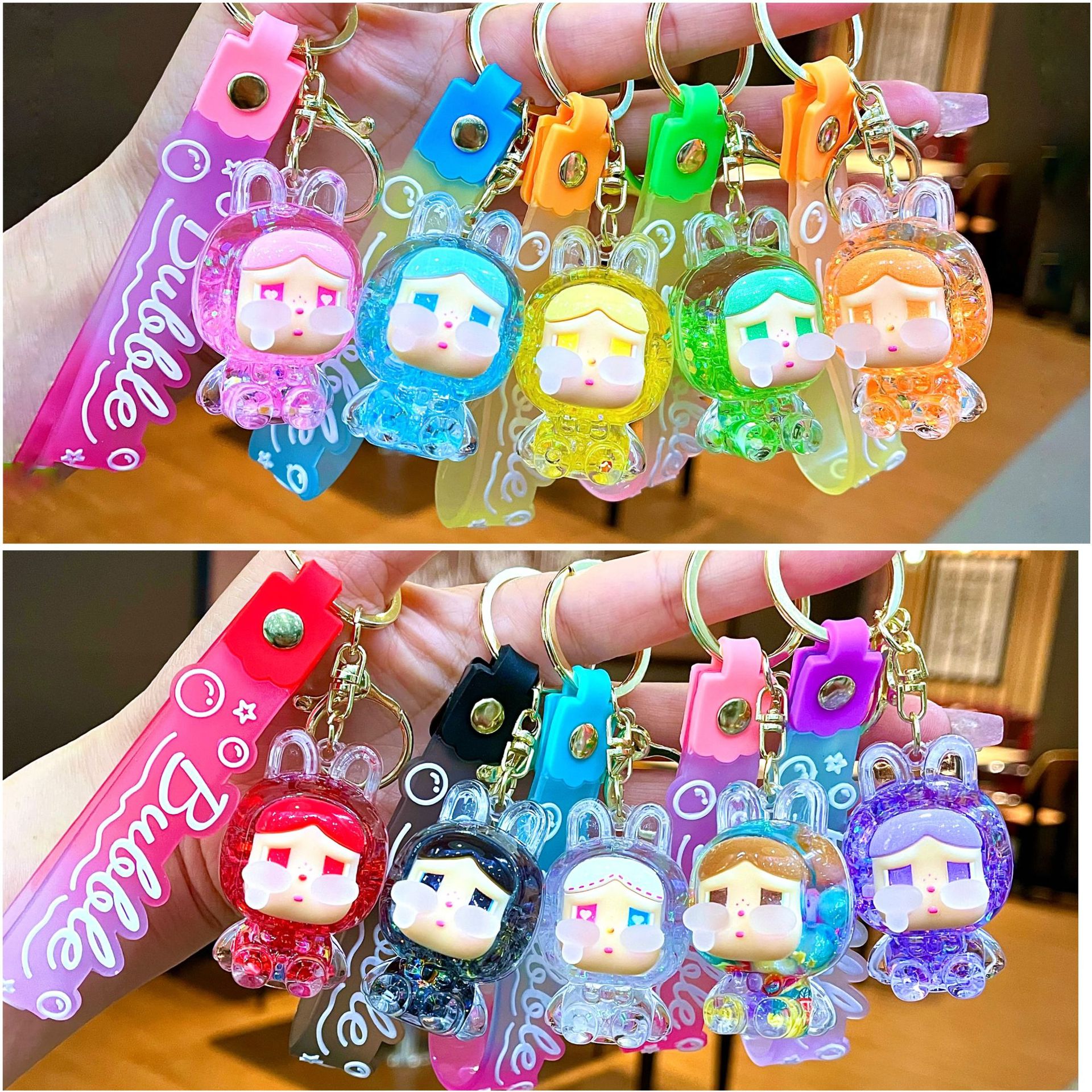 만화 기름 직소 병 아크릴 열쇠 고리 자동차 열쇠 고리 펜던트 열쇠 고리 펜던트 도매 작은 선물