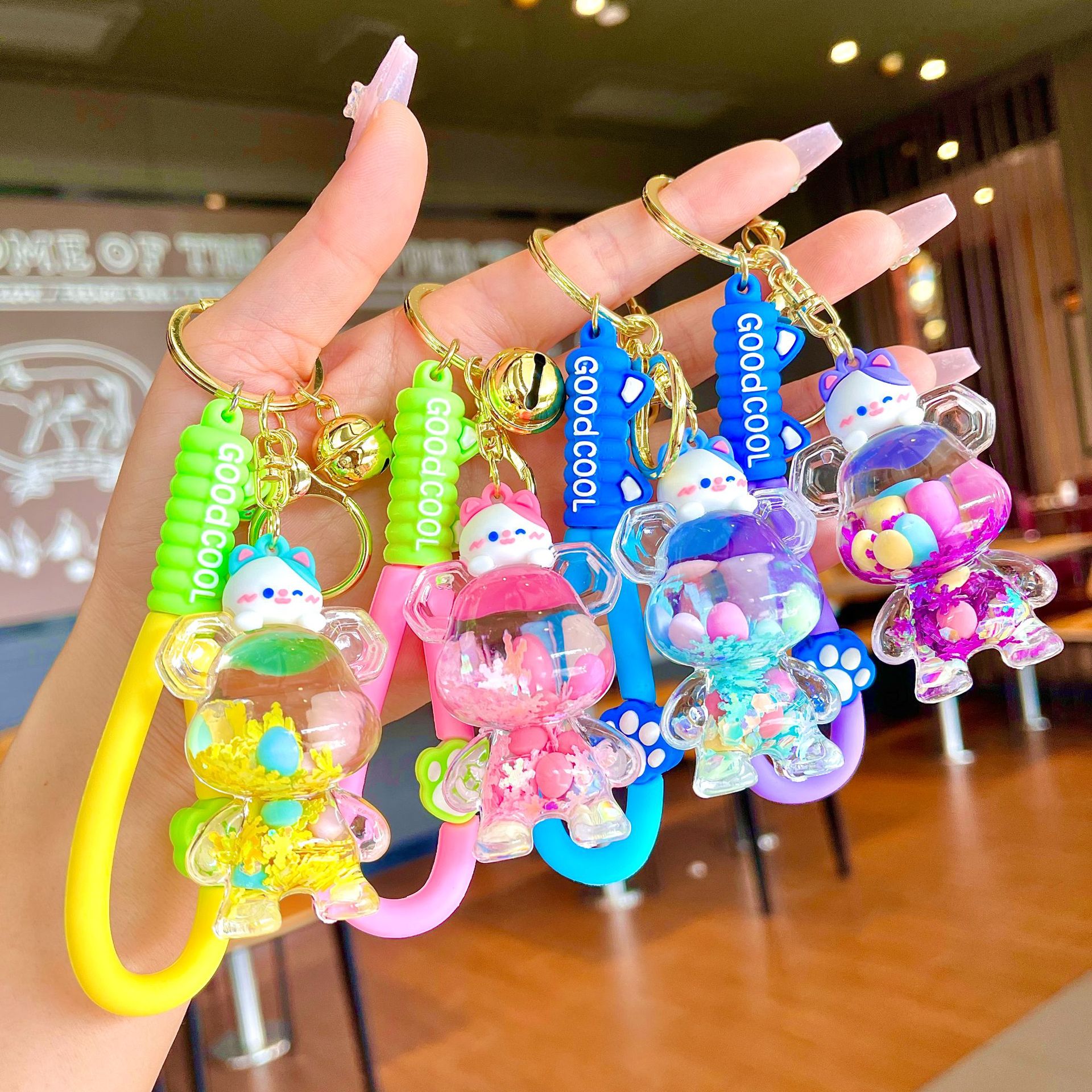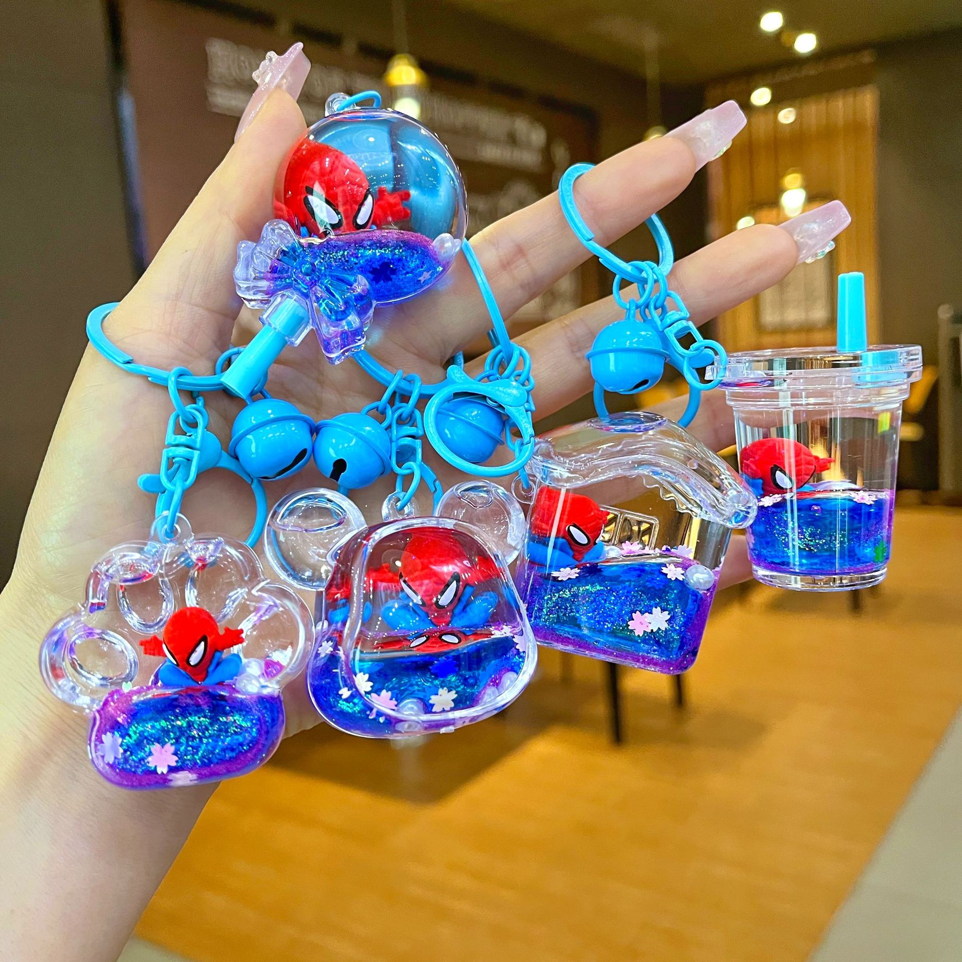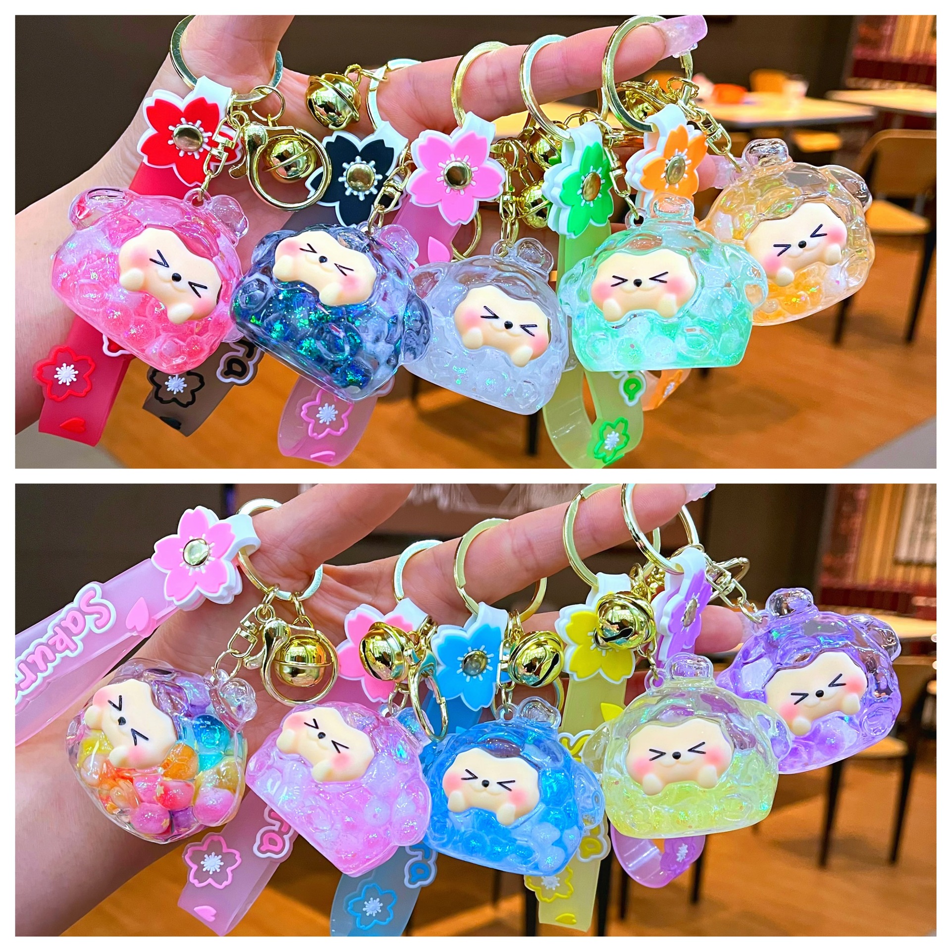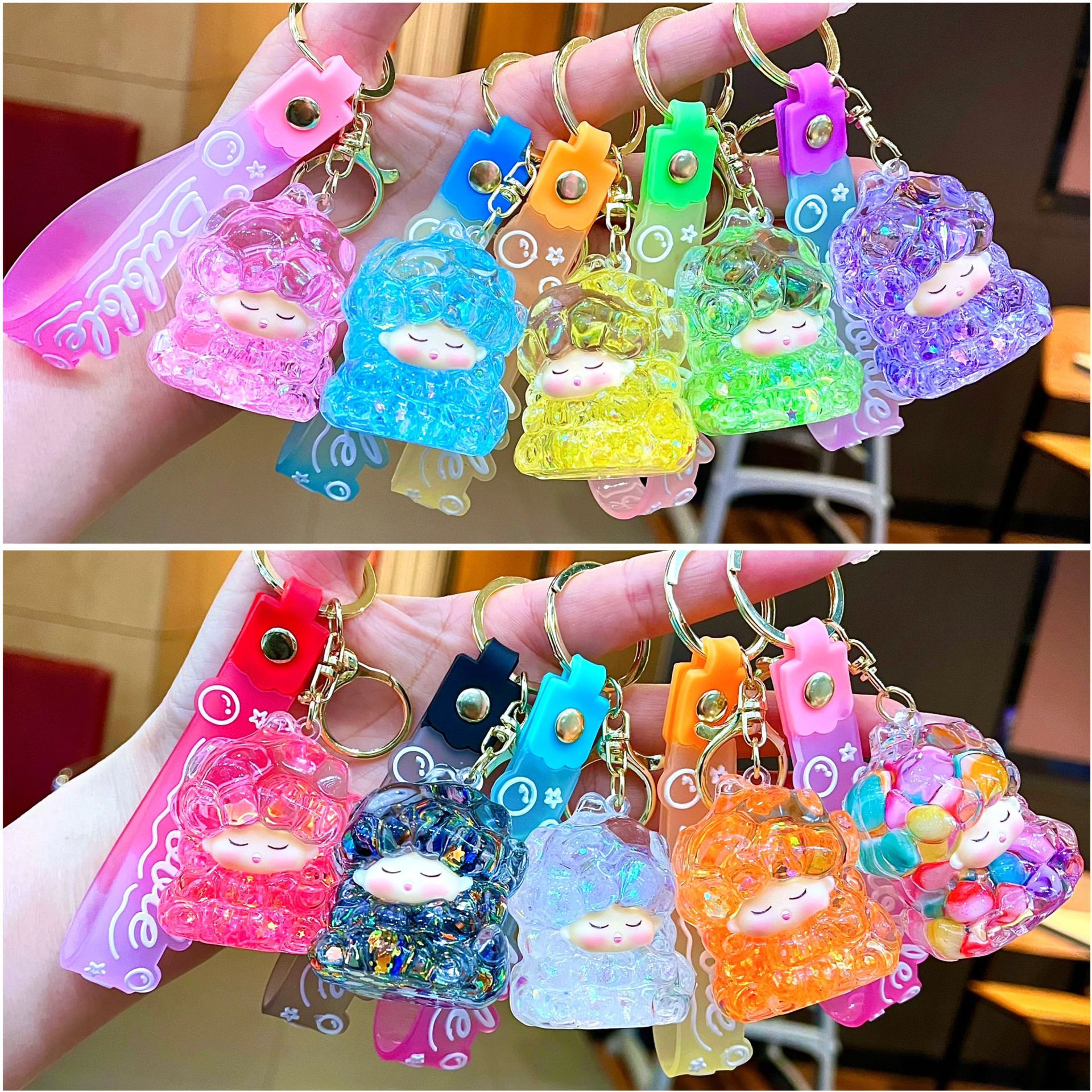 만화 기름 직소 병 아크릴 열쇠 고리 자동차 열쇠 고리 펜던트 열쇠 고리 펜던트 도매 작은 선물