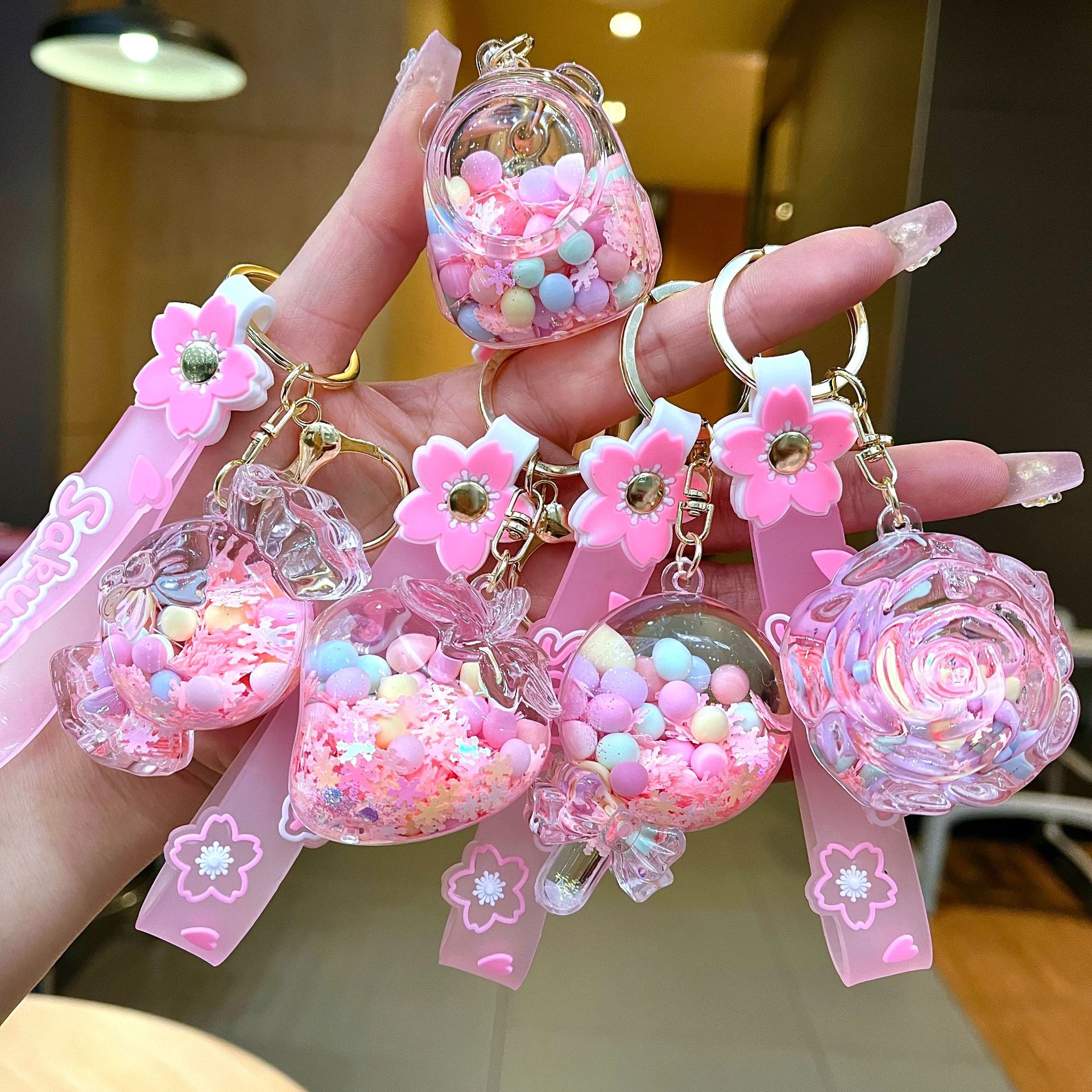 • 벚꽃 끈 [혼합 색상] 핑크 눈꽃 사탕 딸기 세트