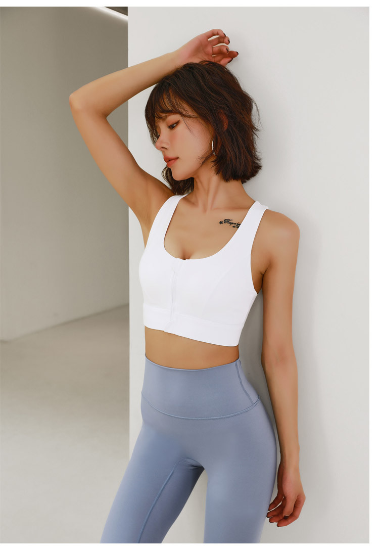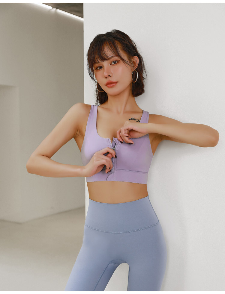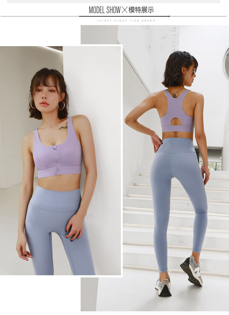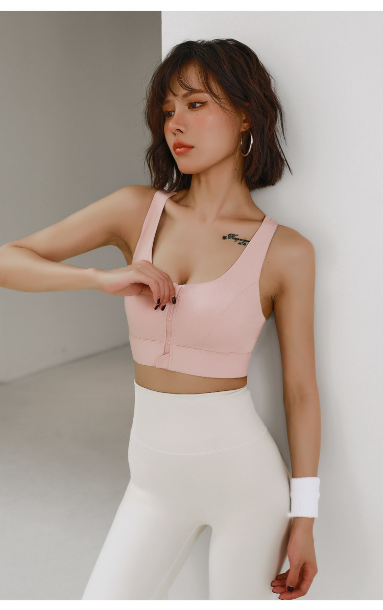 새로운 고강도 충격 방지 수집 스포츠 속옷 달리기 피트니스 세트 요가 브라 여성용 여름 전면 지퍼 원피스 컵
