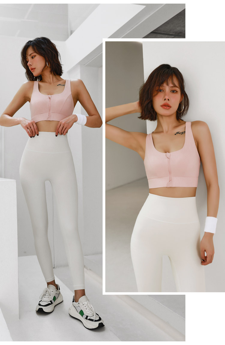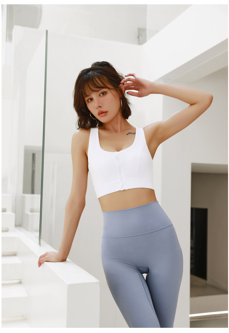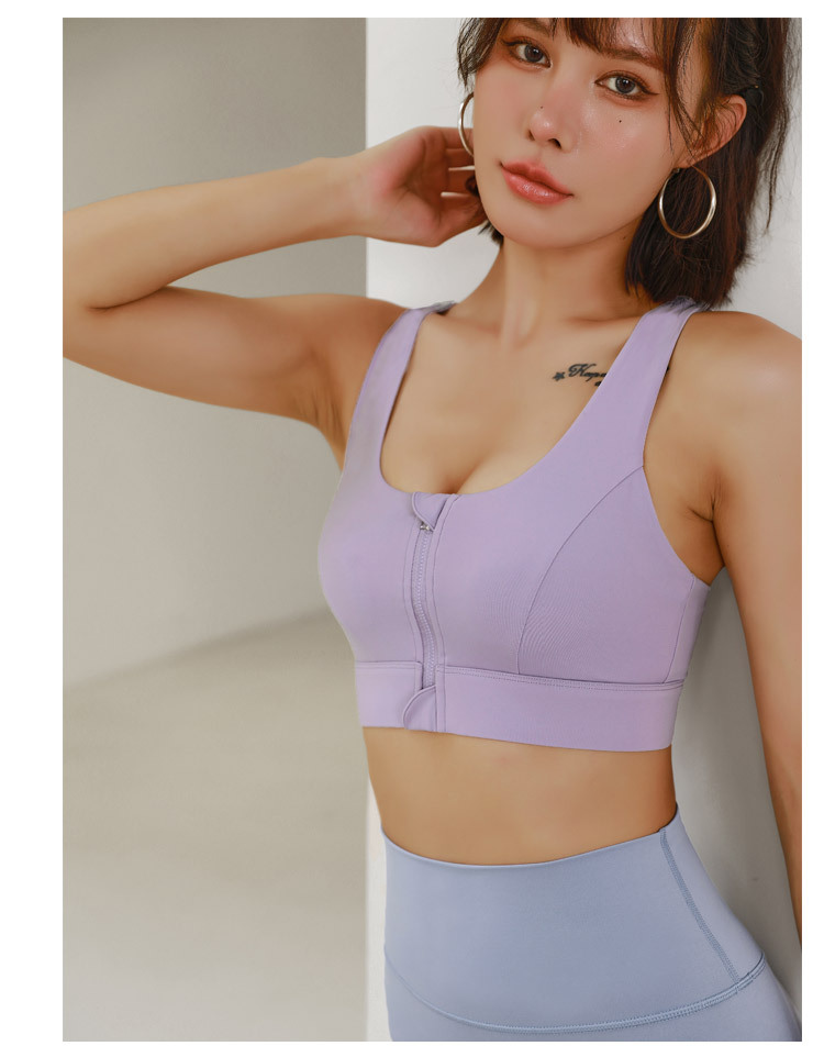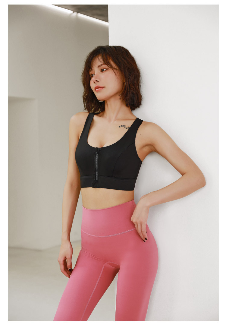 새로운 고강도 충격 방지 수집 스포츠 속옷 달리기 피트니스 세트 요가 브라 여성용 여름 전면 지퍼 원피스 컵