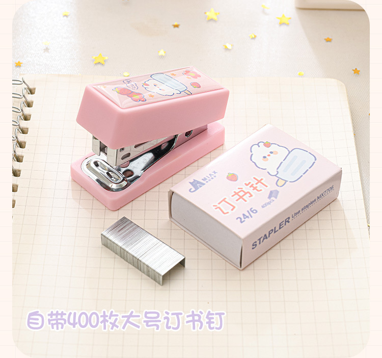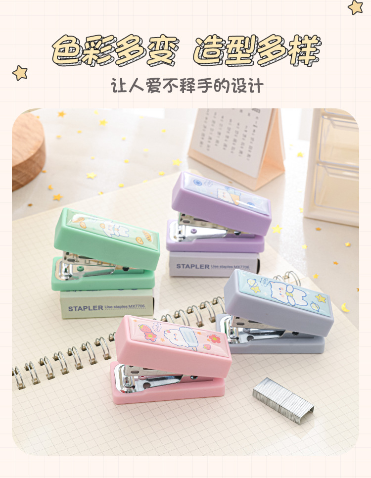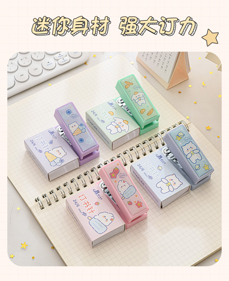 휴대용 귀여운 만화 미니 스몰 사이즈 스테이플러 세트 12 학생 사무실 작은 바늘 스테이플러 도매스토어 가기