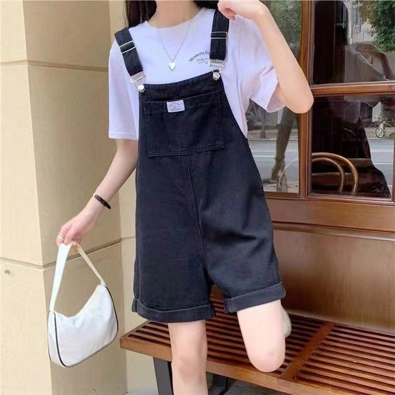 여학생을위한 작업복 한국 스타일 느슨한 2025 새로운 연령 감소 슬리밍 인터넷 연예인 캐주얼 와이드 레그 데님 반바지 여성 여름스토어 가기