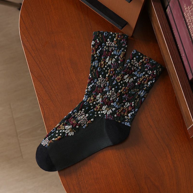 3 차원 꽃 양말 여자의 인스 타 그램 유행 가을 중간 길이 양말 한국 빈티지 에스닉 모리 스타일 봄과 가을 더미 스타킹스토어 가기
