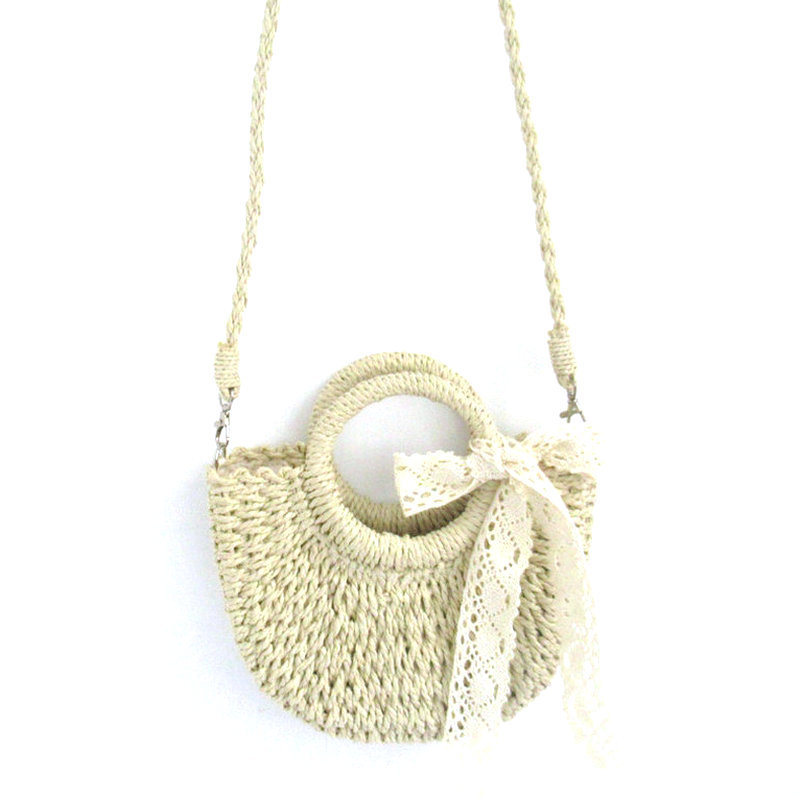 새로운 여름 밀짚 짠 가방 가방 반라운드 배낭 레이스 활 문 가방 비치 백 크로스 바디 백 여성용 가방스토어 가기