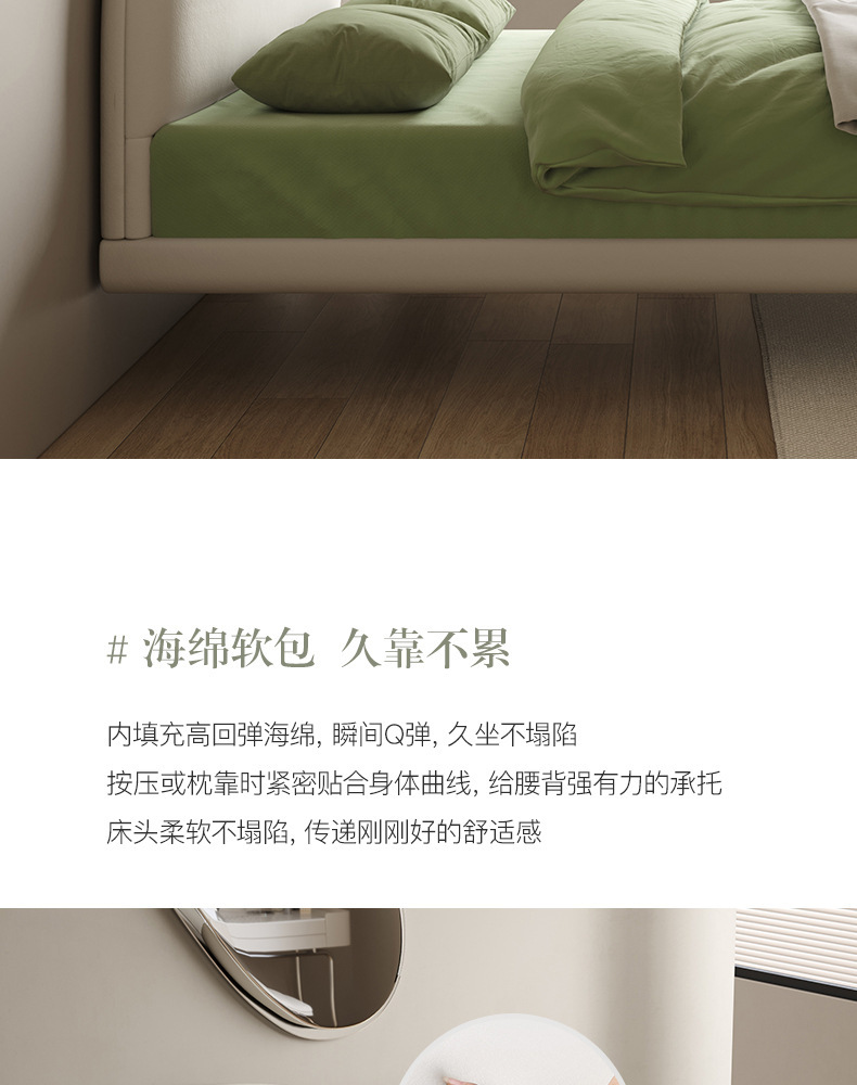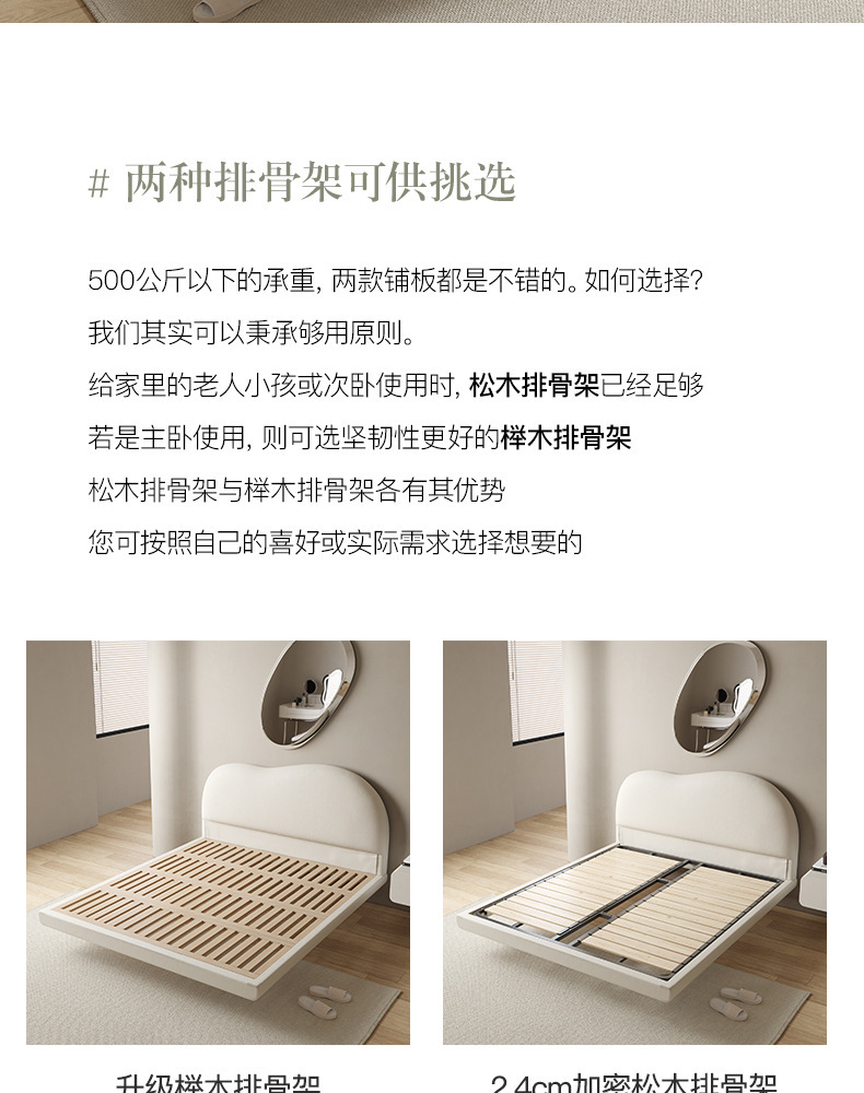• [2.4cm 암호화 소나무 갈비 뼈대] 램프 헤드 레이어 소가죽 싱글 침대 없음