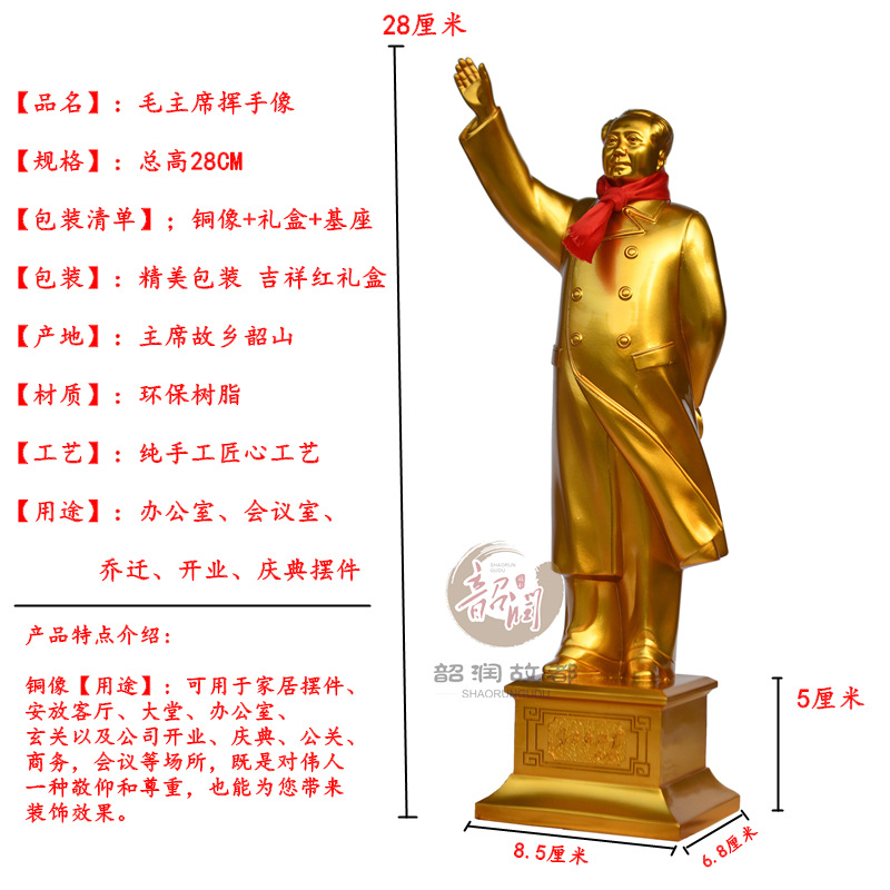 회장 마오 동상 수지 흔들며 동상 전기 도금 황금 입상 할아버지 마오 동상 흔들며 석고 동상 연구 장식 조각스토어 가기