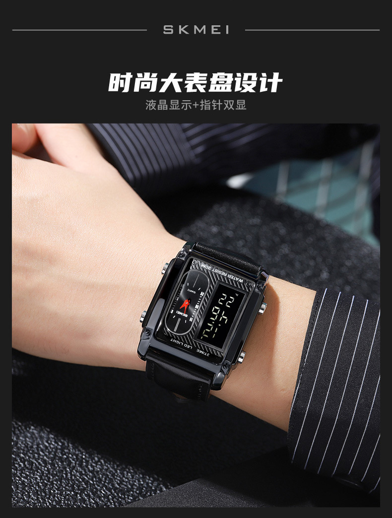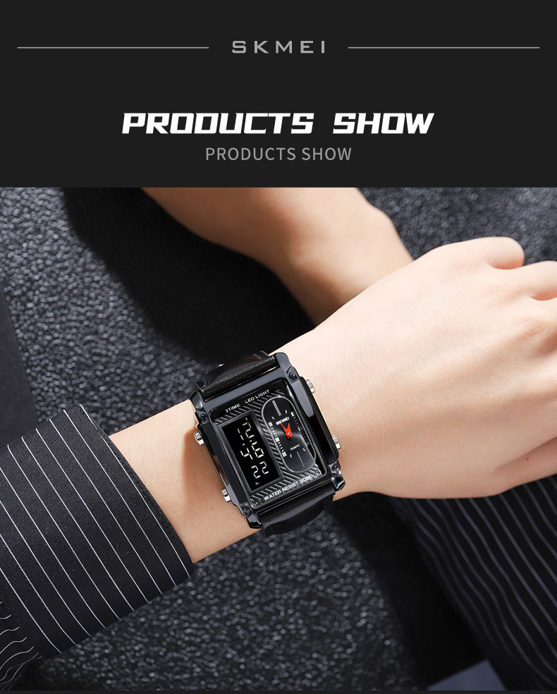 국경 간 뜨거운 판매 시간표 미국 시계 사각 듀얼 디스플레이 다기능 전자 시계 패션 남성용 벨트 스틸 밴드 손목 시계스토어 가기