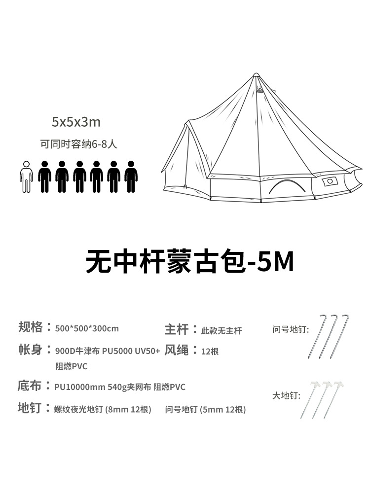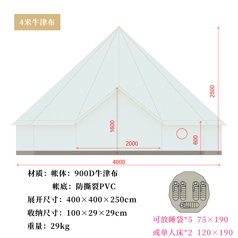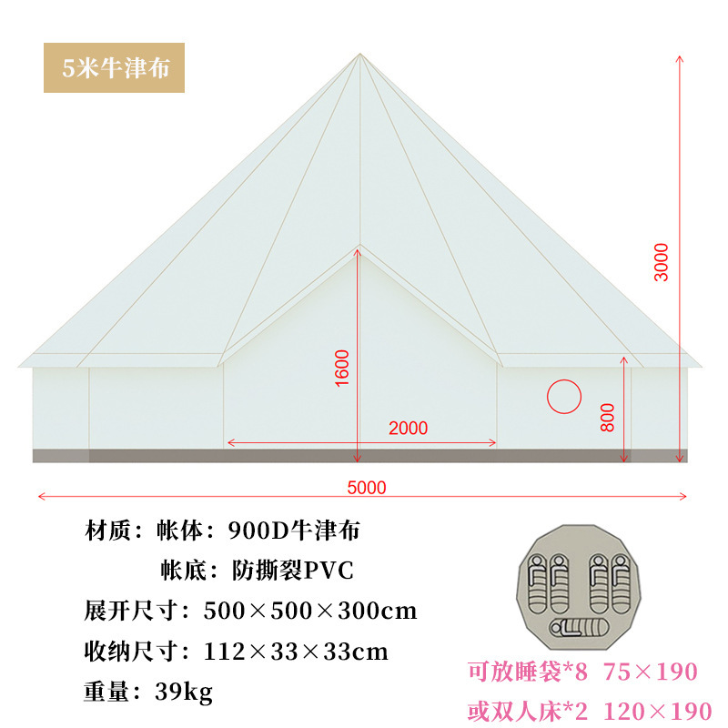 • 5*5*3m 옥스포드 천 (중간 막대 없음)