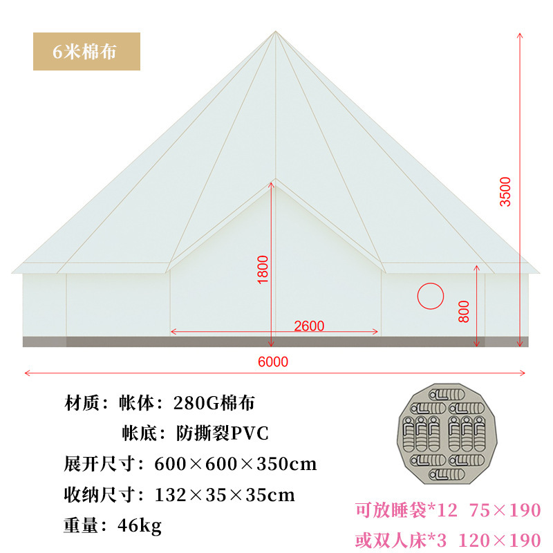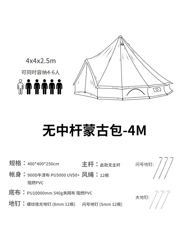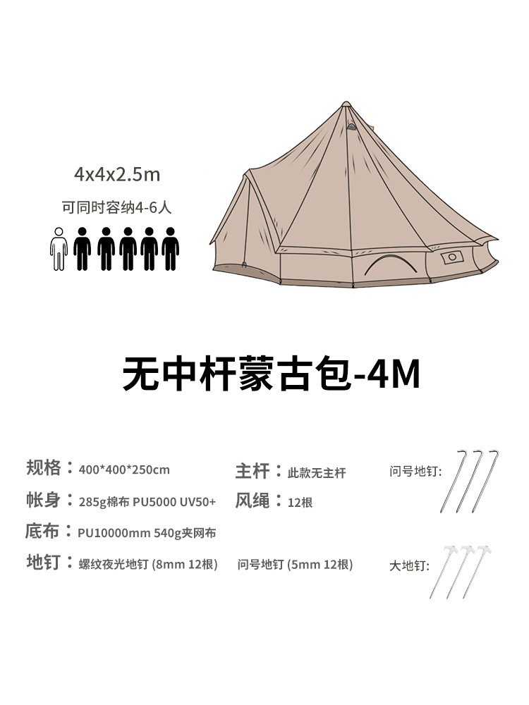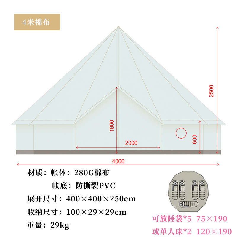 • 4*4*2.5m 면직물 (중간 막대 없음)