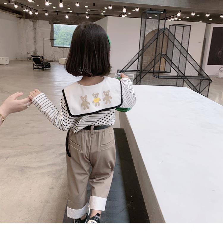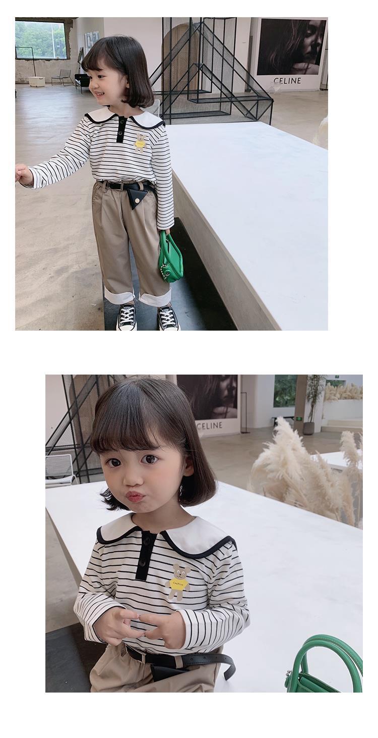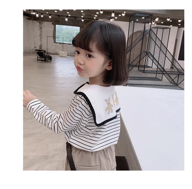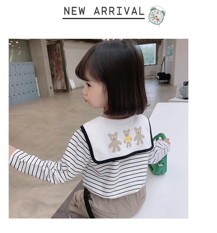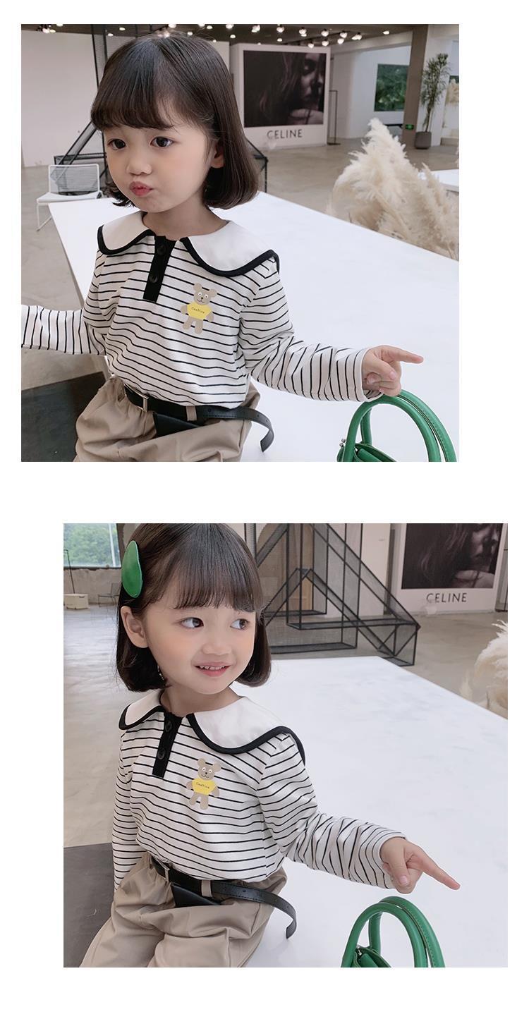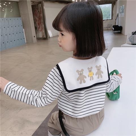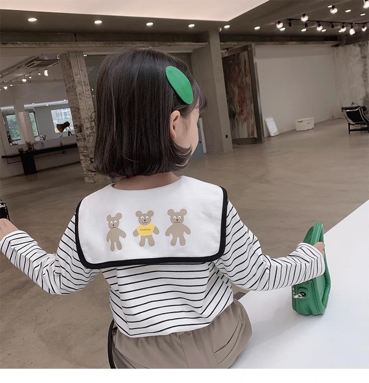 여아 스트라이프 탑 2025 봄, 가을 새로운 한국 스타일 아동 만화 인형 셔츠 아기 바닥 셔츠 긴팔 티셔츠스토어 가기