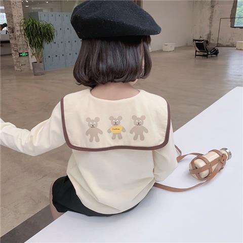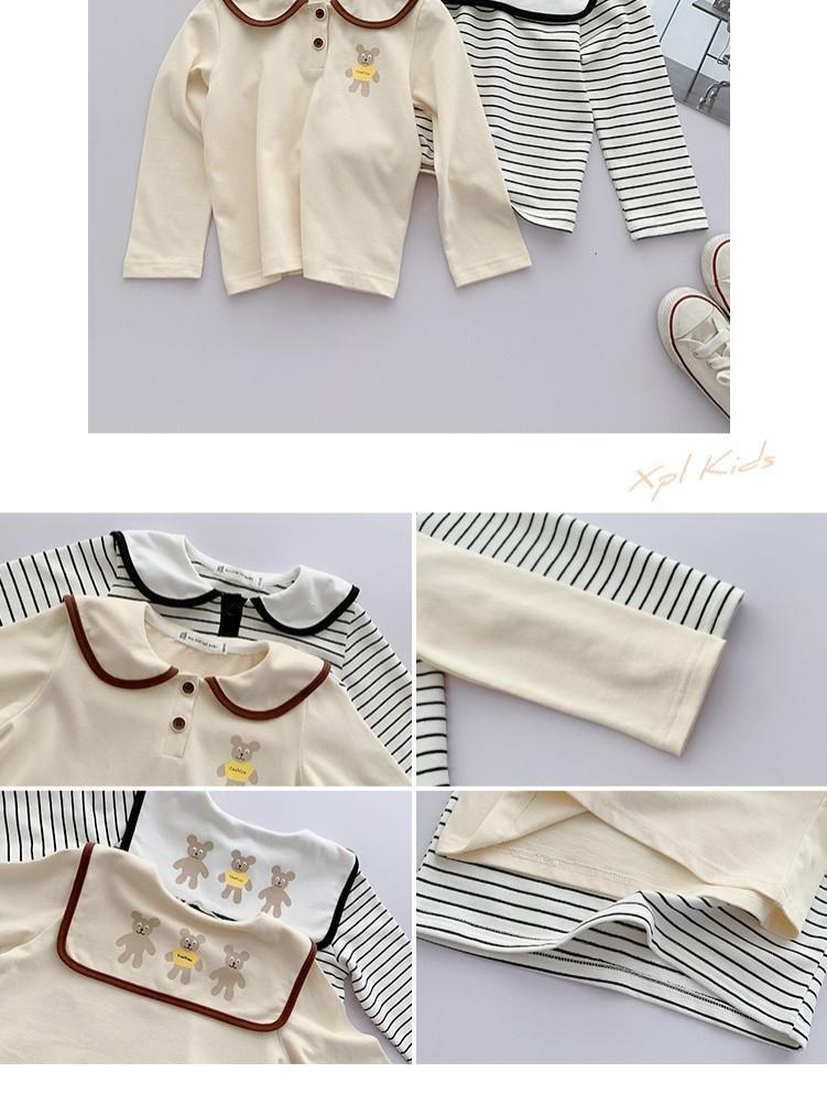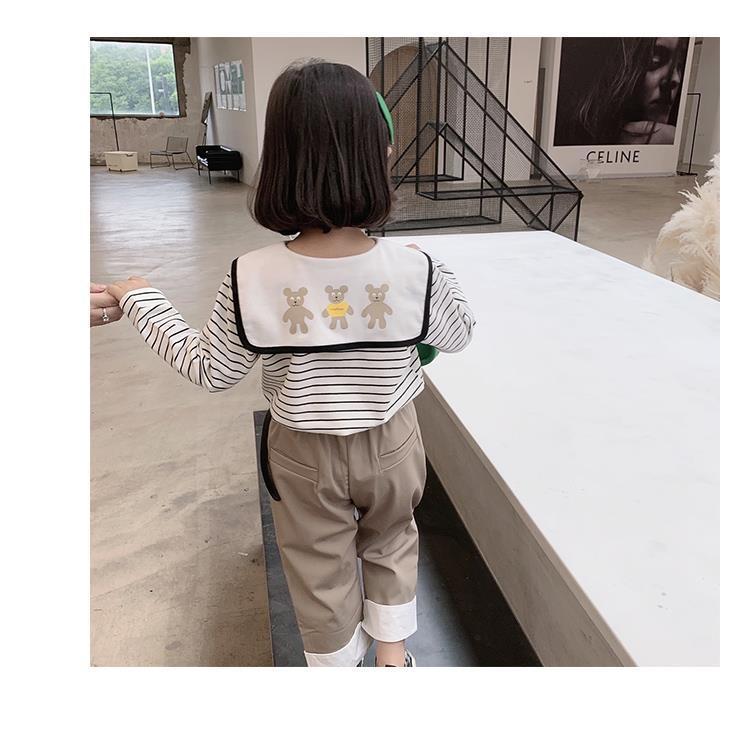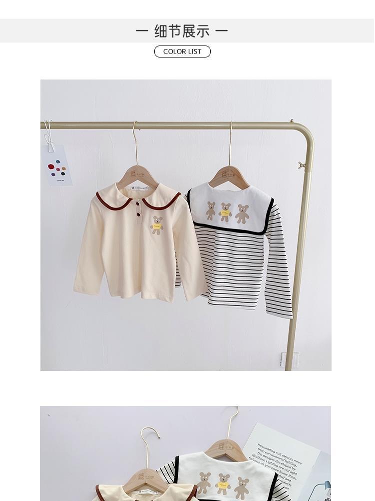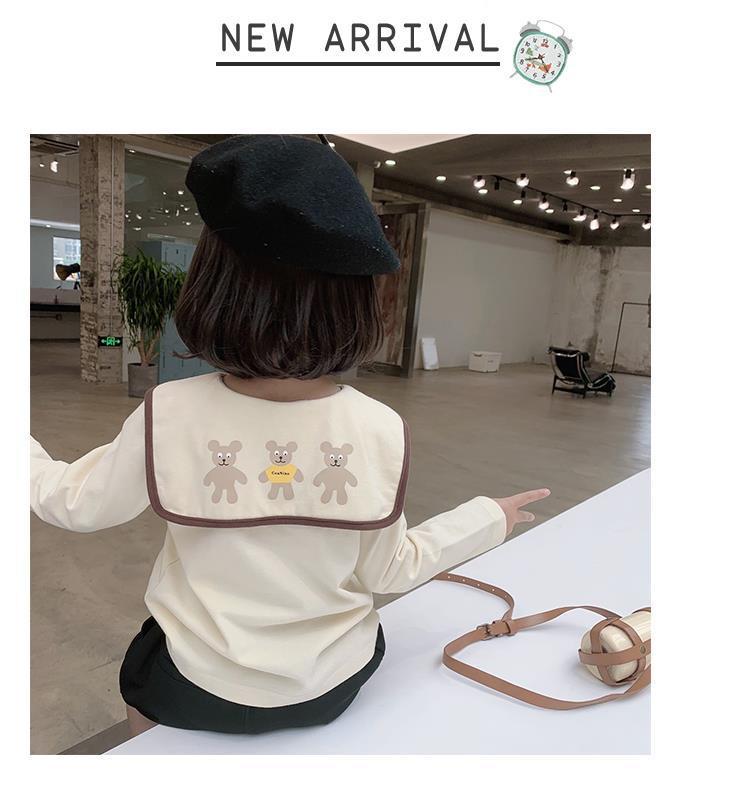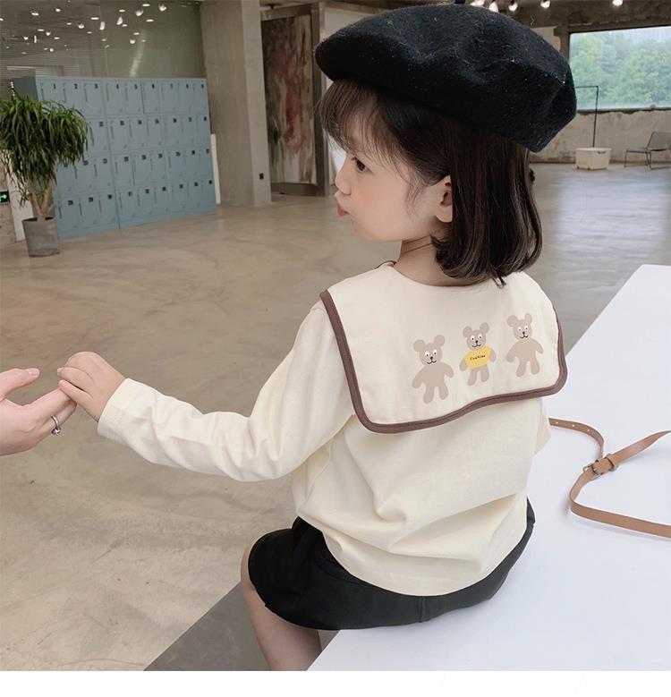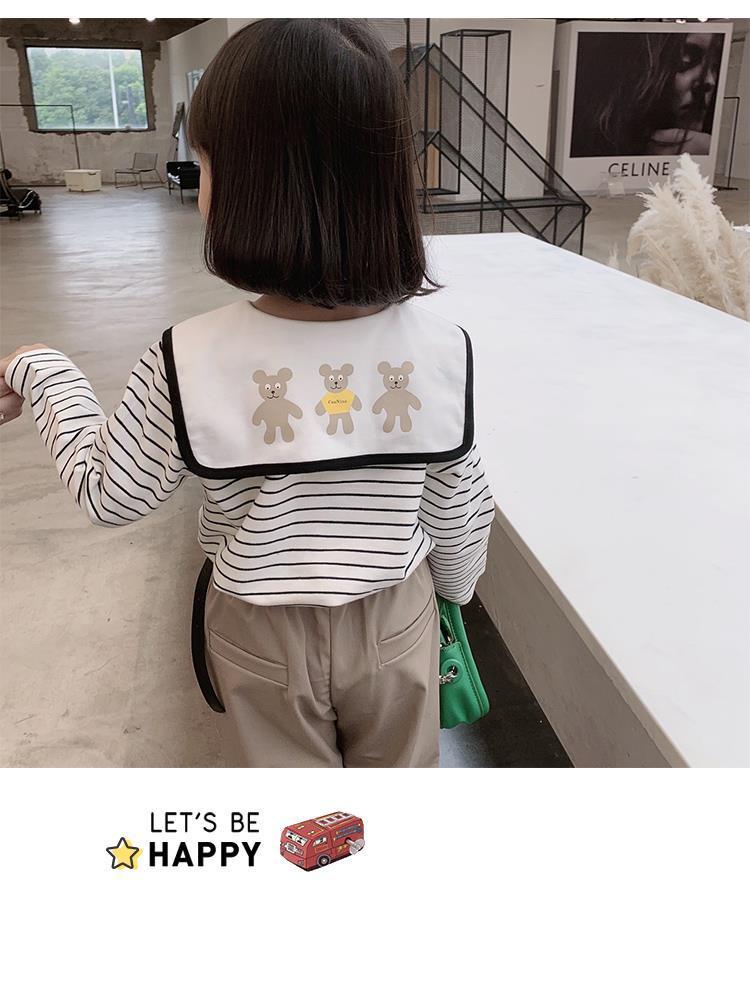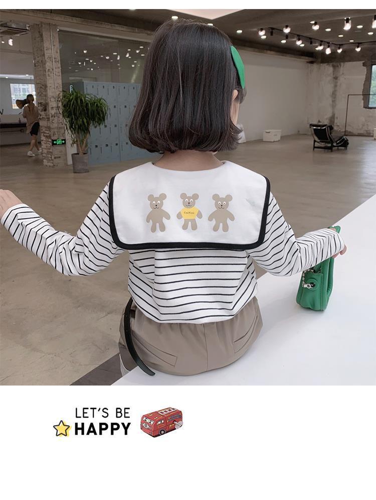 여아 스트라이프 탑 2025 봄, 가을 새로운 한국 스타일 아동 만화 인형 셔츠 아기 바닥 셔츠 긴팔 티셔츠스토어 가기