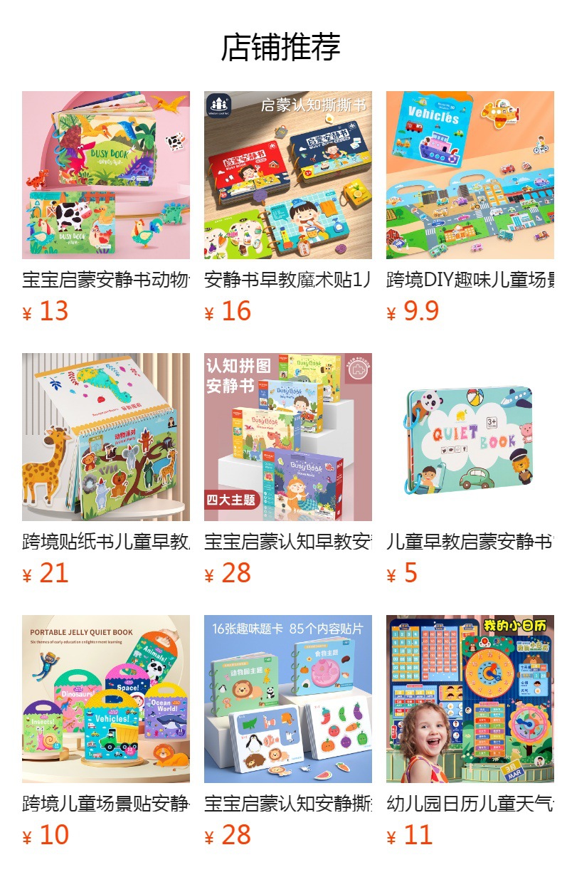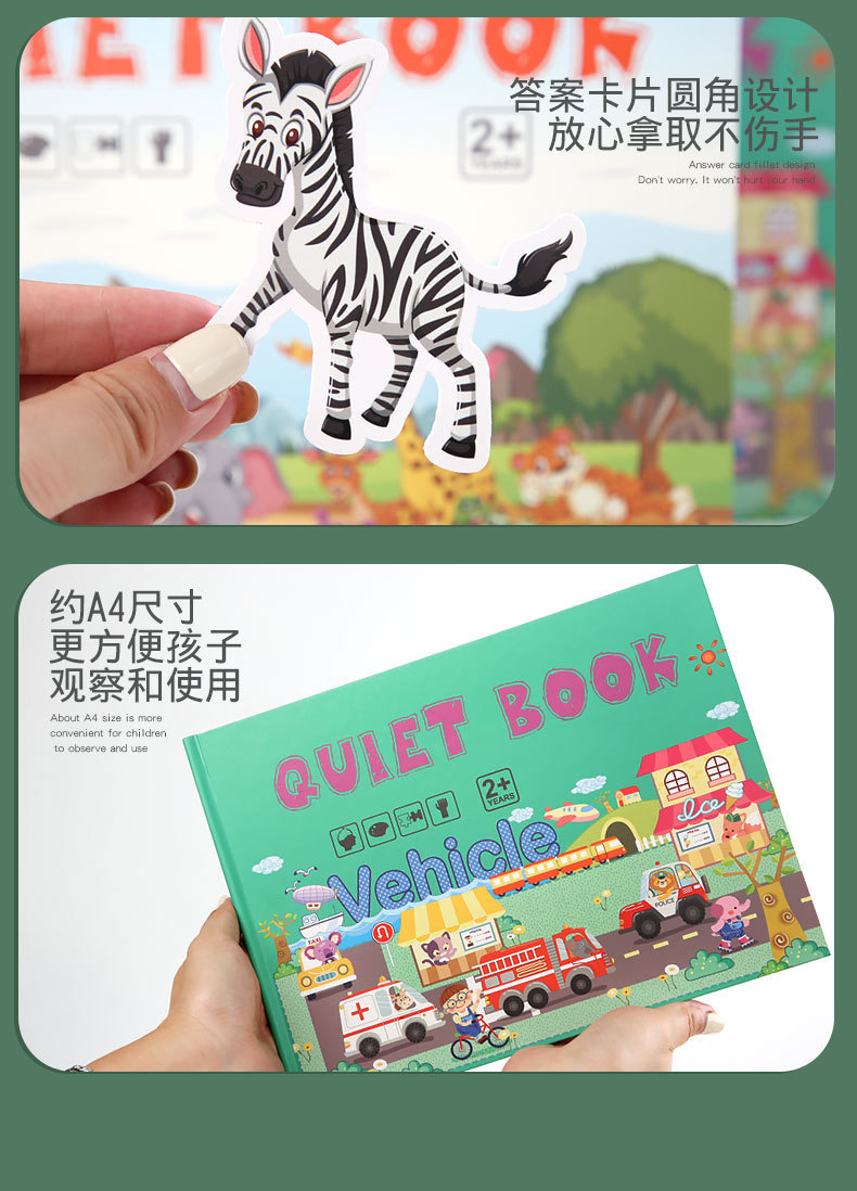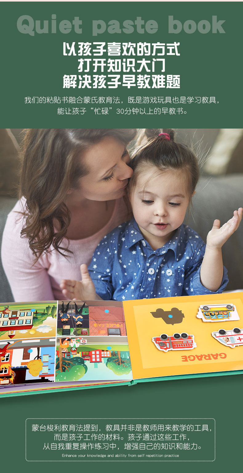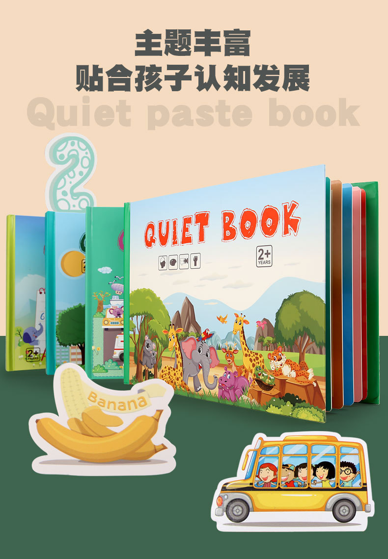 书本式安静粘贴书共10款,每款5页配带魔术贴,小号安静粘贴书2款,具体产品规格及箱规如下: