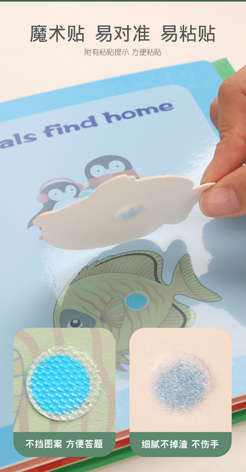 温馨提醒:魔术贴透明面是贴书本上的,白色面是贴贴纸上的,不要贴错哦,不然数量不够哦!!