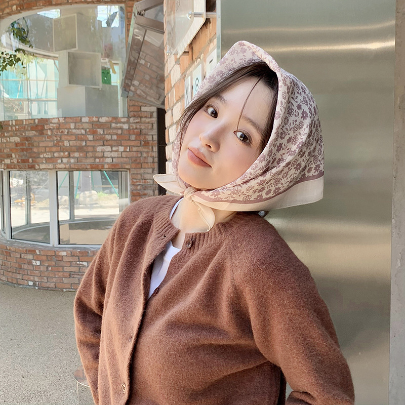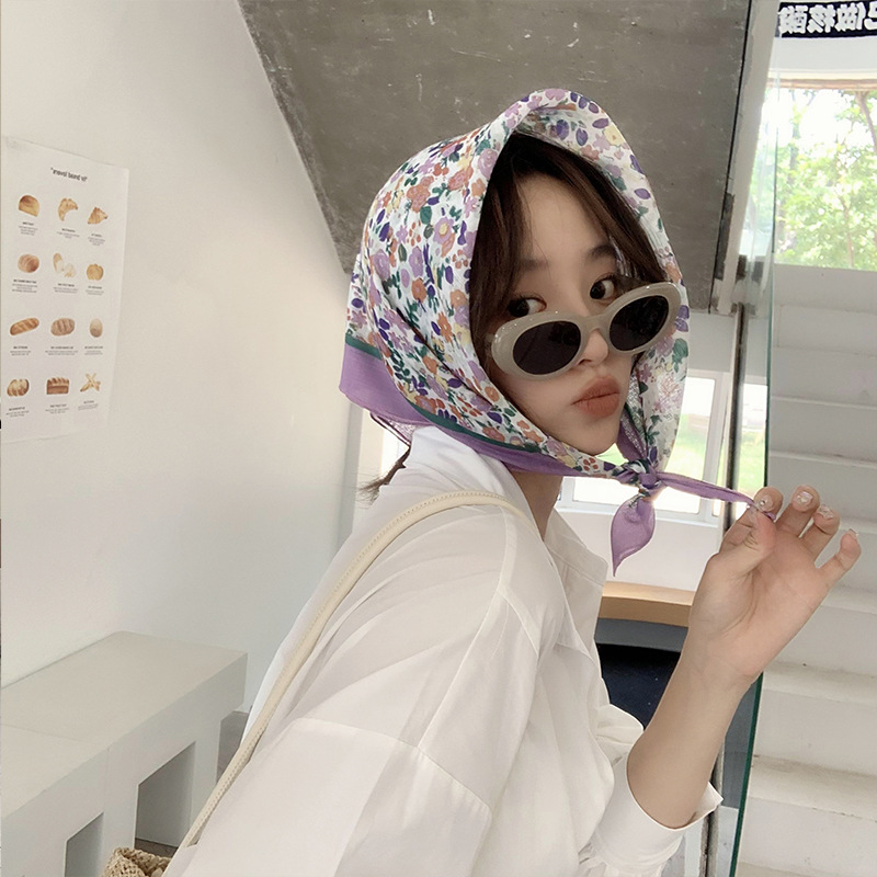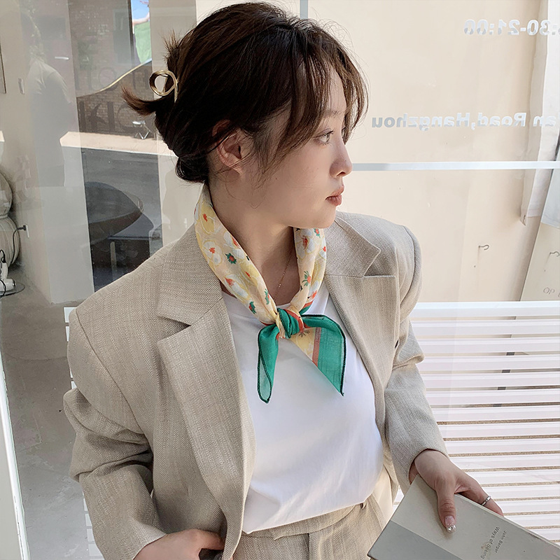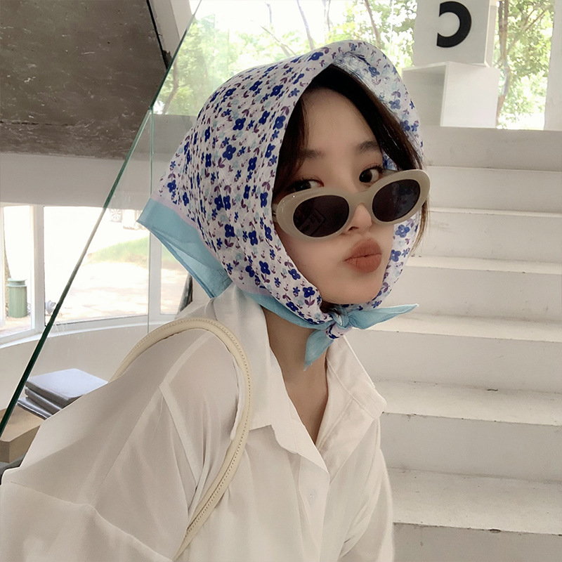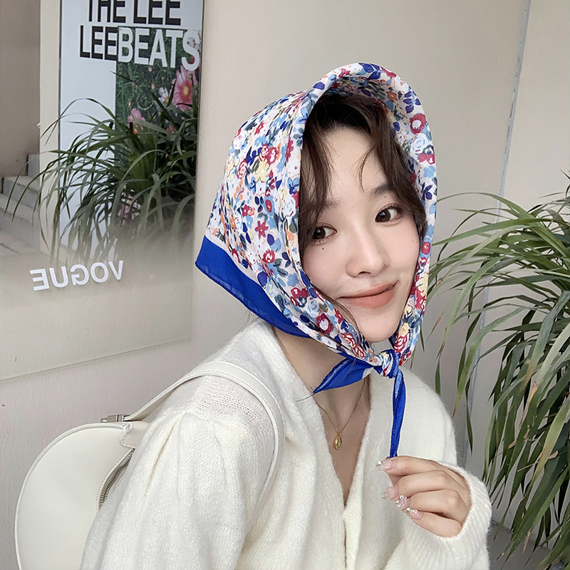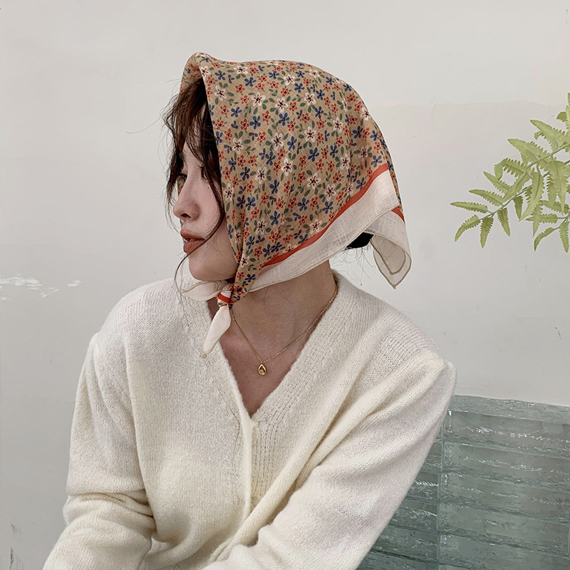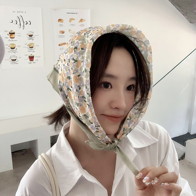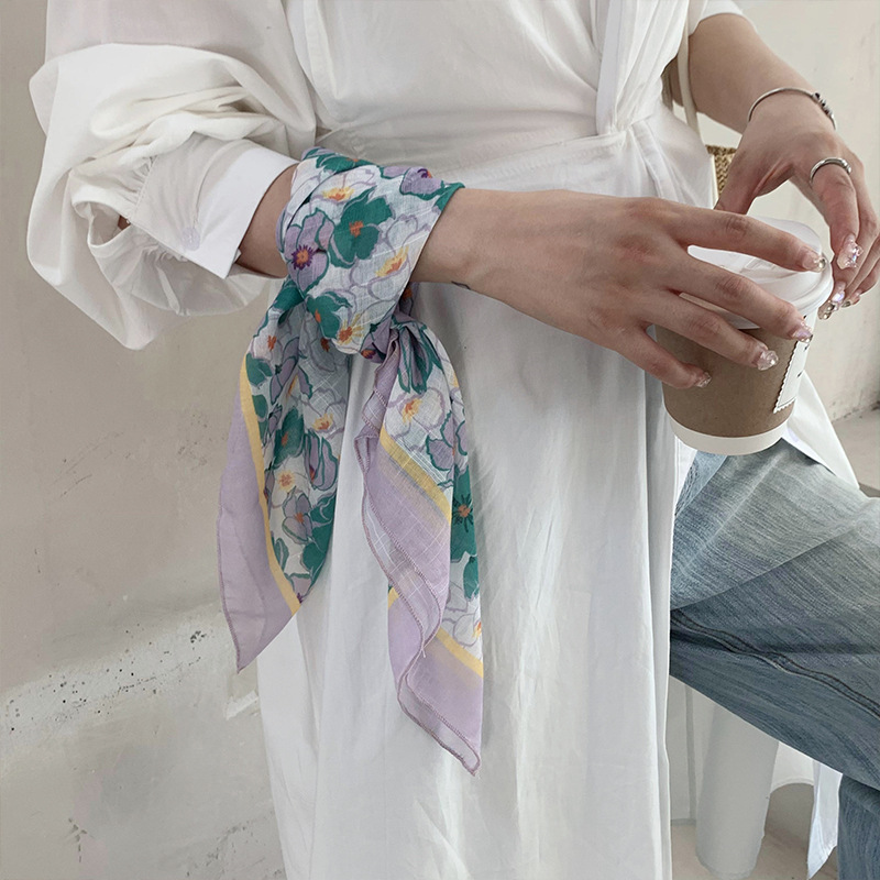 2022 여름과 가을 작은 신선한 꽃 58cm 사각면과 린넨 작은 실크 스카프 얇은 머리 랩 스카프 목 스카프스토어 가기