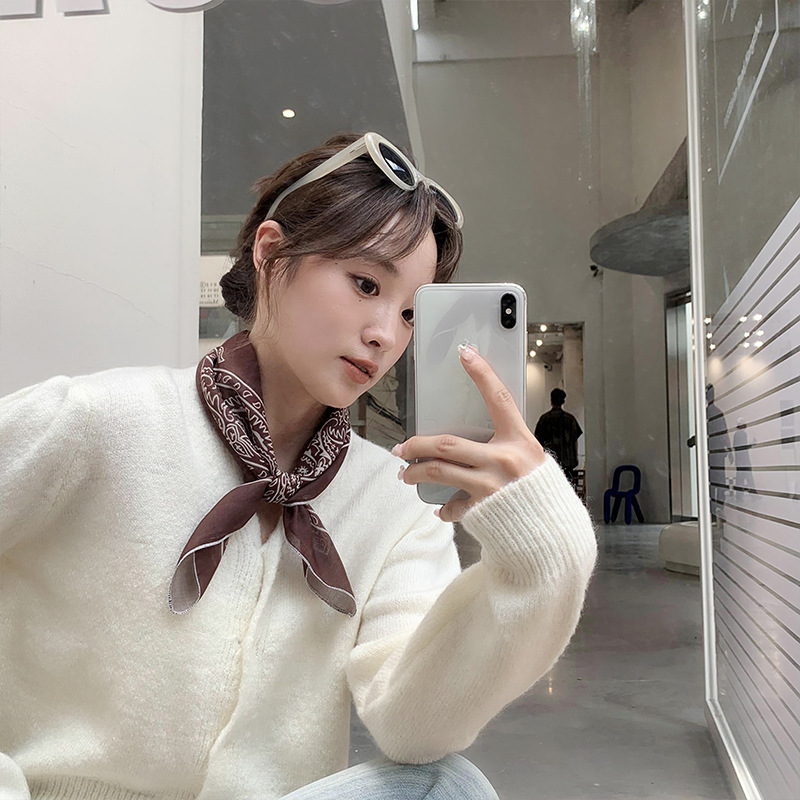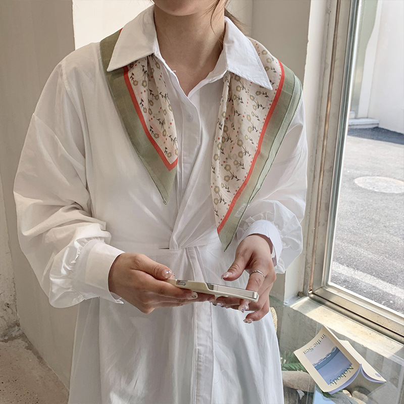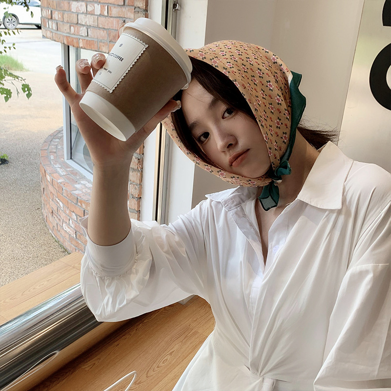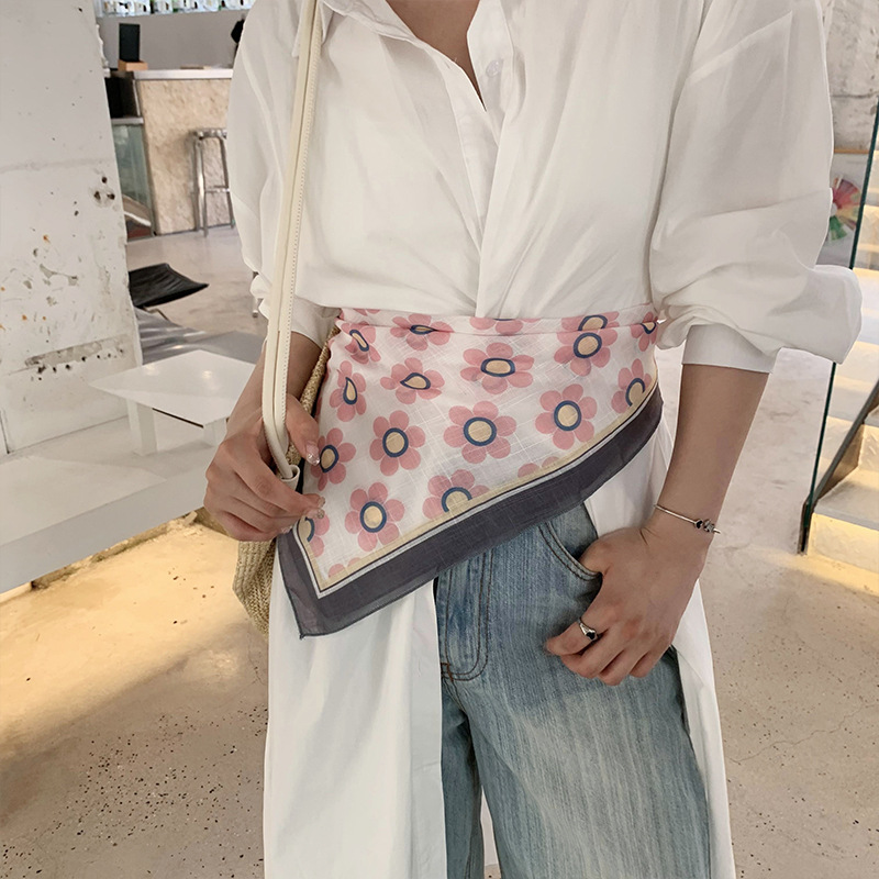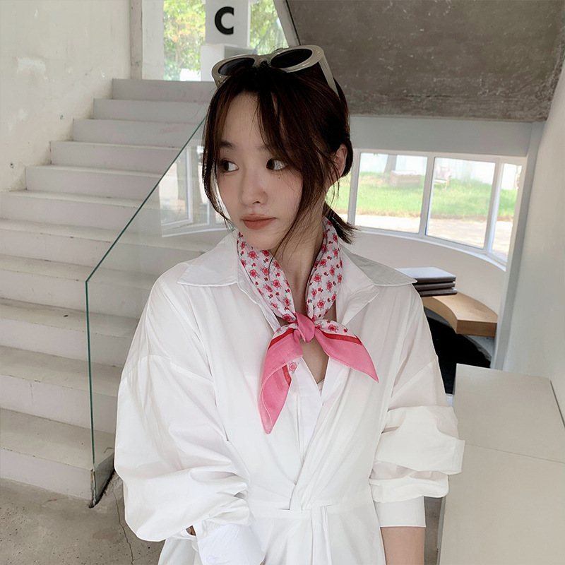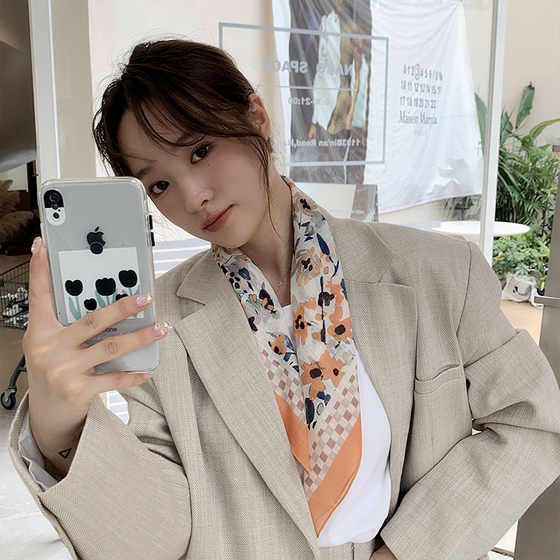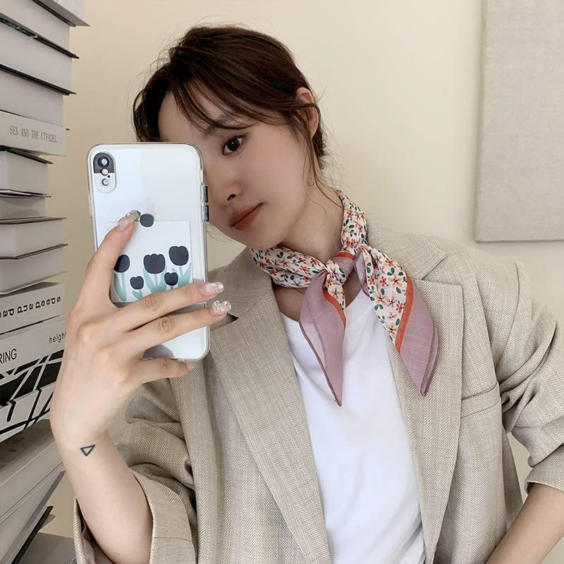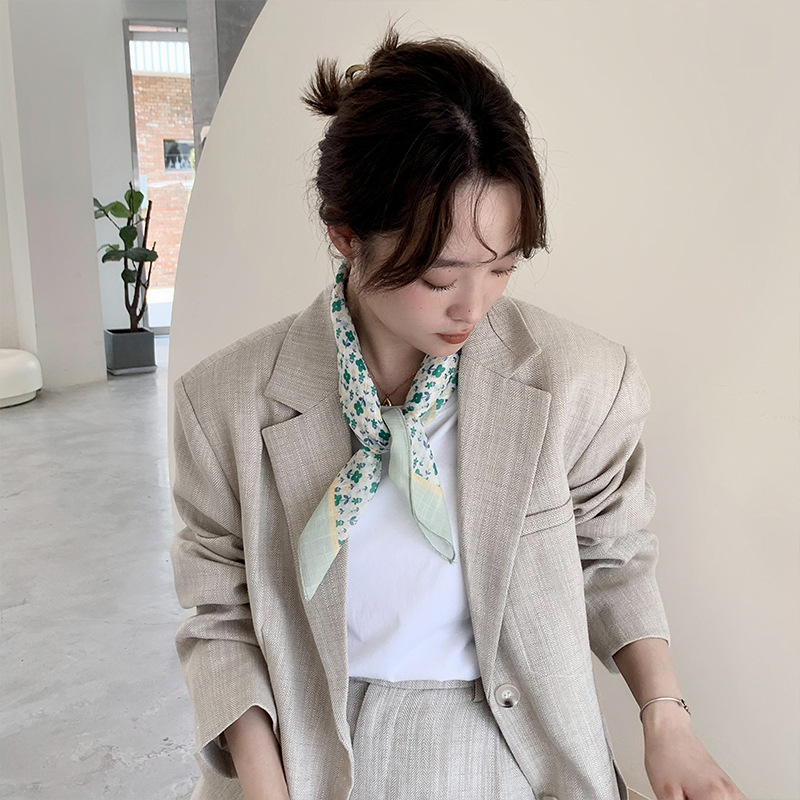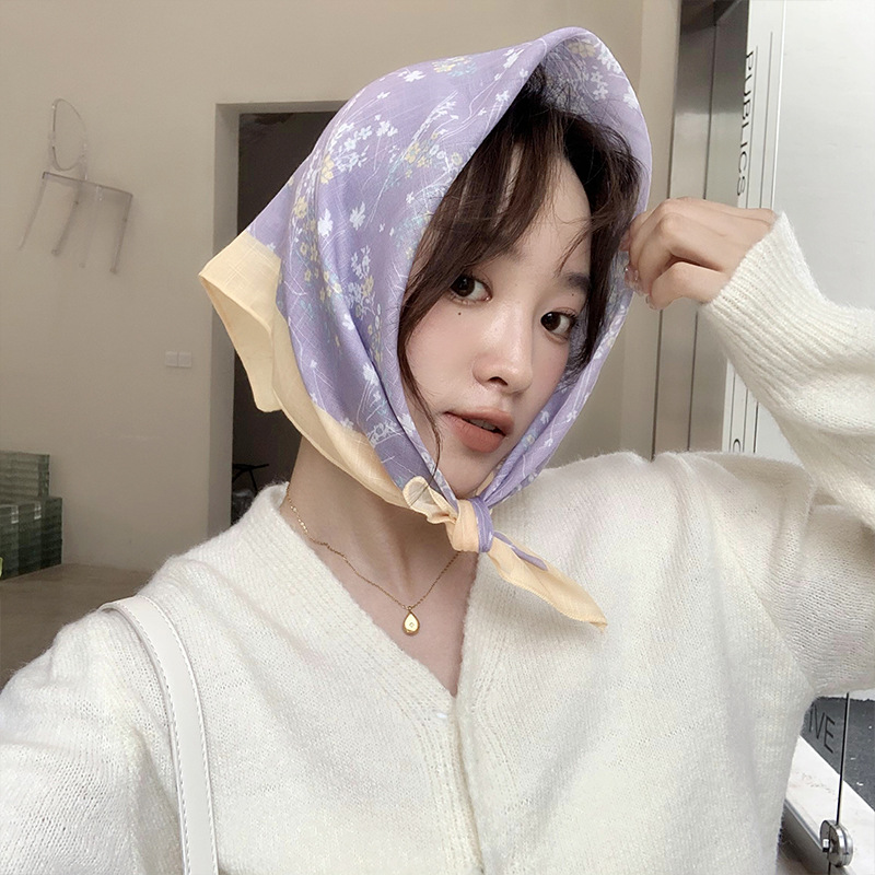 2022 여름과 가을 작은 신선한 꽃 58cm 사각면과 린넨 작은 실크 스카프 얇은 머리 랩 스카프 목 스카프스토어 가기