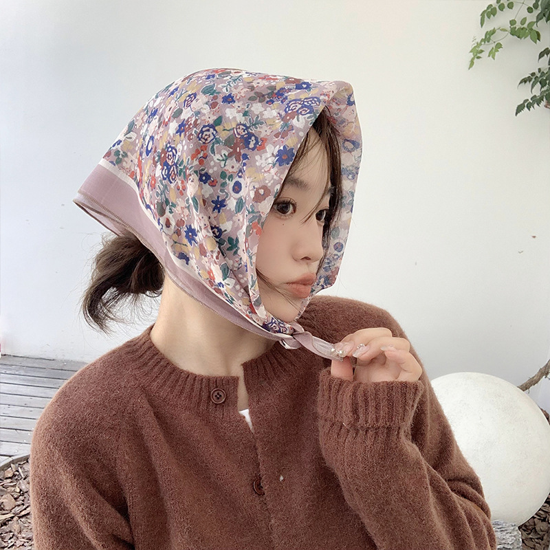 2022 여름과 가을 작은 신선한 꽃 58cm 사각면과 린넨 작은 실크 스카프 얇은 머리 랩 스카프 목 스카프