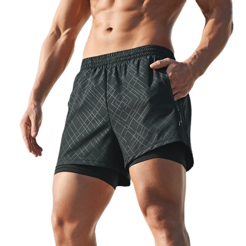스포츠 반바지 여름 남성용 속건 야외 레저 러닝 피트니스 내부 인치 더블 레이어 농구 반바지와 4 점 반바지