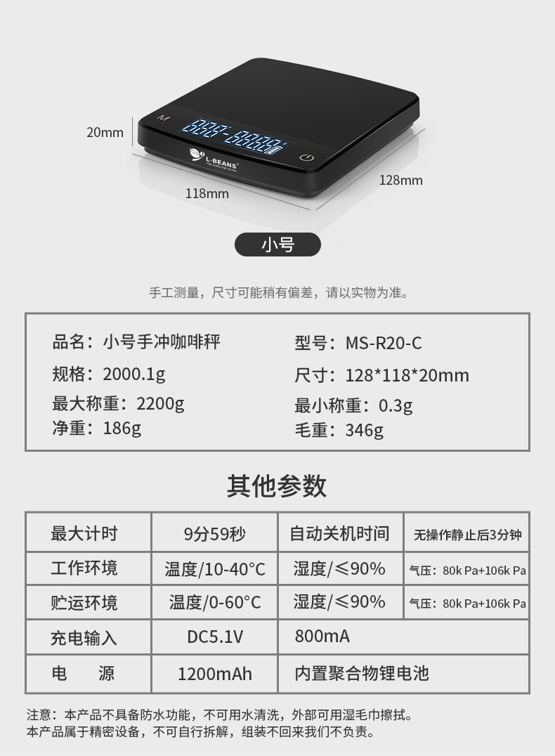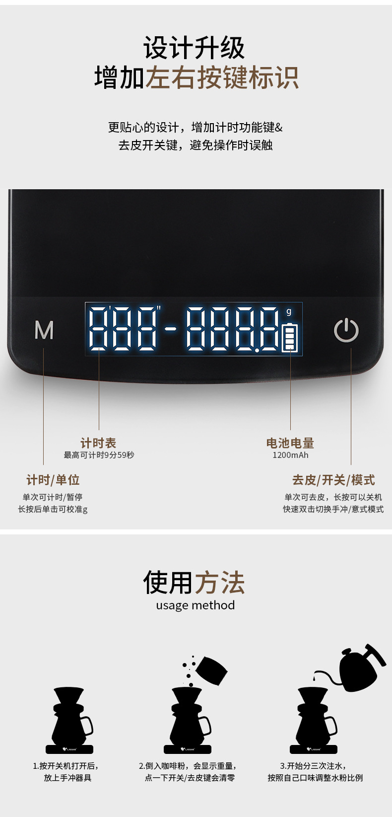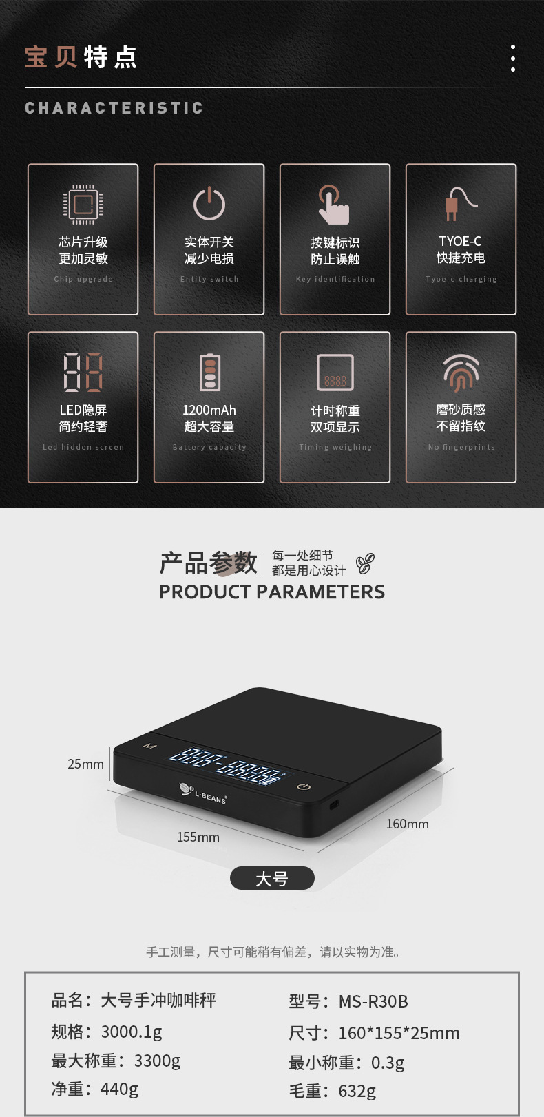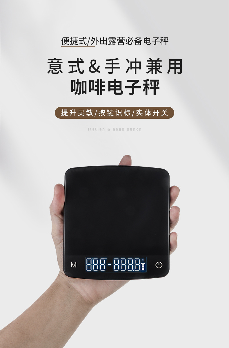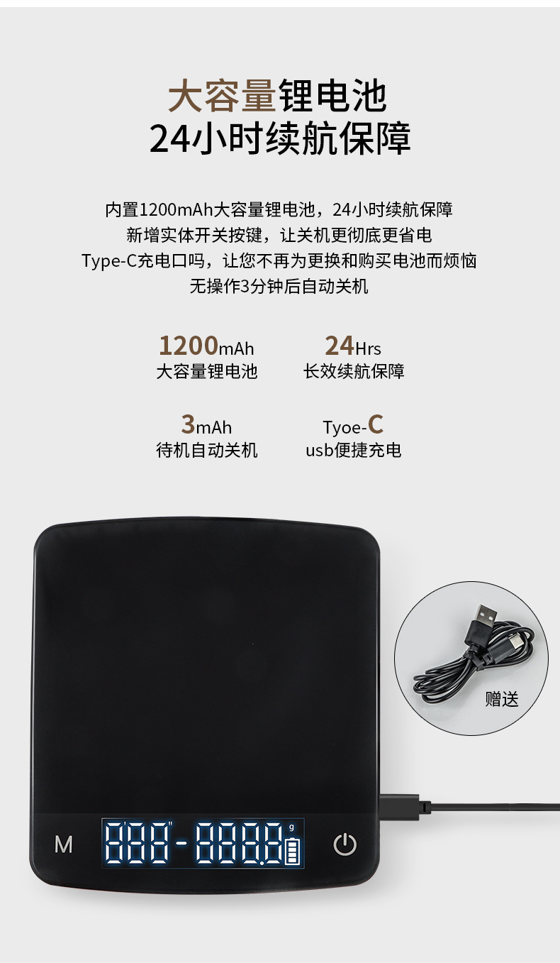 이탈리아 핸드 커피 전자 스케일 타이밍 충전식 led 터치 스크린 단열 패드 3kg 전문 주방 전자 스케일
