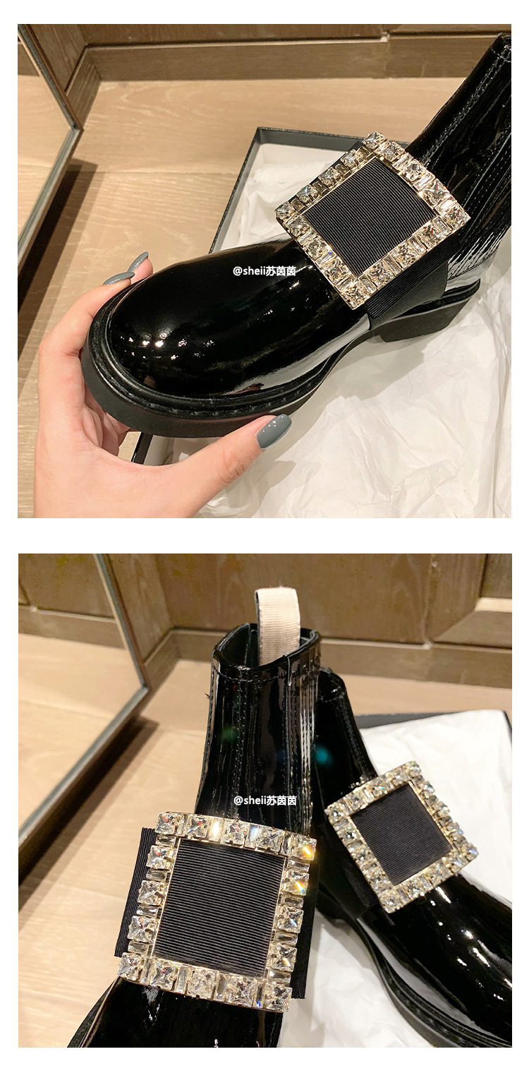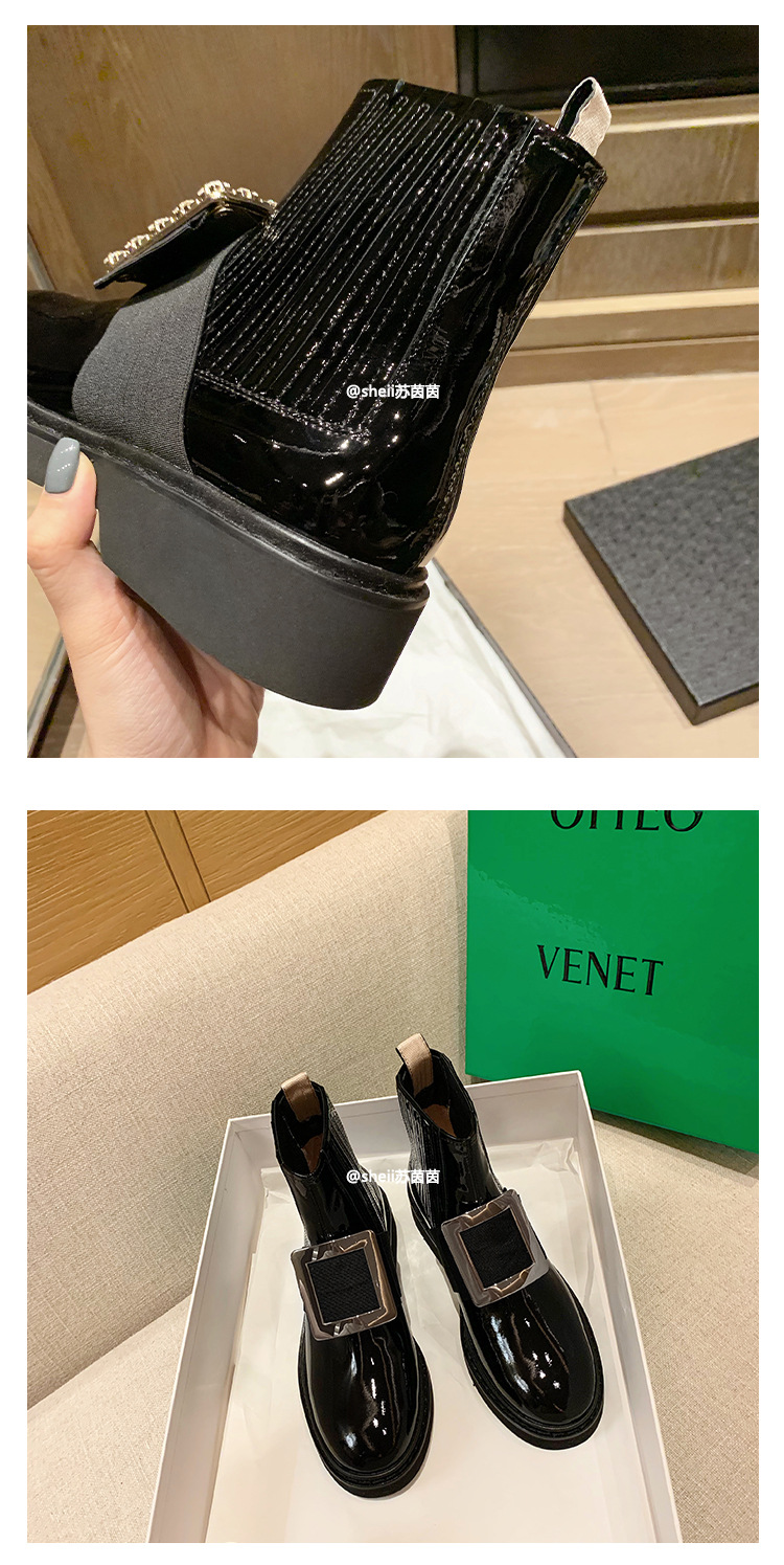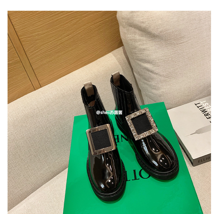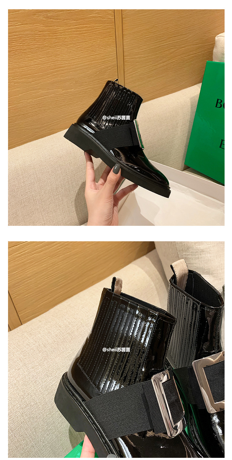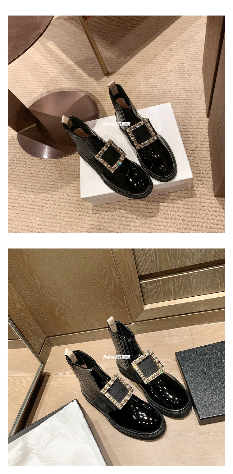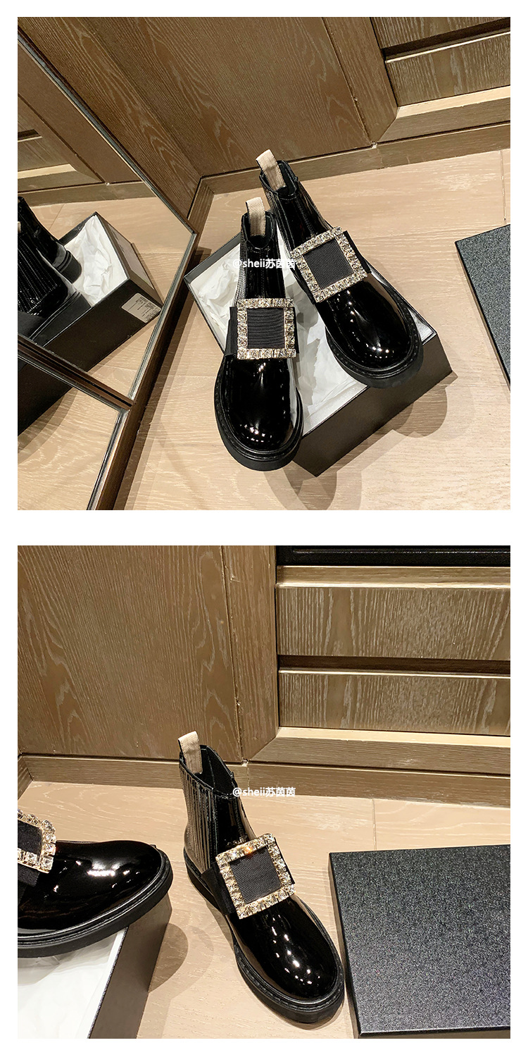 유행하는 마틴 부츠, 오우양나나와 같은 스타일의 첼시 라운드 토, 큐빅 장식, 사각 버클, 바이커 숏부츠, 여성용 마틴 부츠스토어 가기