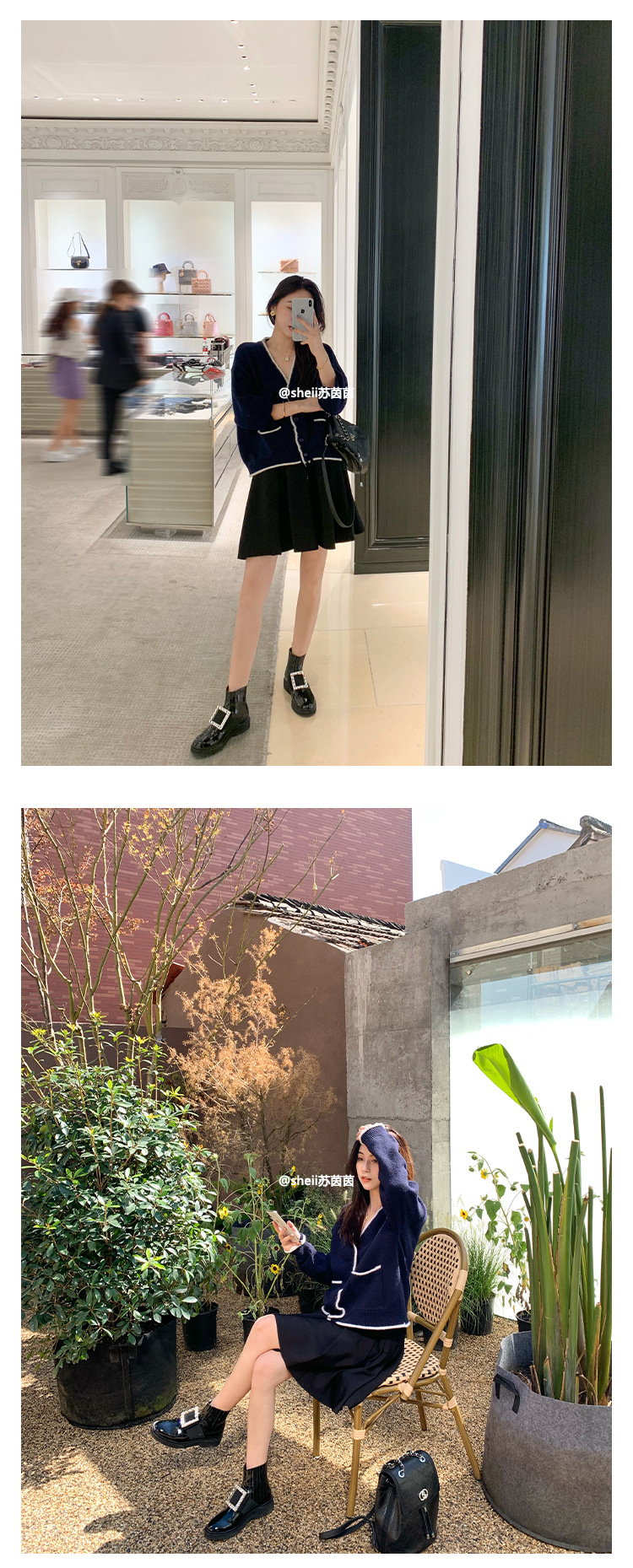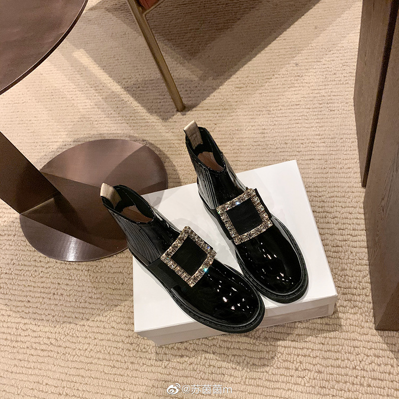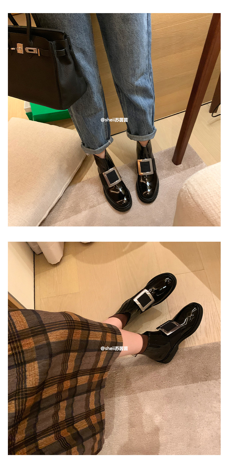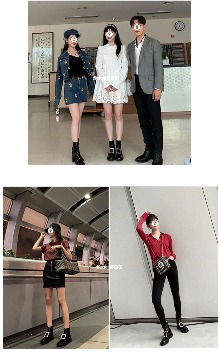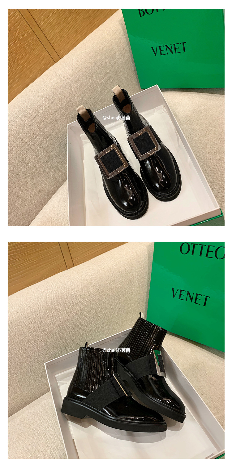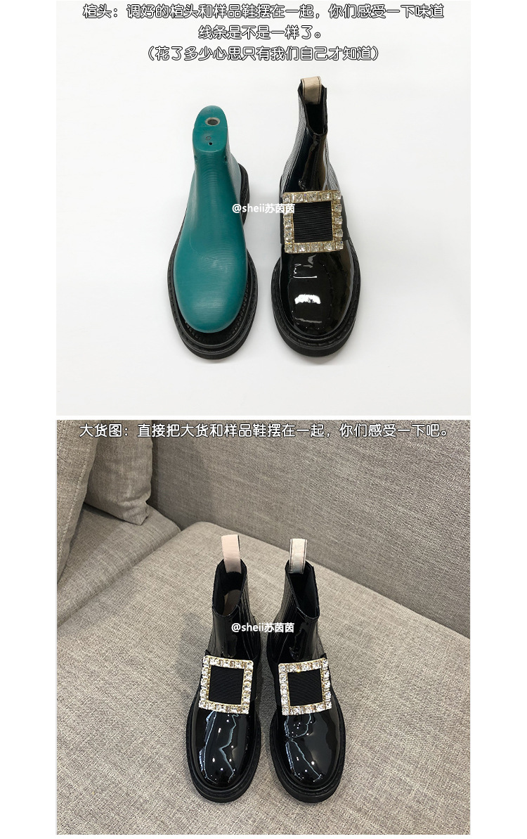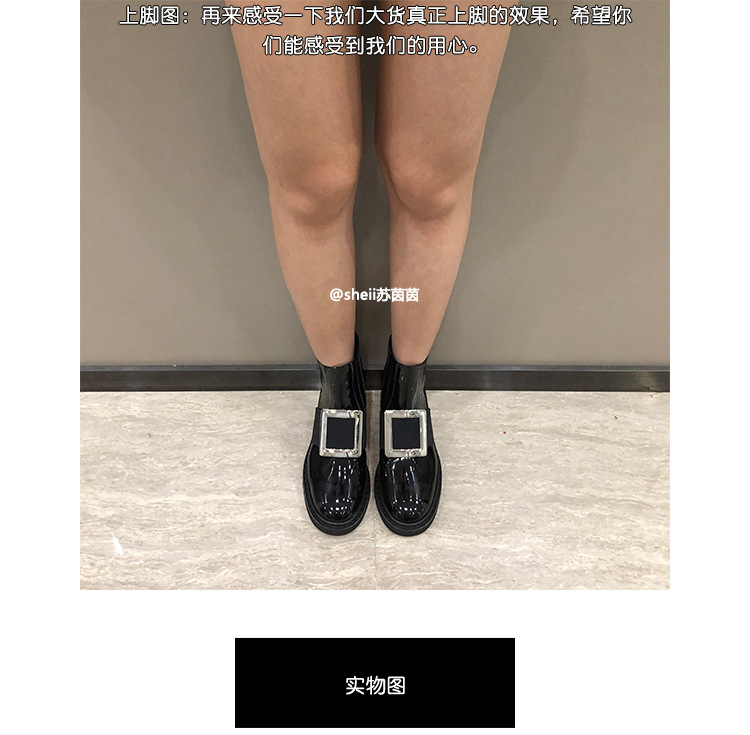 유행하는 마틴 부츠, 오우양나나와 같은 스타일의 첼시 라운드 토, 큐빅 장식, 사각 버클, 바이커 숏부츠, 여성용 마틴 부츠스토어 가기