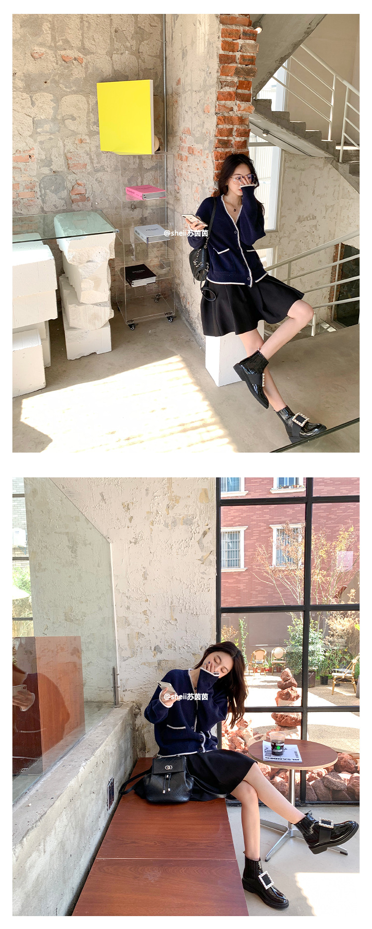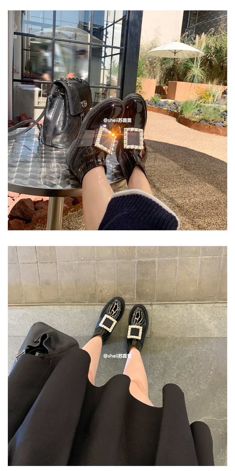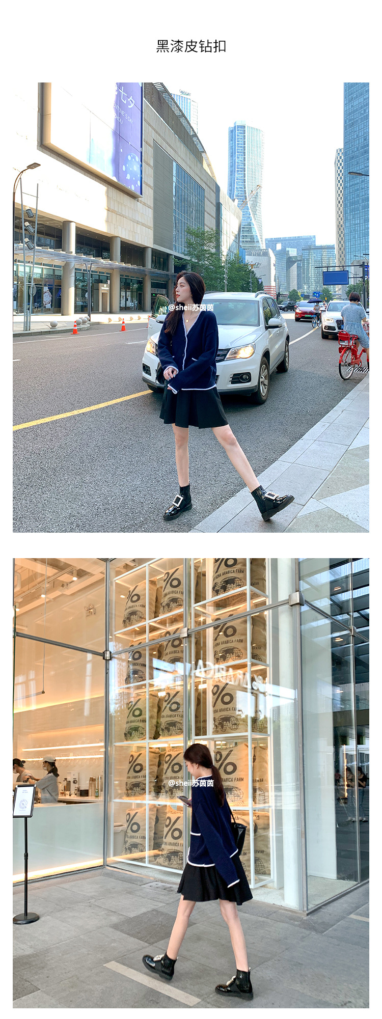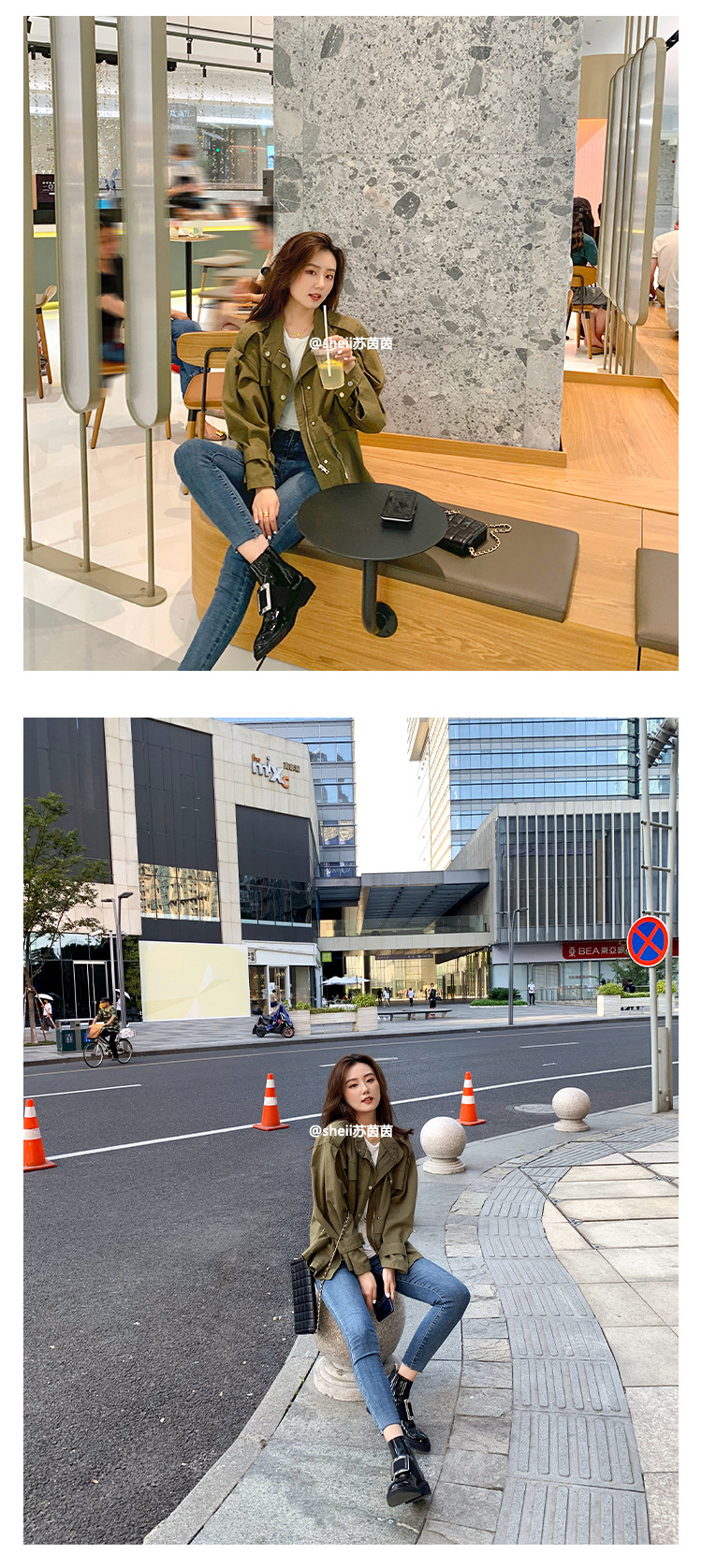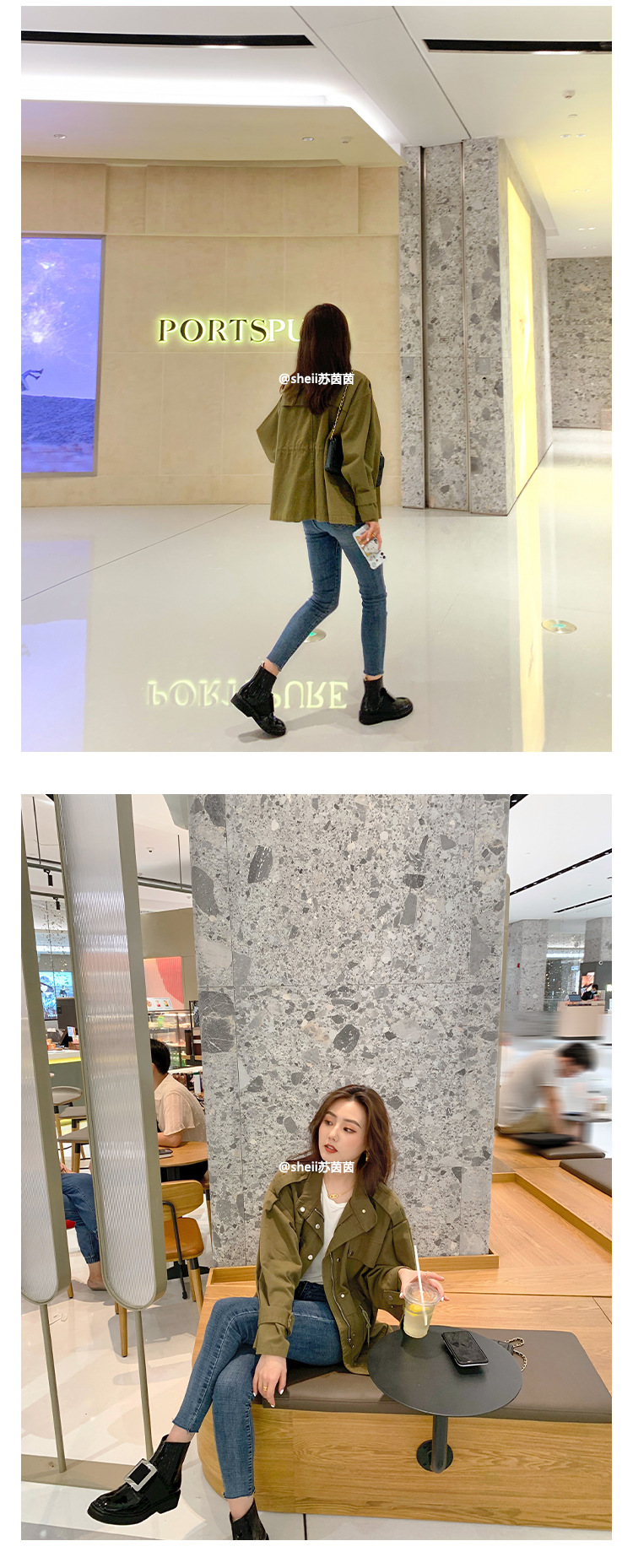 유행하는 마틴 부츠, 오우양나나와 같은 스타일의 첼시 라운드 토, 큐빅 장식, 사각 버클, 바이커 숏부츠, 여성용 마틴 부츠스토어 가기