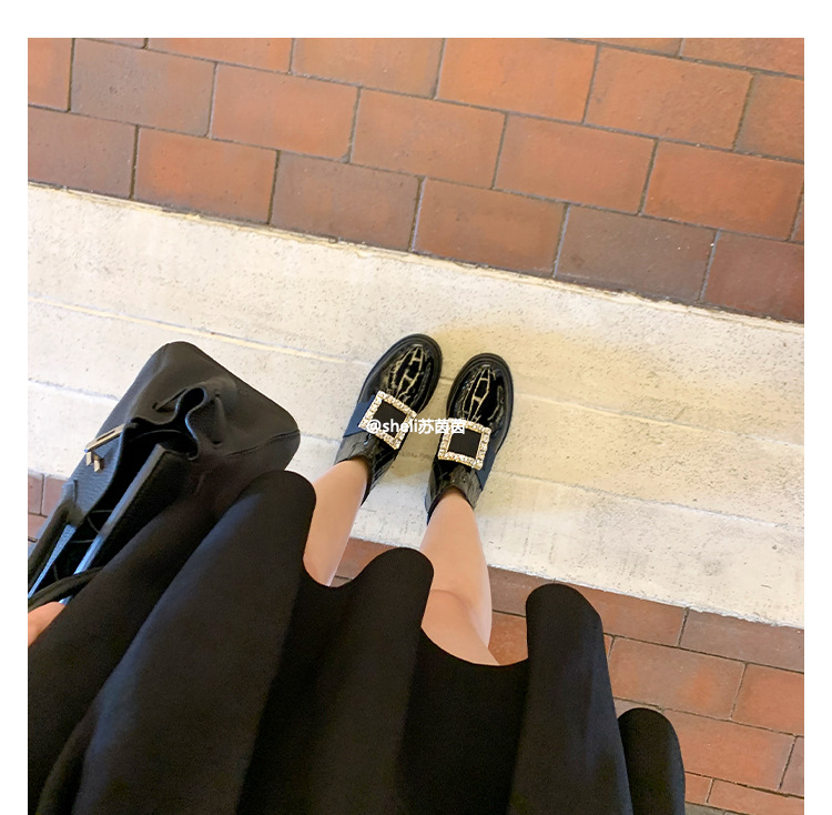 • 블랙 페이턴트 가죽 다이아몬드 버클 (벨벳)
