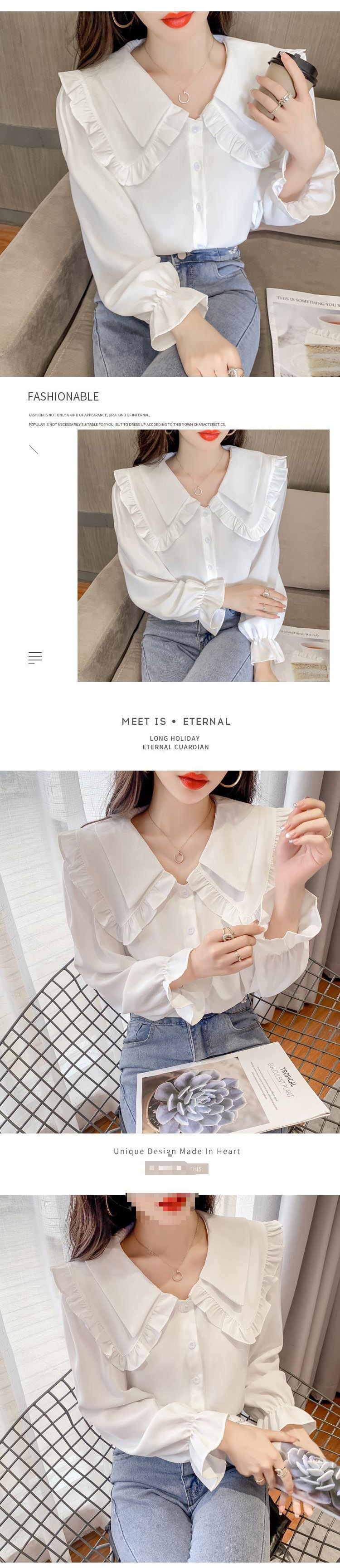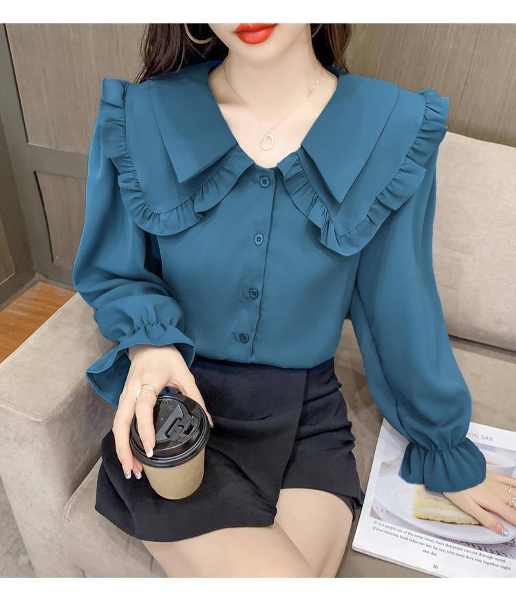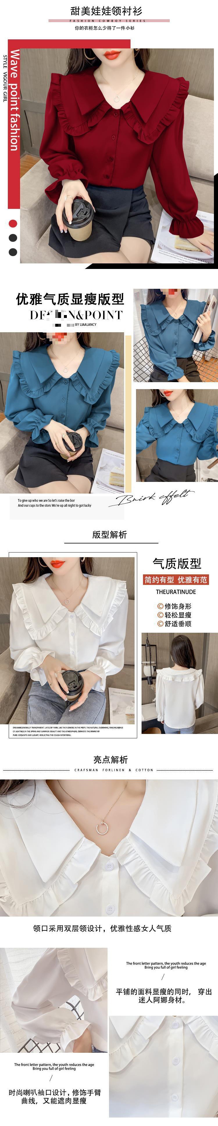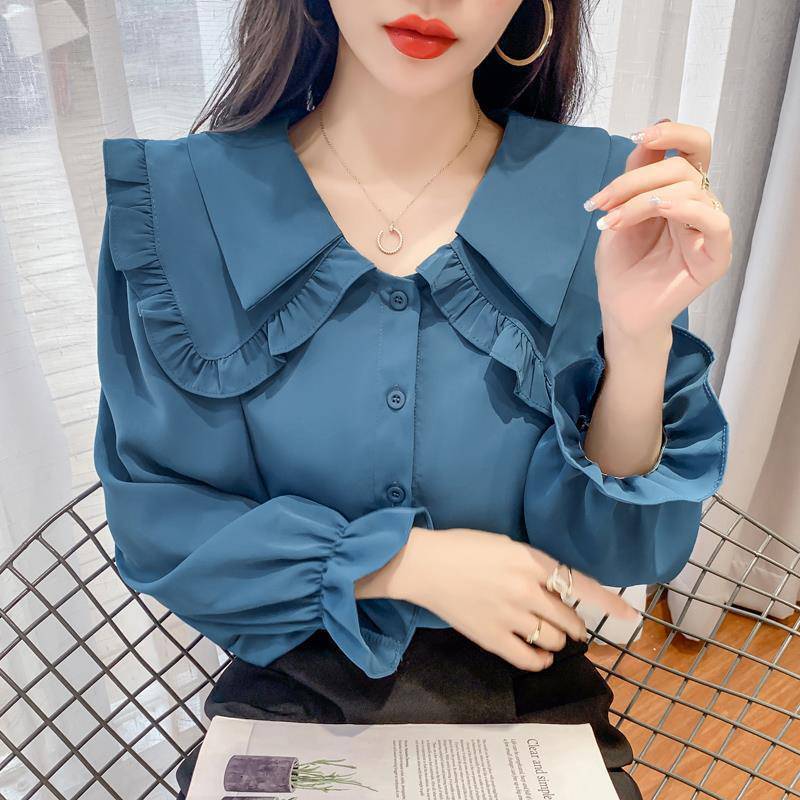 달콤한 인형 칼라 셔츠 여성의 디자인 감각 틈새 봄과 가을 새 셔츠 아름다운 패션 쉬폰 셔츠 긴 소매 탑