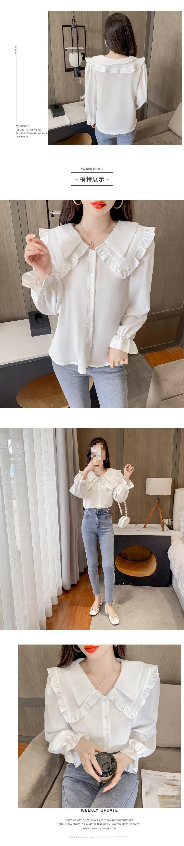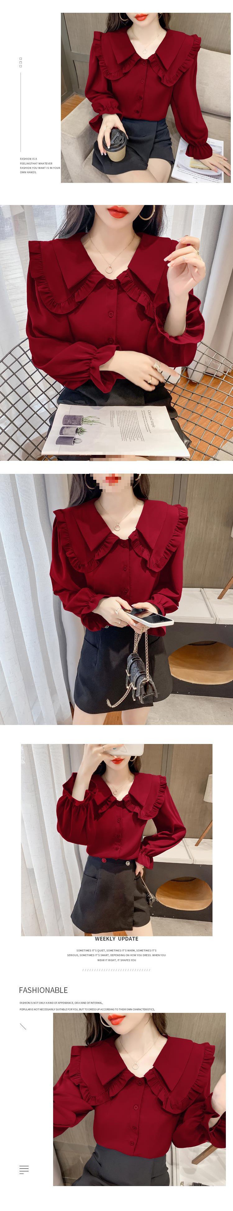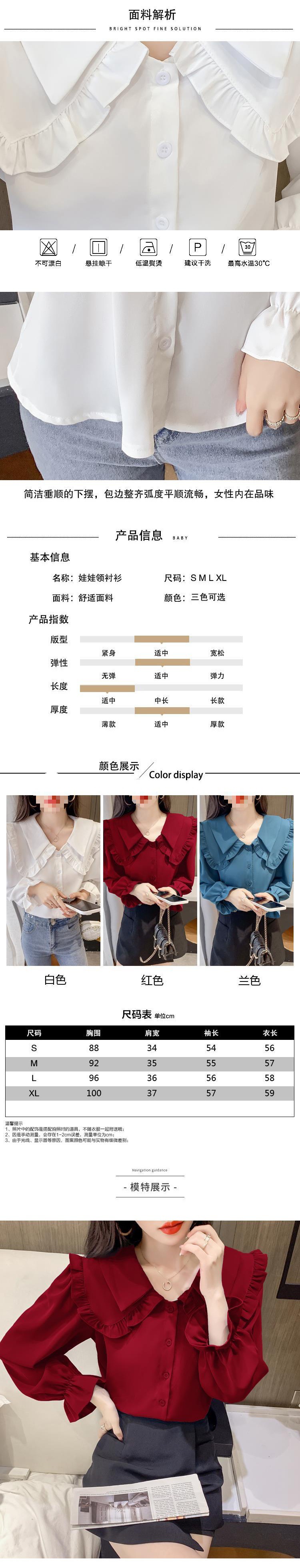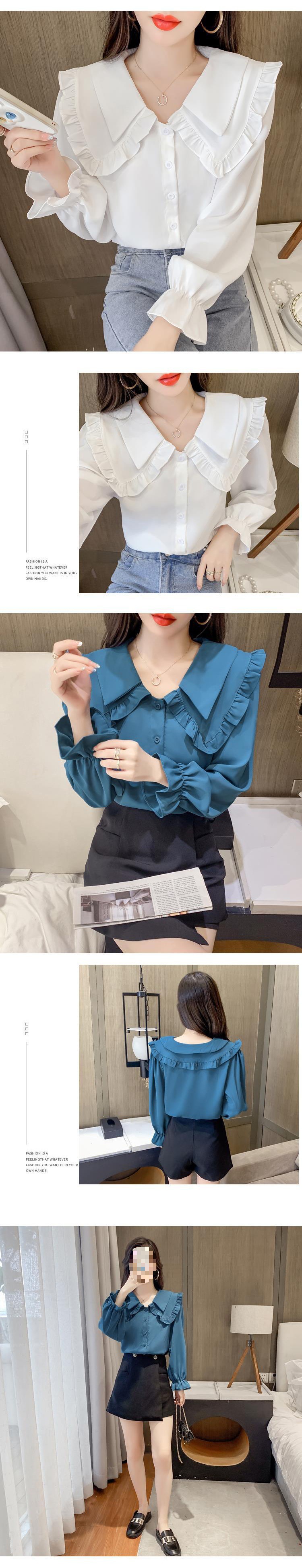 달콤한 인형 칼라 셔츠 여성의 디자인 감각 틈새 봄과 가을 새 셔츠 아름다운 패션 쉬폰 셔츠 긴 소매 탑