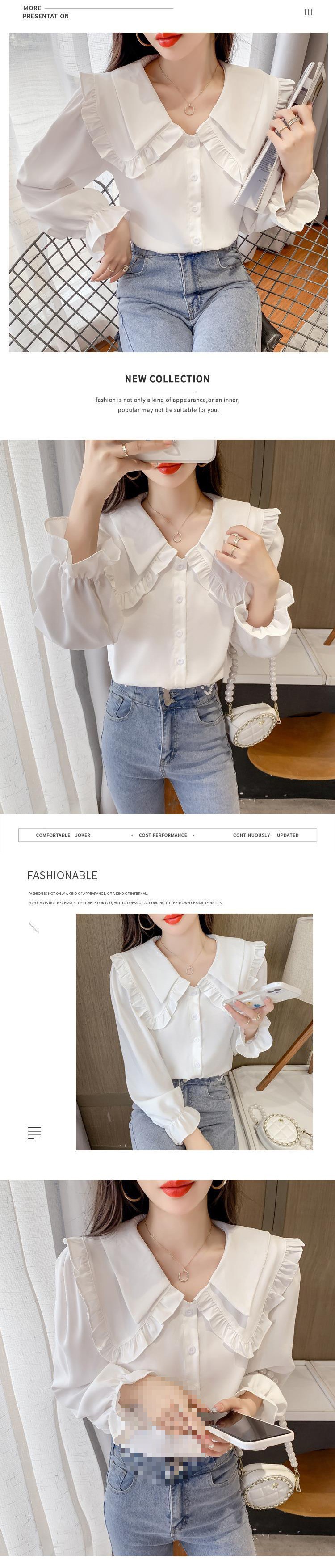 달콤한 인형 칼라 셔츠 여성의 디자인 감각 틈새 봄과 가을 새 셔츠 아름다운 패션 쉬폰 셔츠 긴 소매 탑스토어 가기