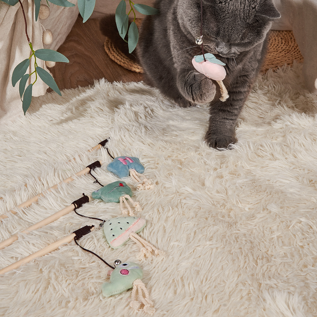 • 긴 푹신한 모피 공 고양이 애타 스틱
