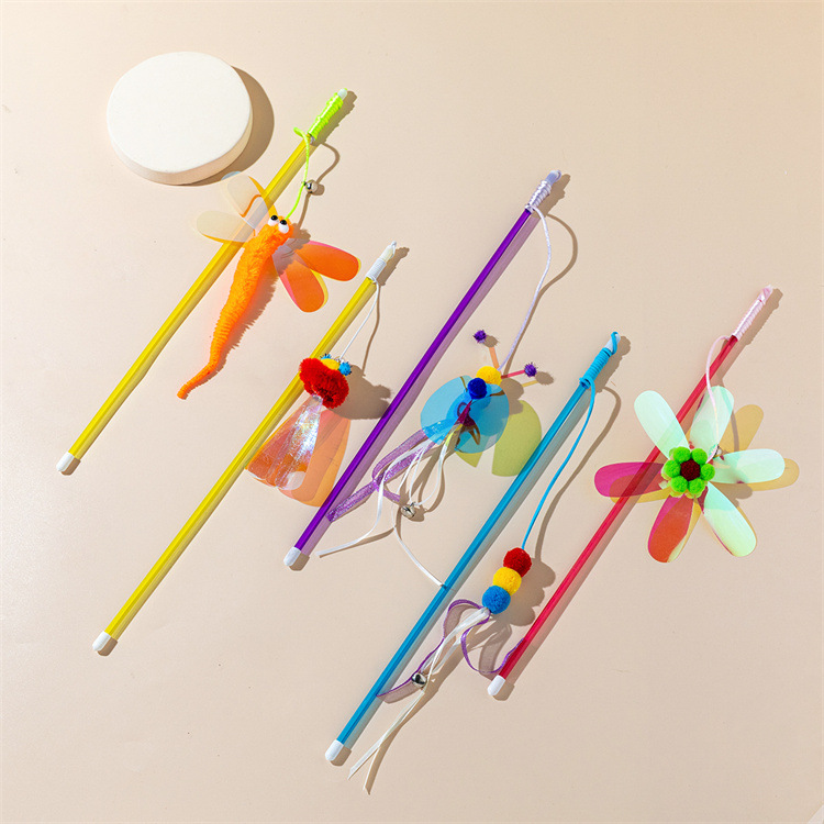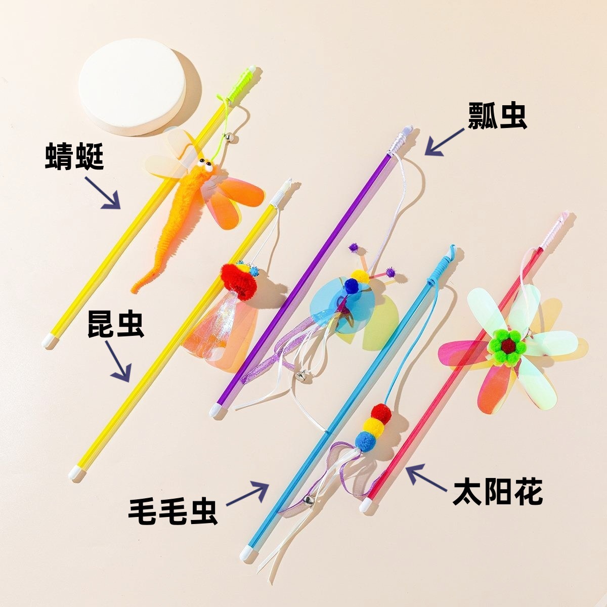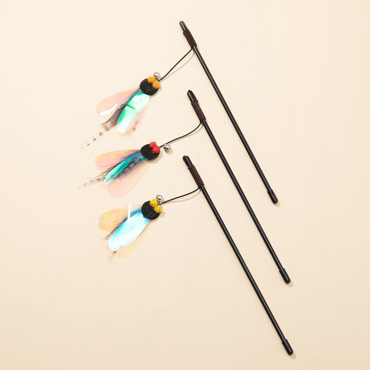 • 스팽글 깃털 곤충 재미 고양이 스틱
