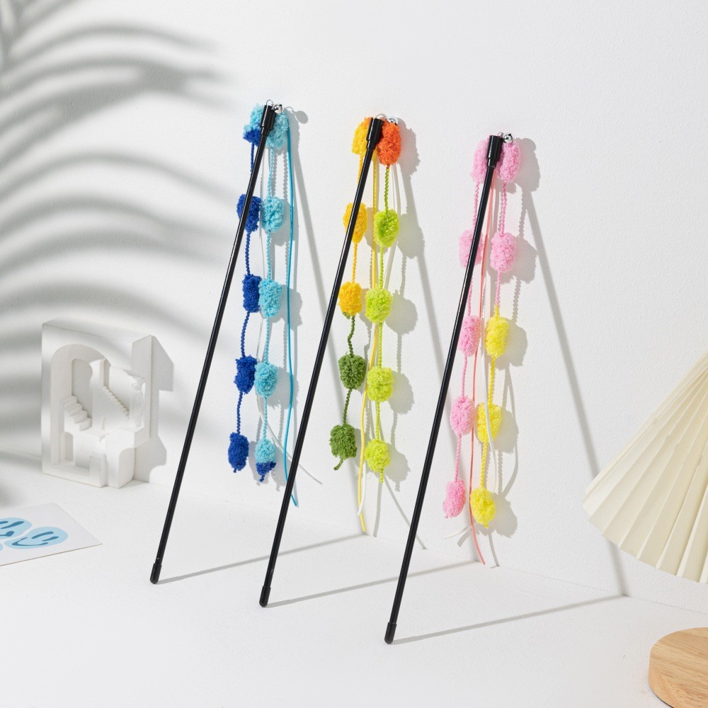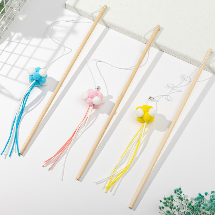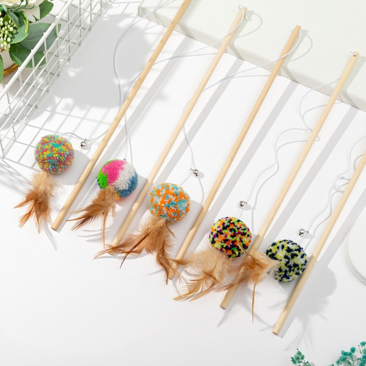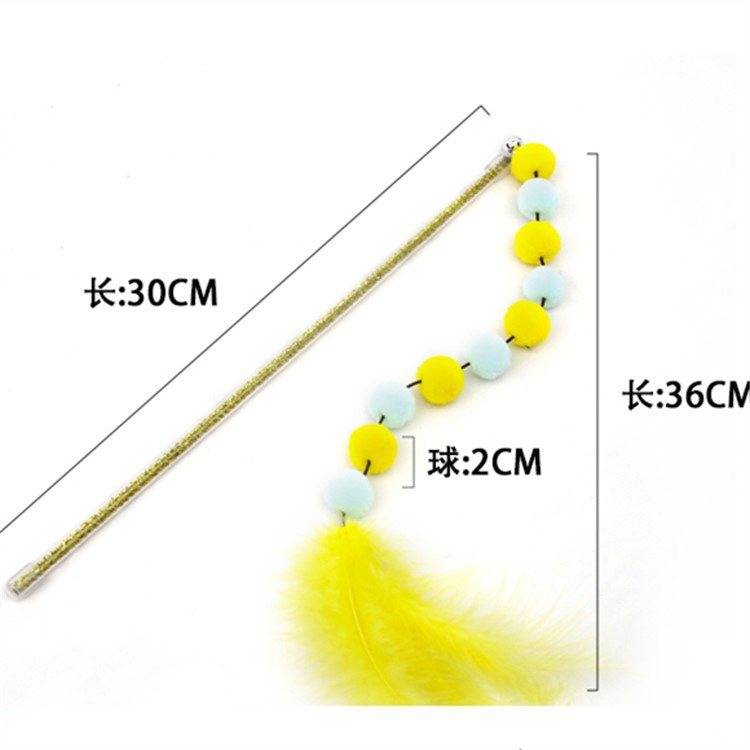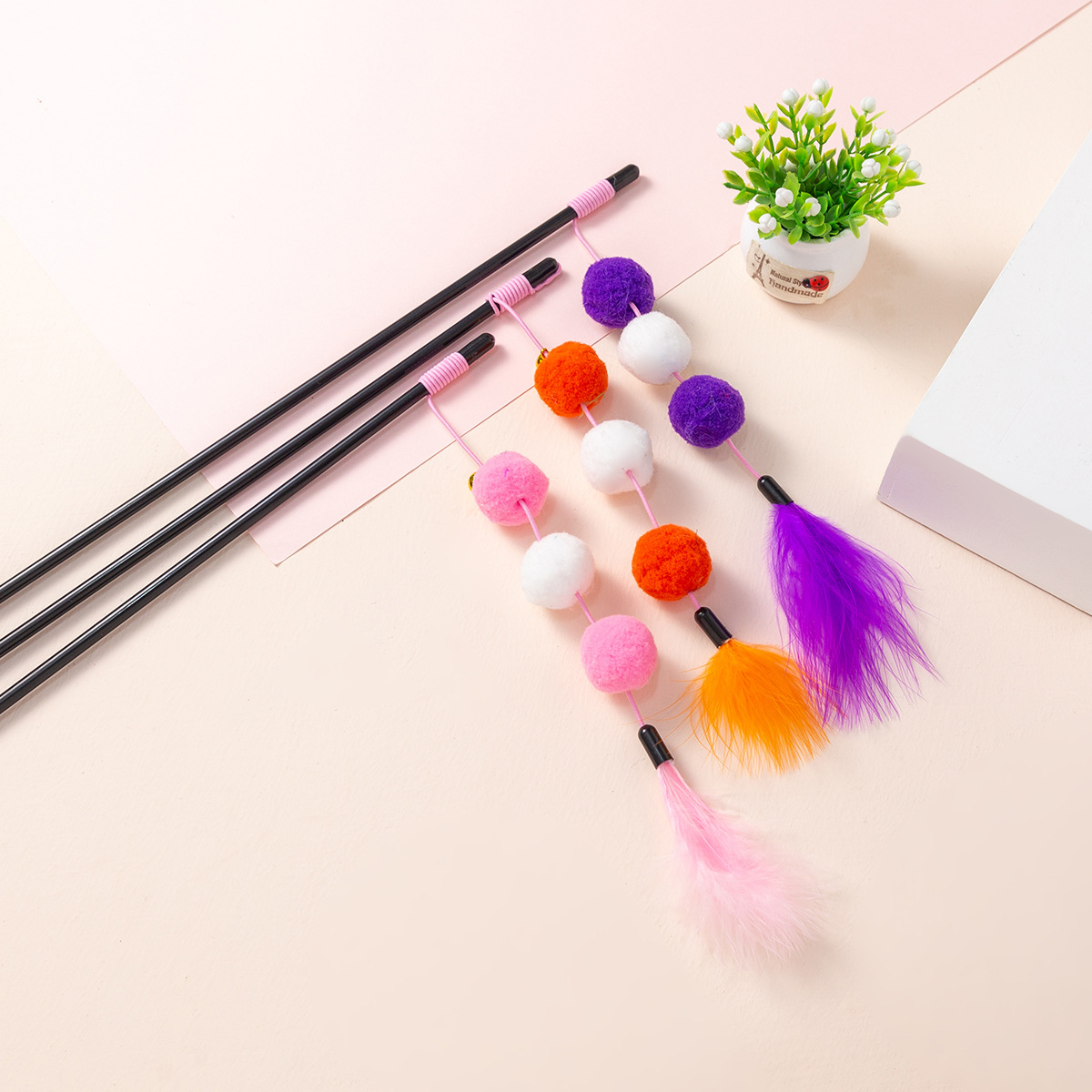 • 세 개의 털이 공 깃털 고양이 놀리는 막대