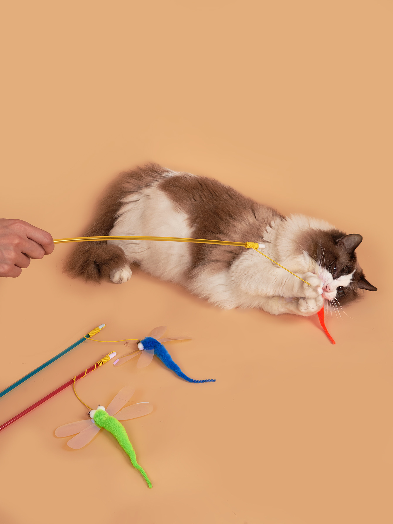 • 스팽글 잠자리 컬러 막대 고양이 재미 스틱