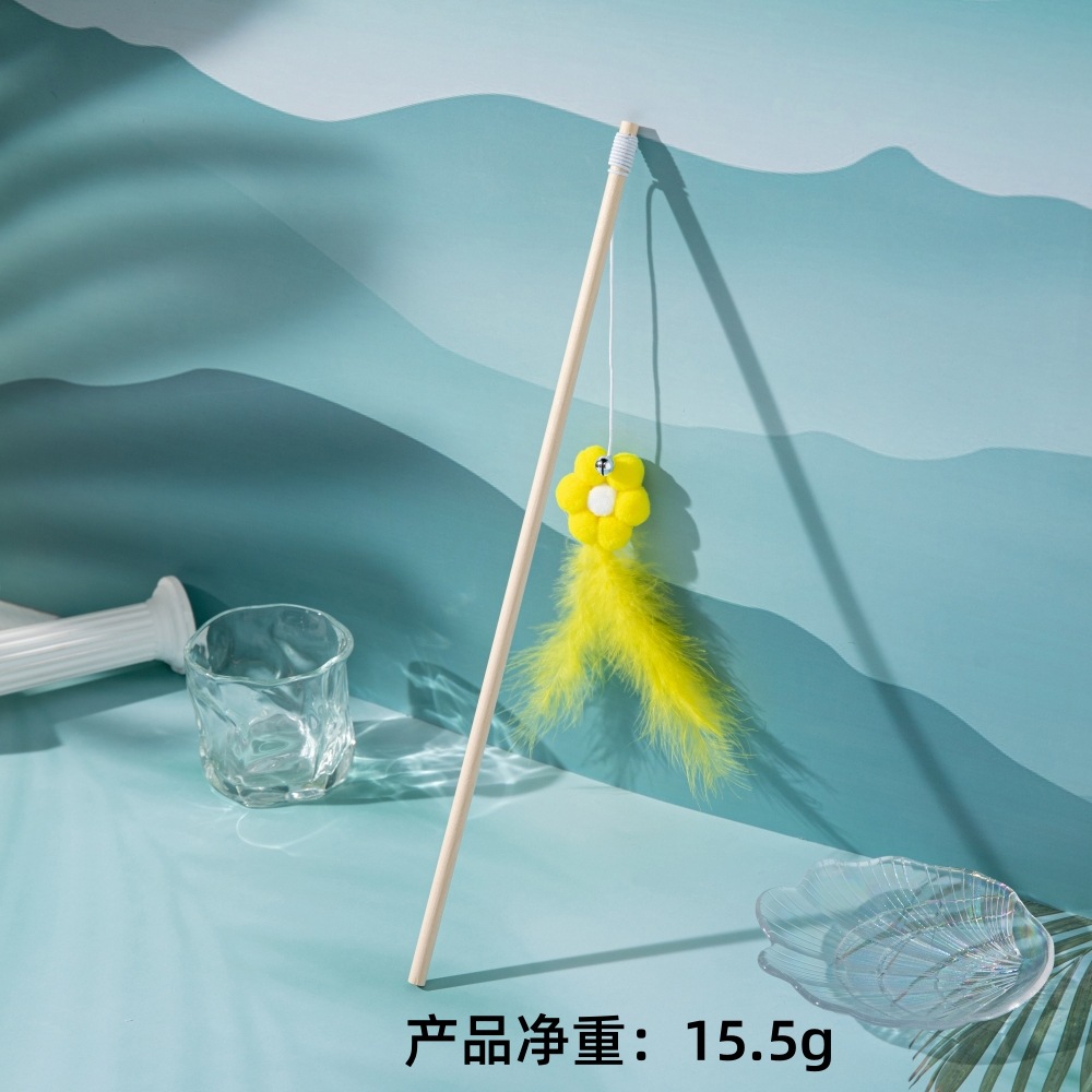 • 노란 꽃 깃털 고양이 놀리는 막대기