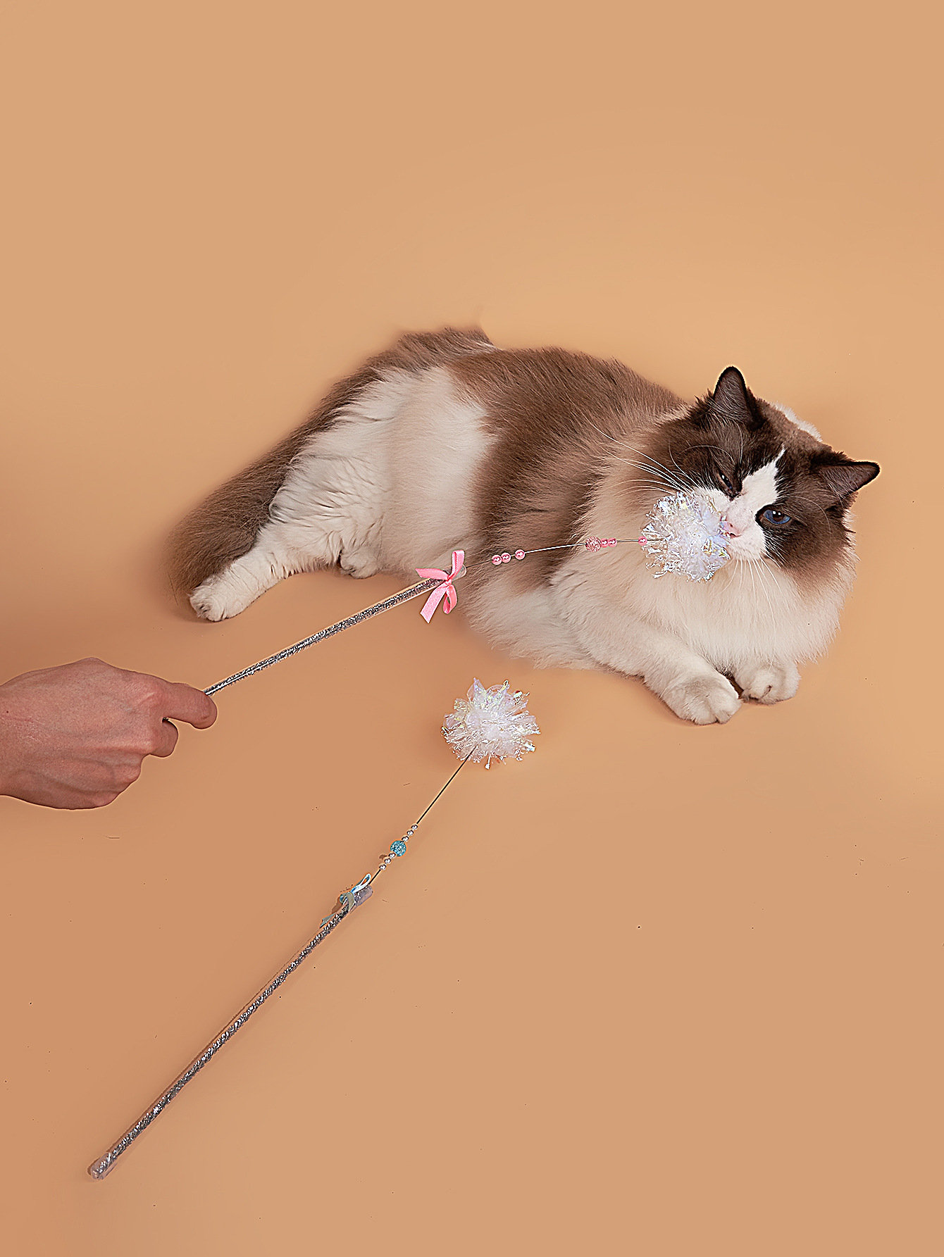 • 핑크 꽃 깃털 고양이 놀리는 막대기