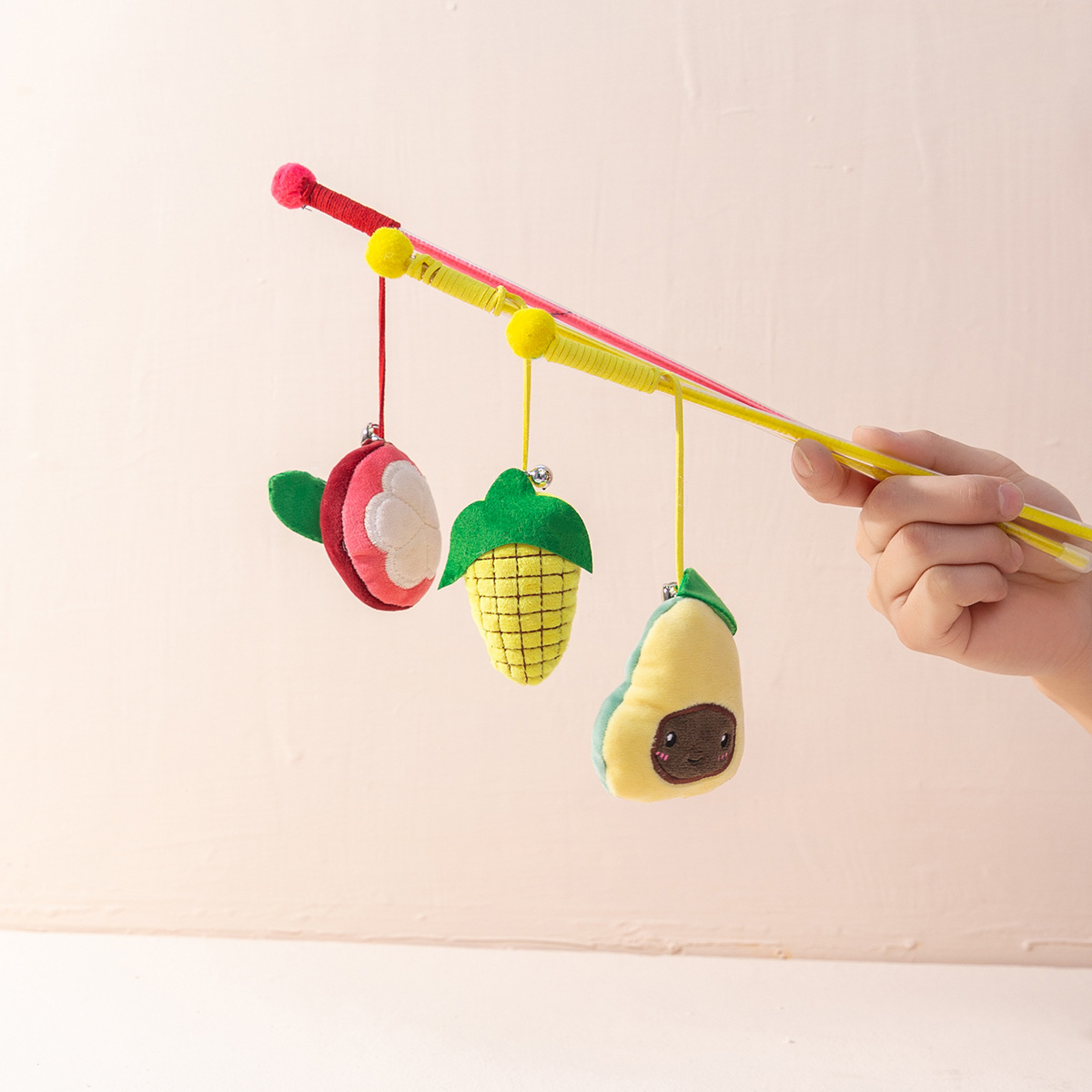 • 녹색 머리 물고기 고양이 놀리는 막대기