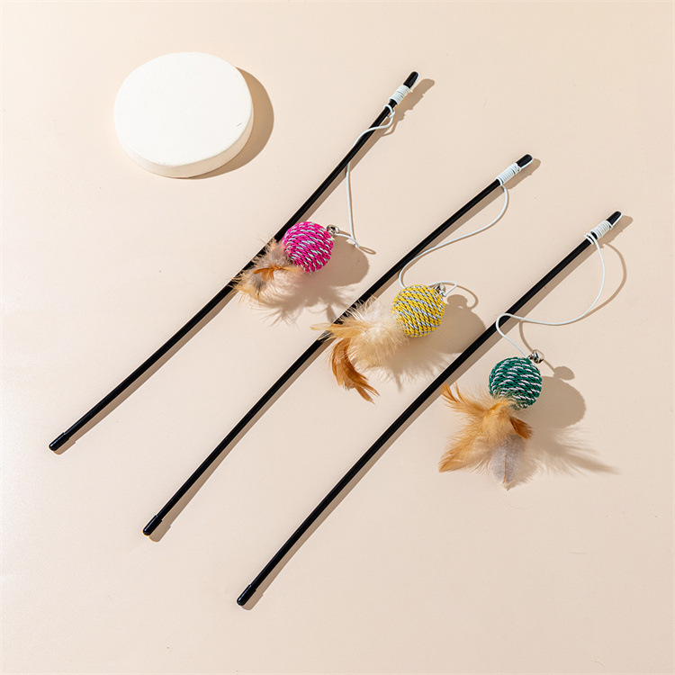 • 종이 로프 볼 깃털 고양이 티저 스틱