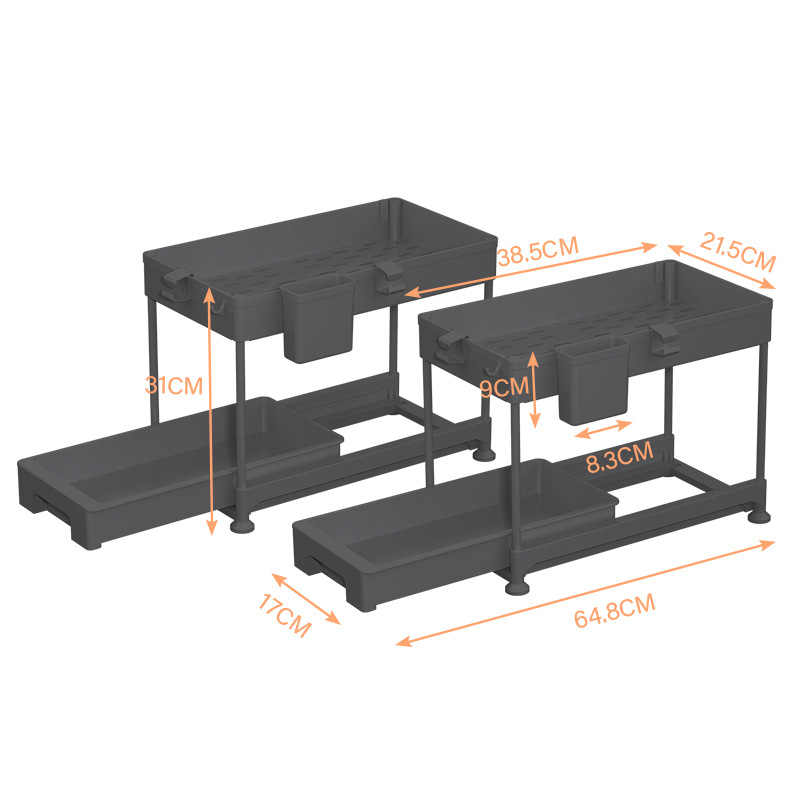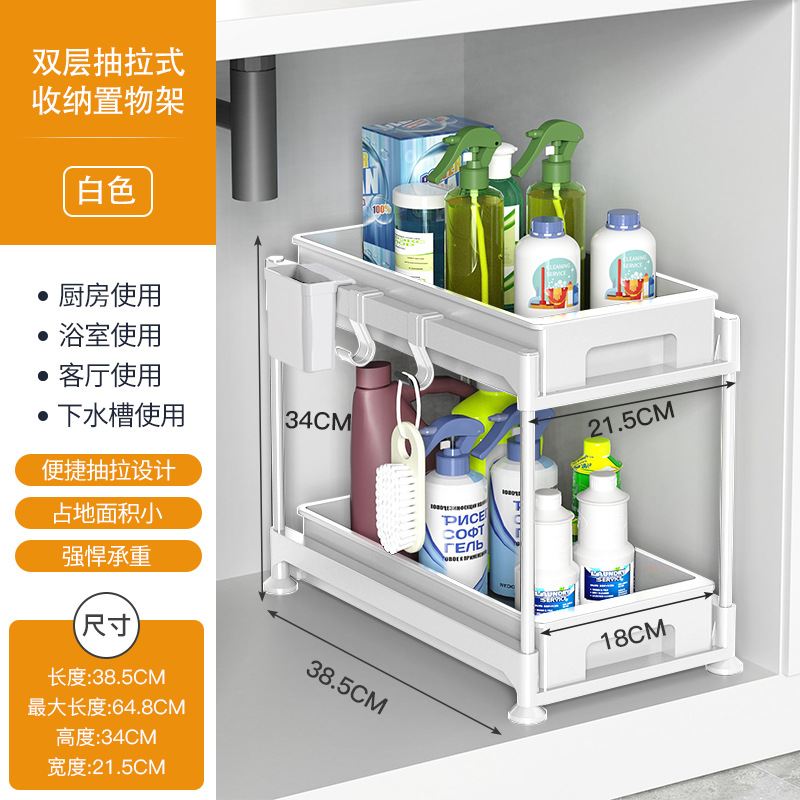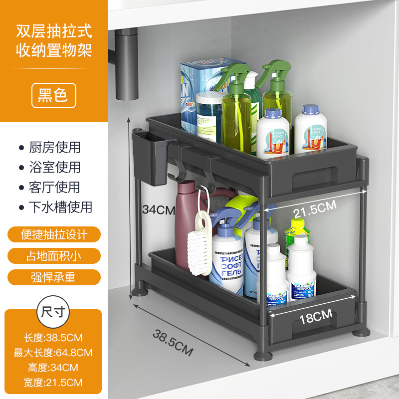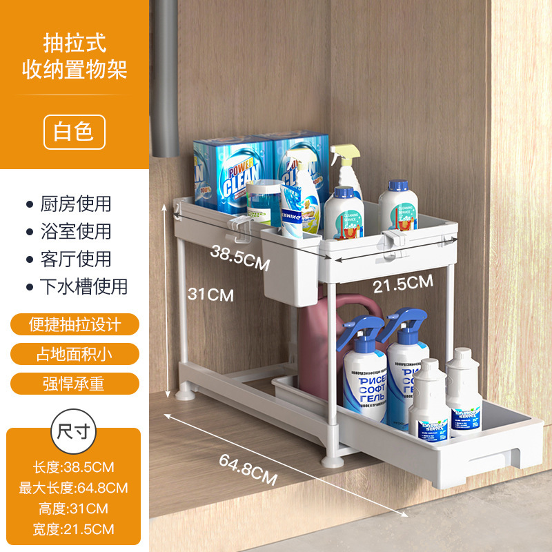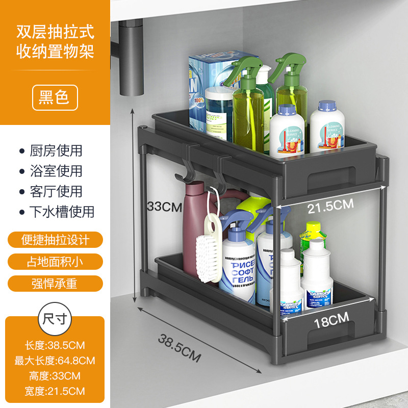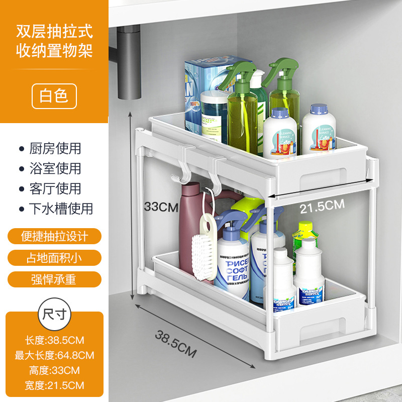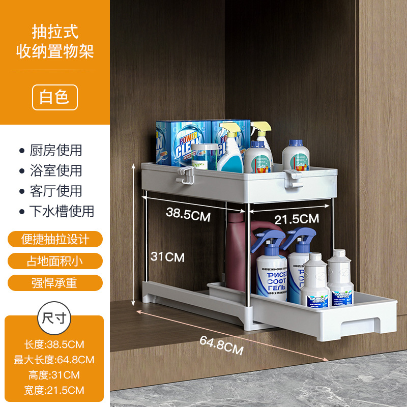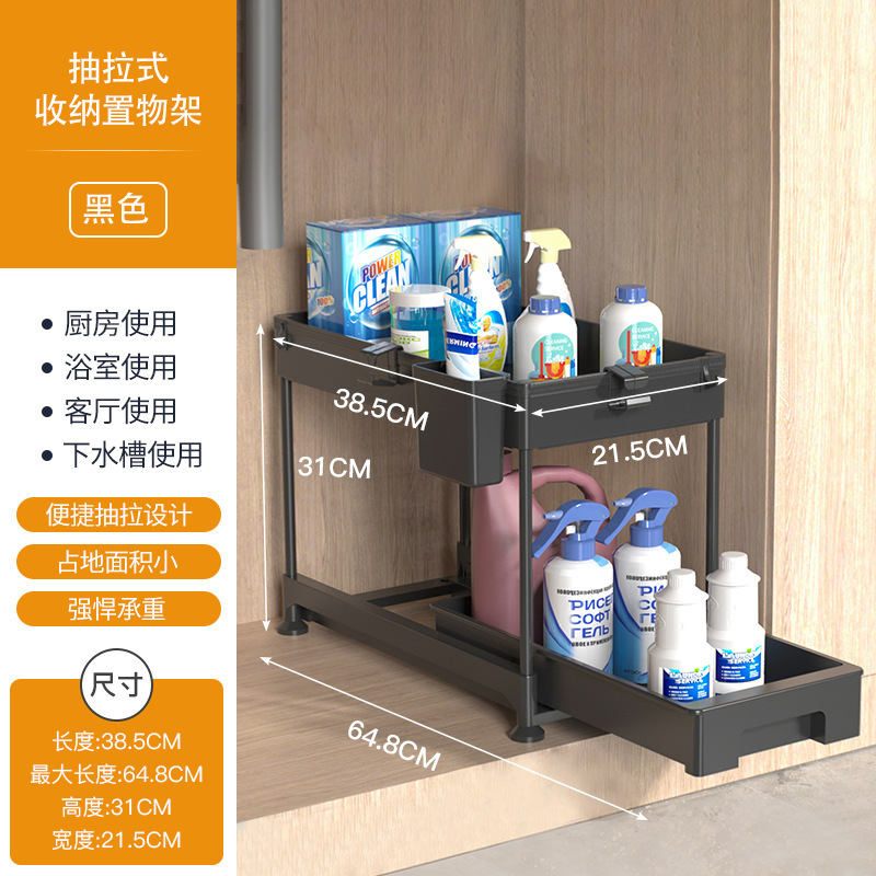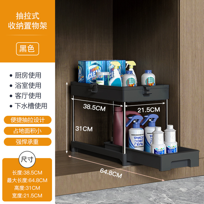 双层抽拉式置物架、 下水槽置物架、下水槽置物架可抽拉、调料架子置物架、抽拉置物架,