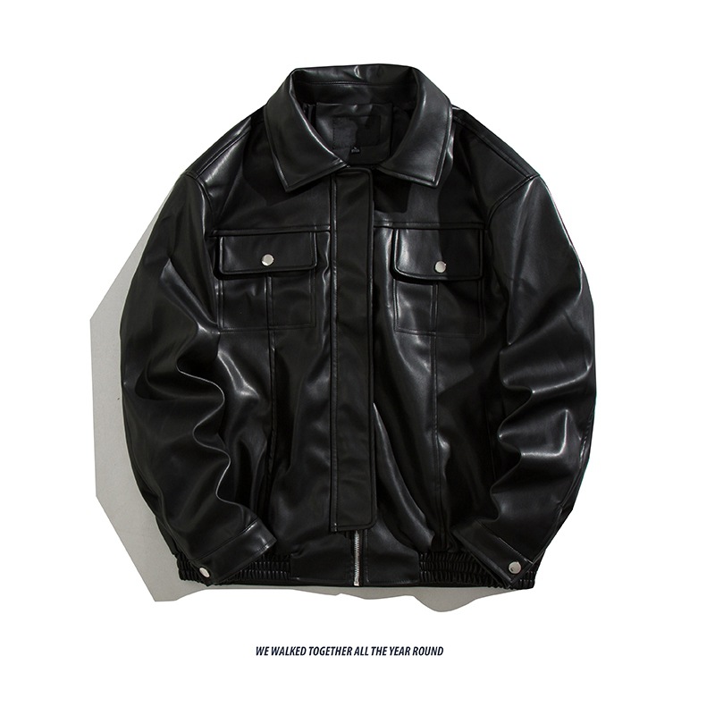 오토바이 가죽 남성용 한국식 느슨한 잘 생긴 더블 포켓 가죽 자켓 유행 캐주얼 모든 경기 라펠 에비에이터 재킷스토어 가기
