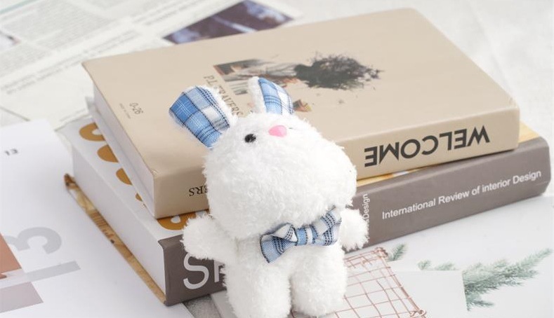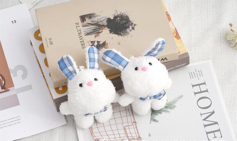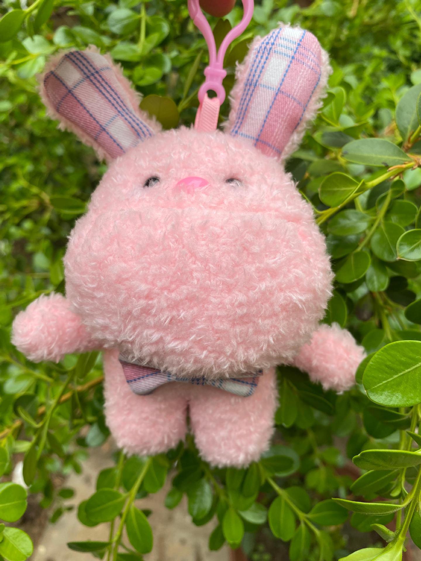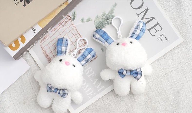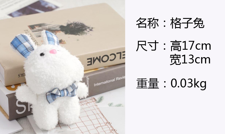 새로운 인형 격자 무늬 토끼 인형 활 꽃 봉제 장난감 열쇠 고리 가방 봉제 펜던트 도매
